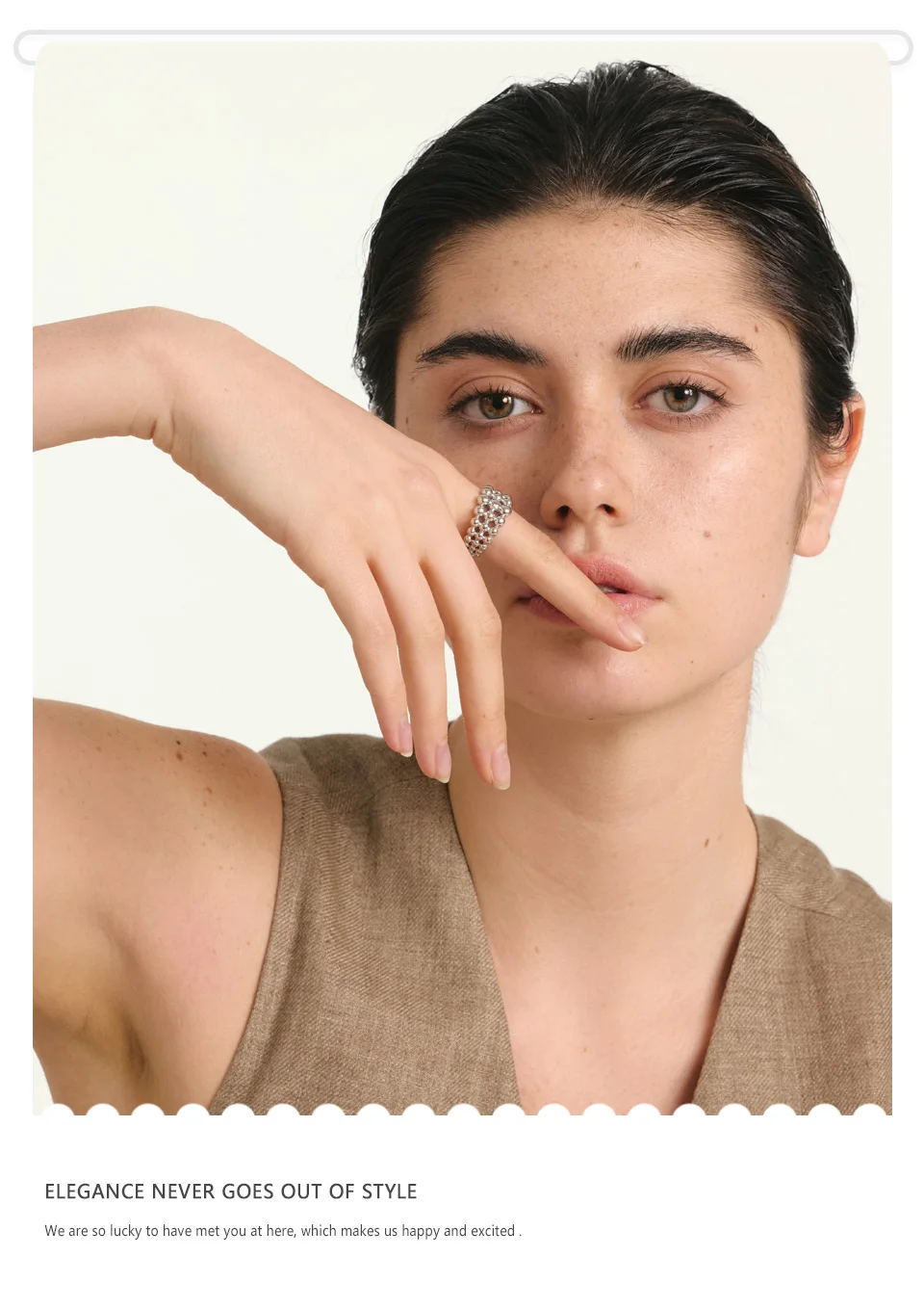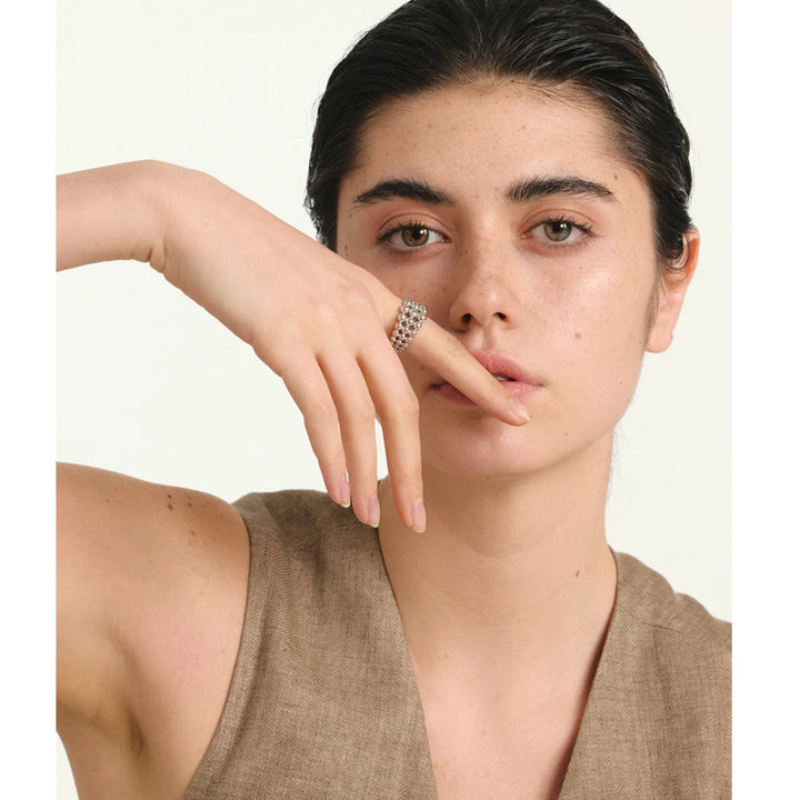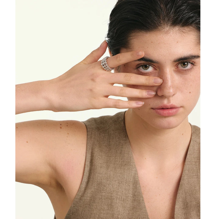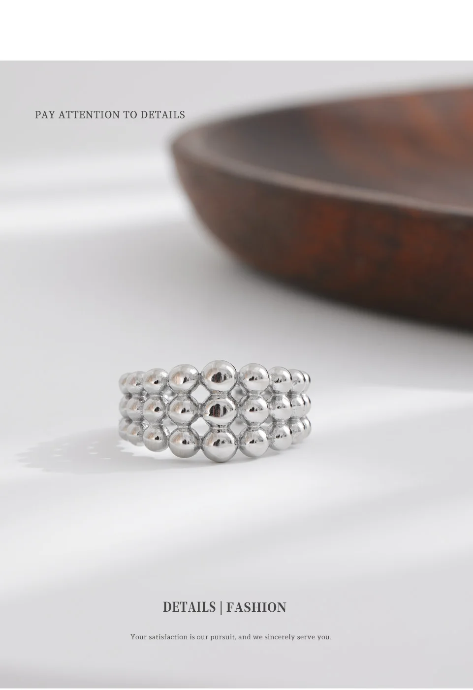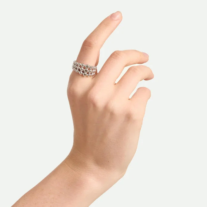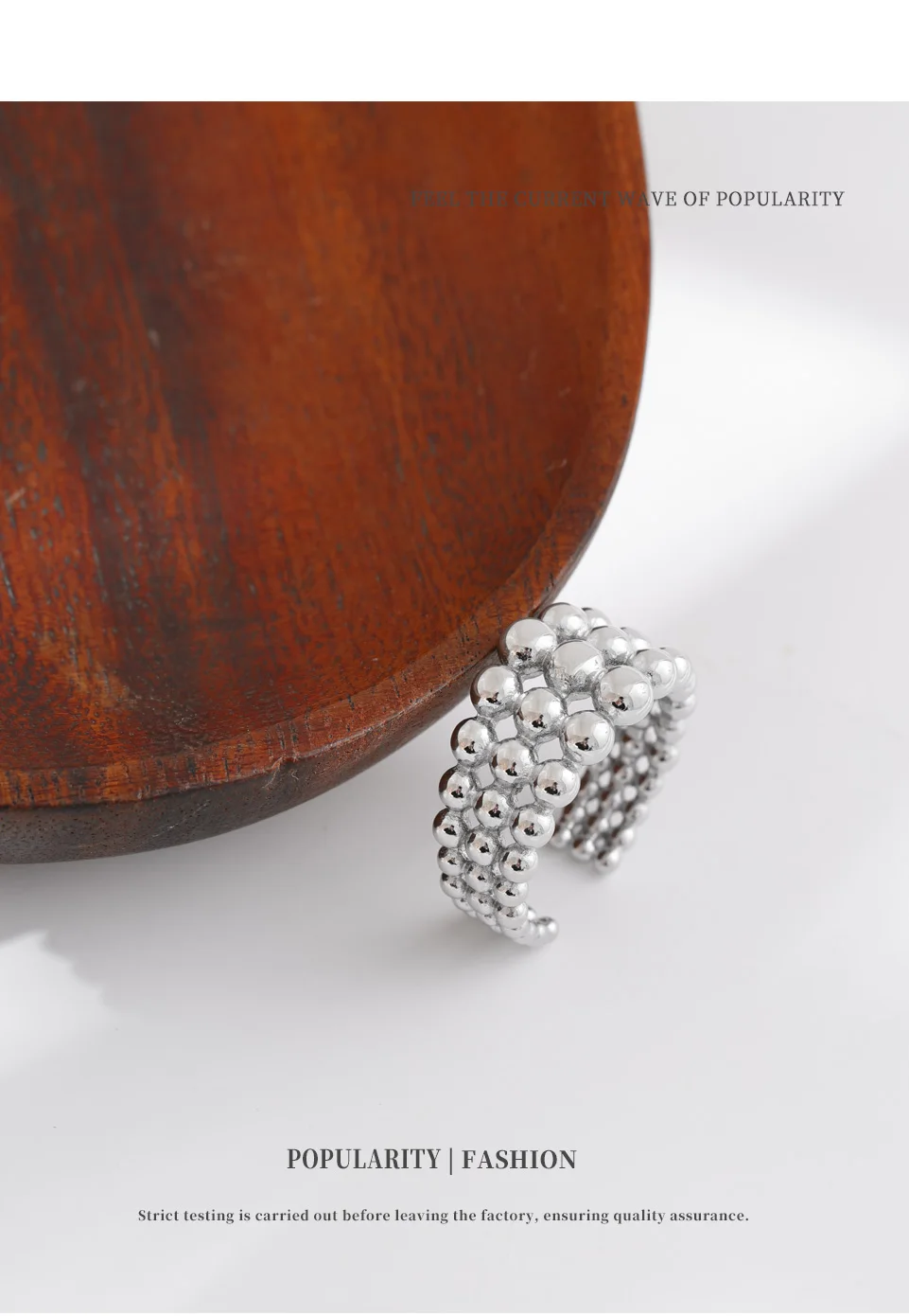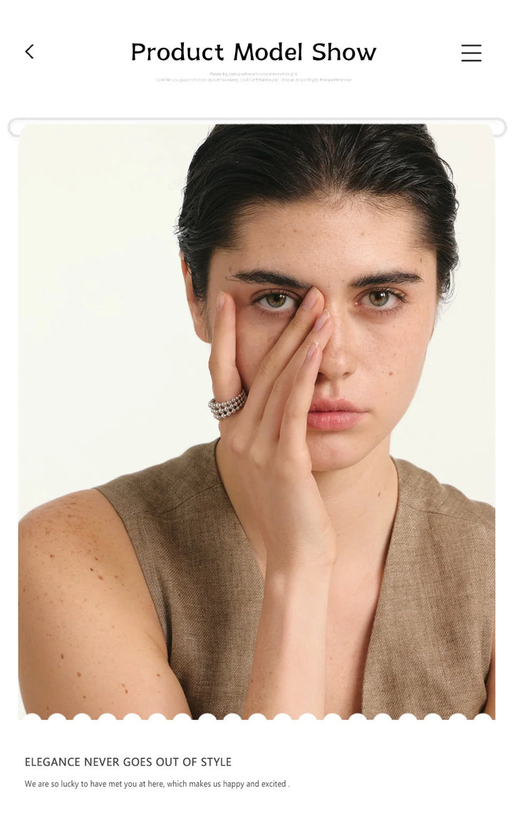 NiNice 316L Stainless Steel Layered Beads Open Ring Fashion Statement Finger Jewelry 18K PVD Plated Accessories Gift