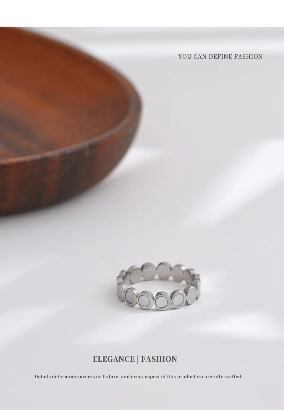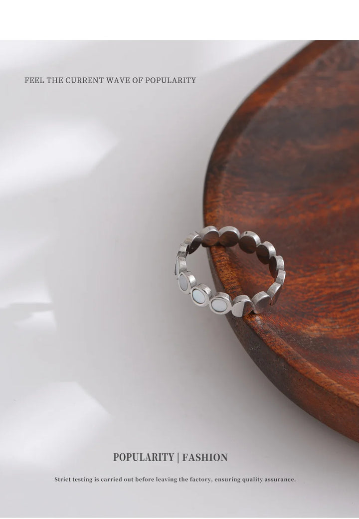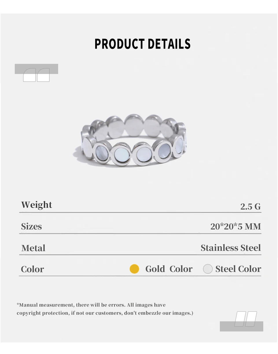 NiNice 316L Stainless Steel Natural Shell Round Thin Ring High Quality Fashion Charm Jewelry Accessories 2025