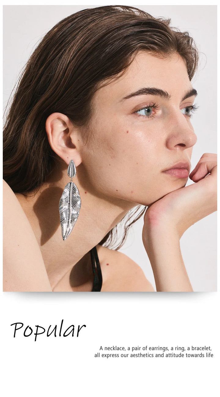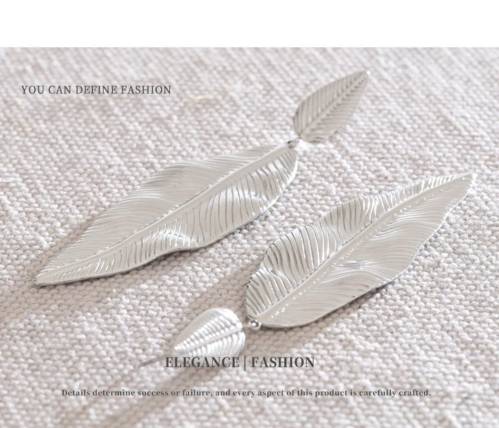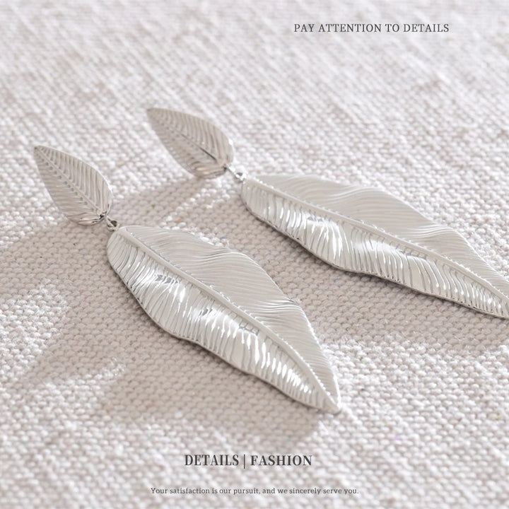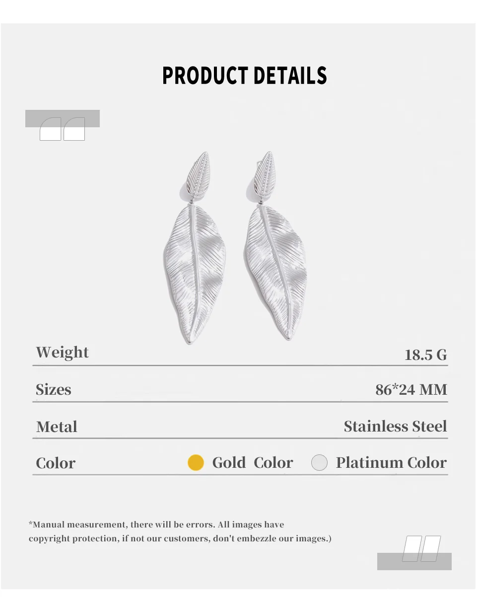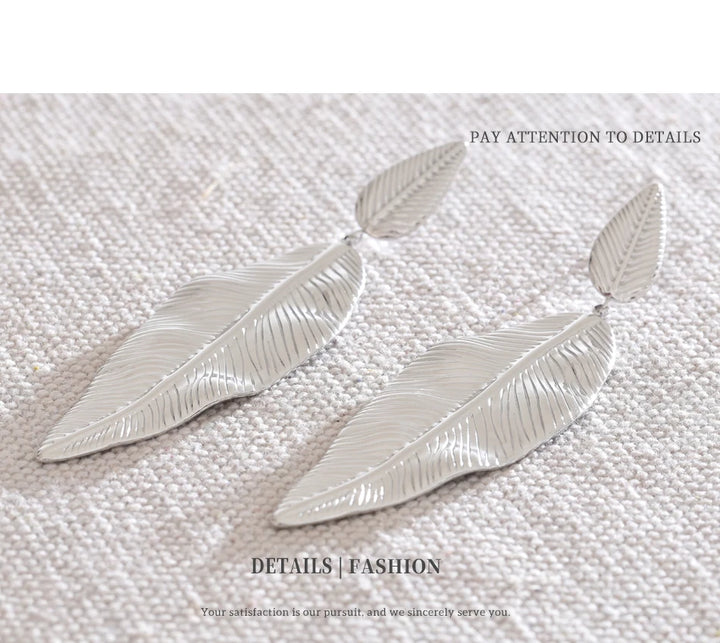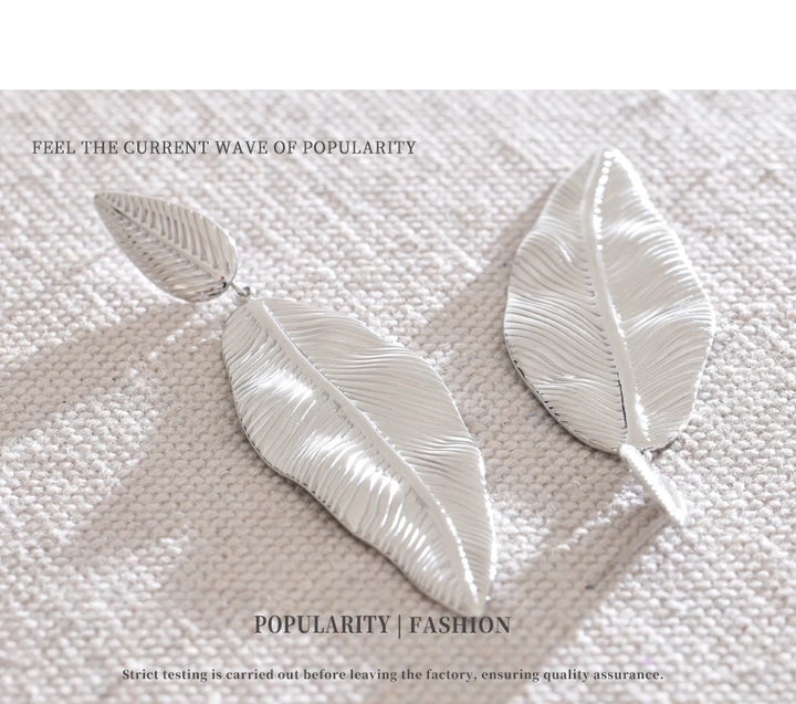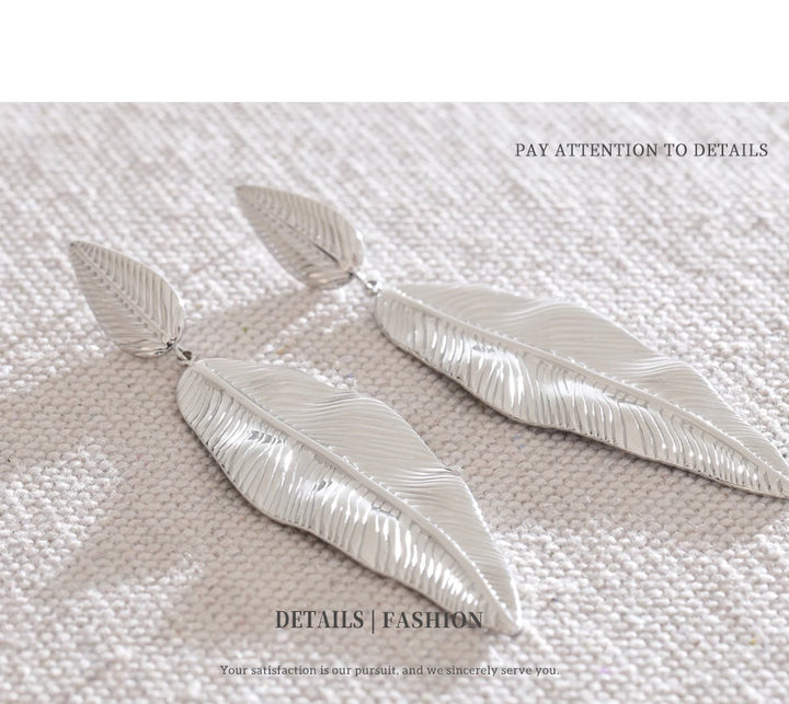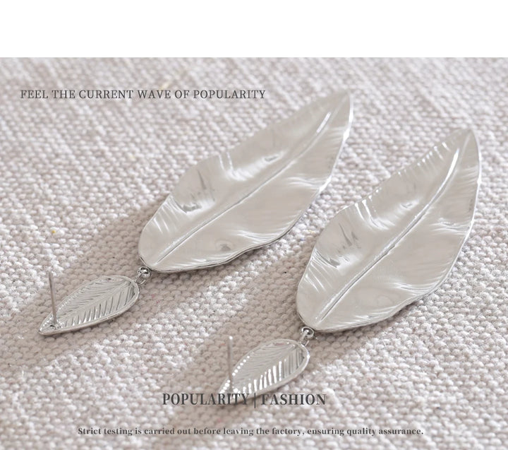 NiNice Earrings 316L Stainless Steel Large Leaf Pendant Metal Fashionable Design Personalized Gift New Wholesale 18g