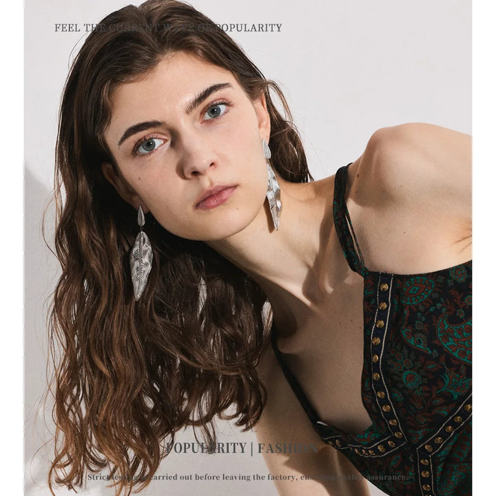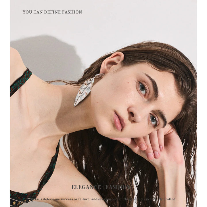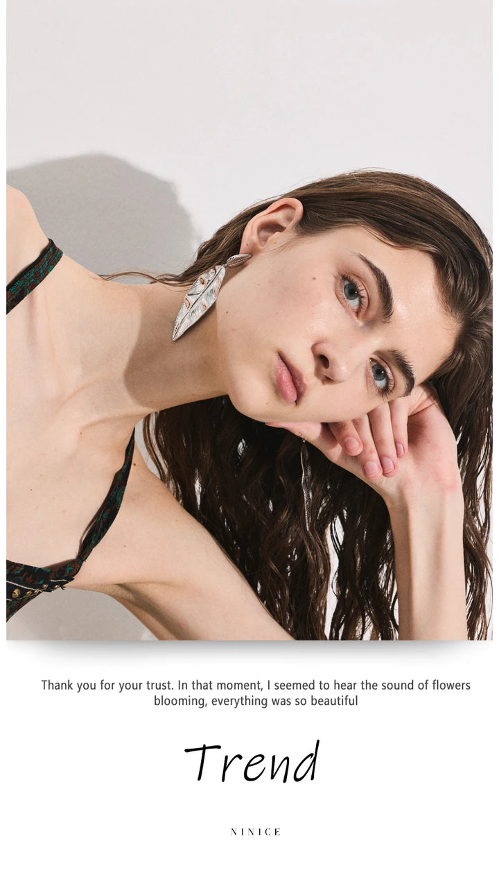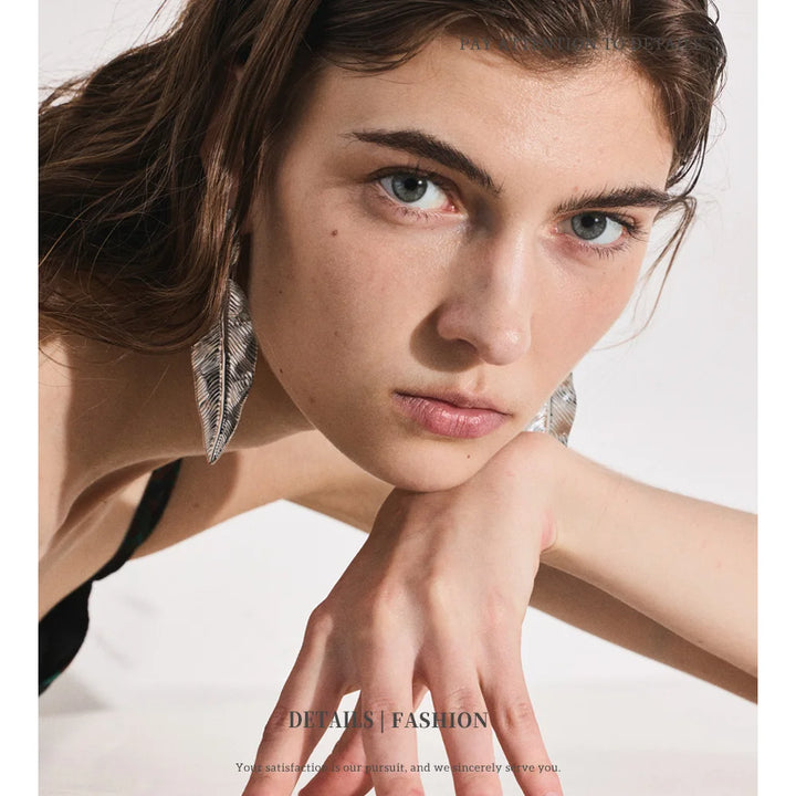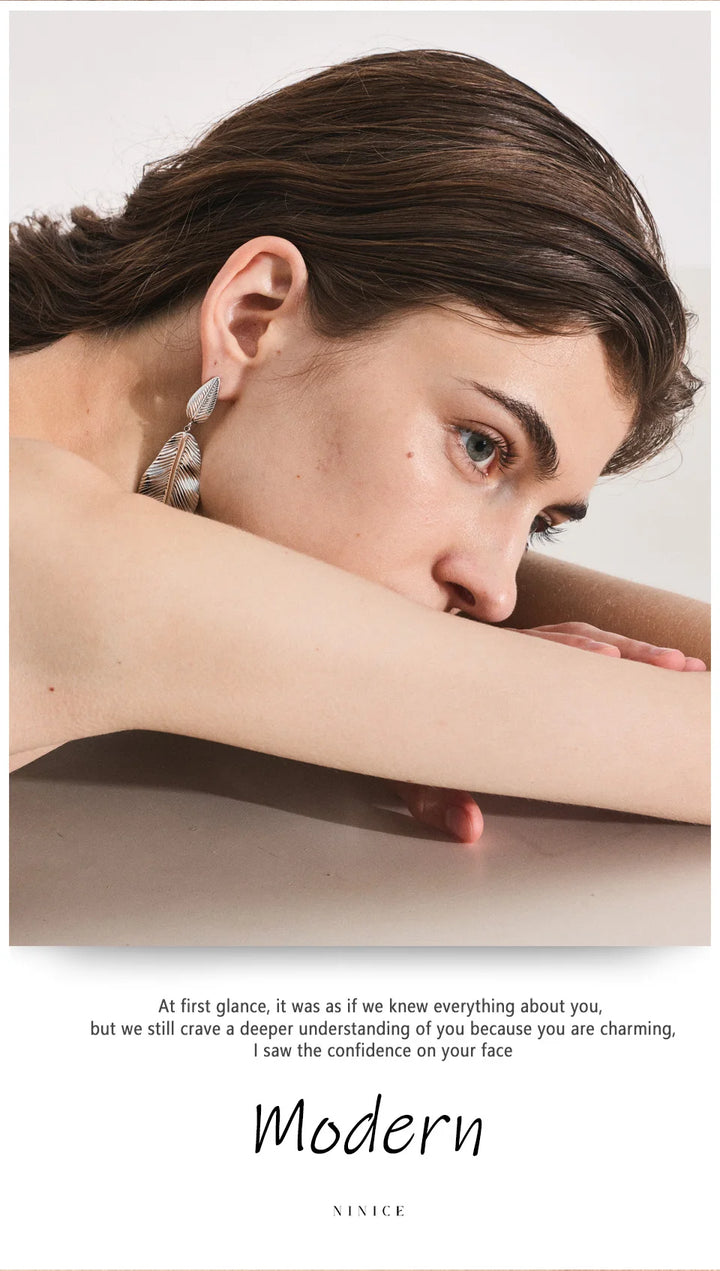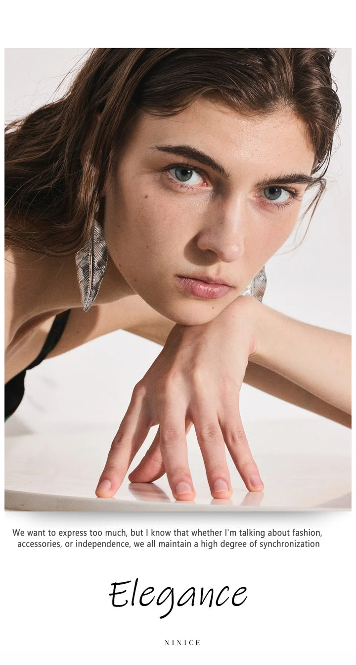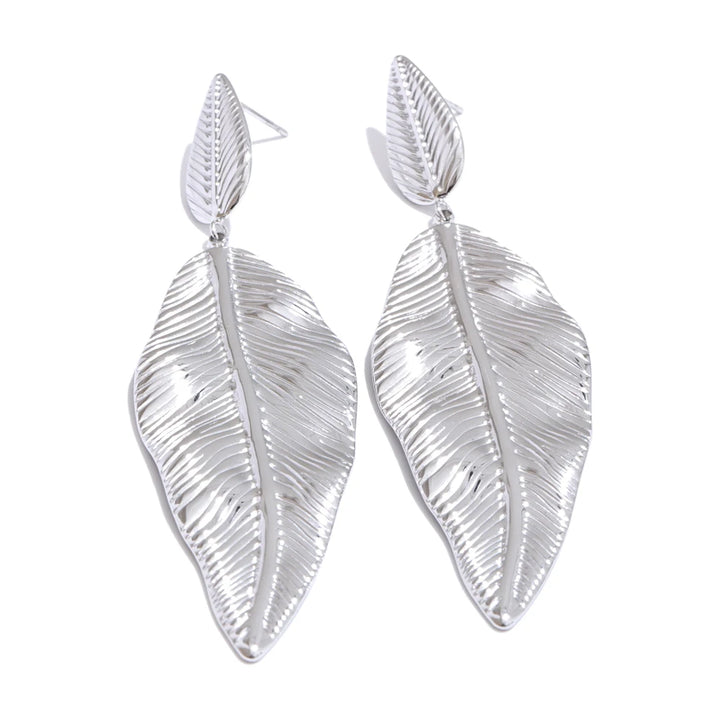 NiNice Earrings 316L Stainless Steel Large Leaf Pendant Metal Fashionable Design Personalized Gift New Wholesale 18g