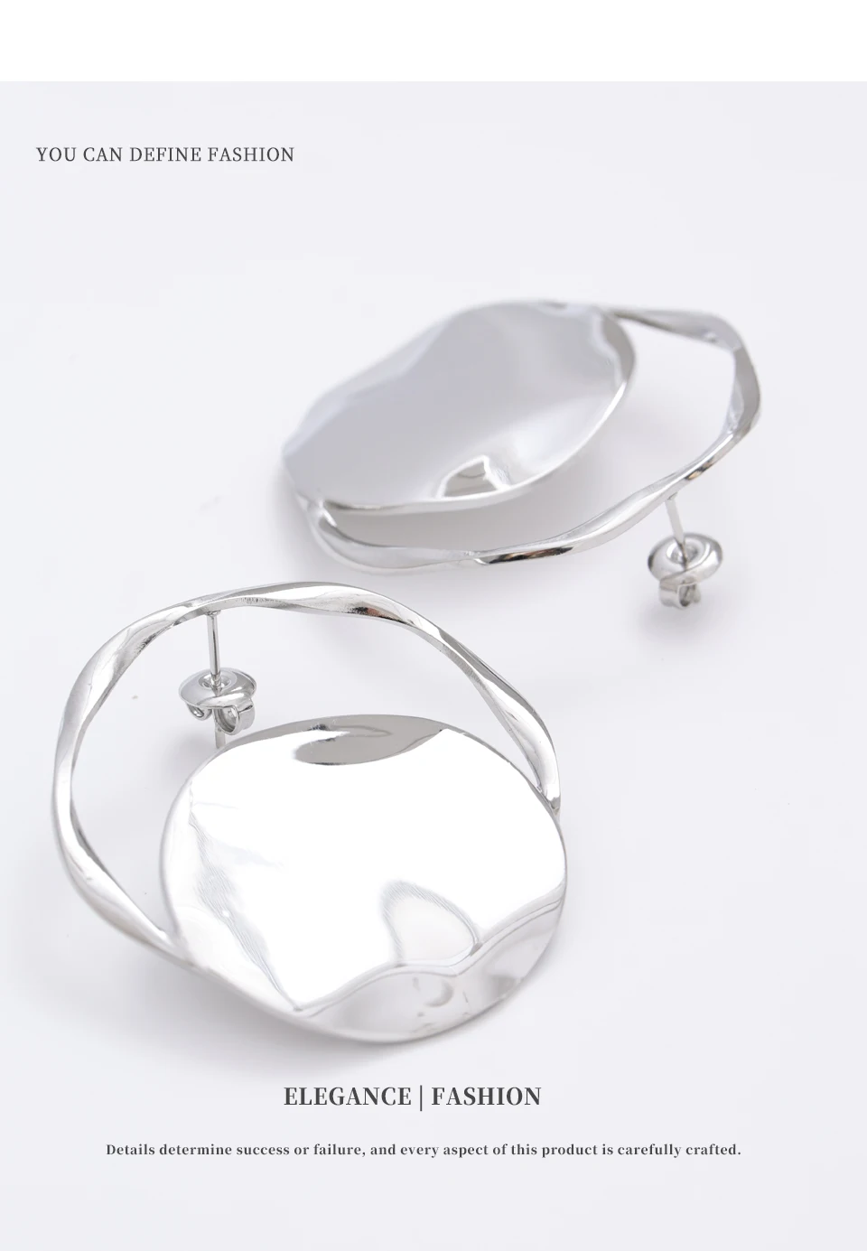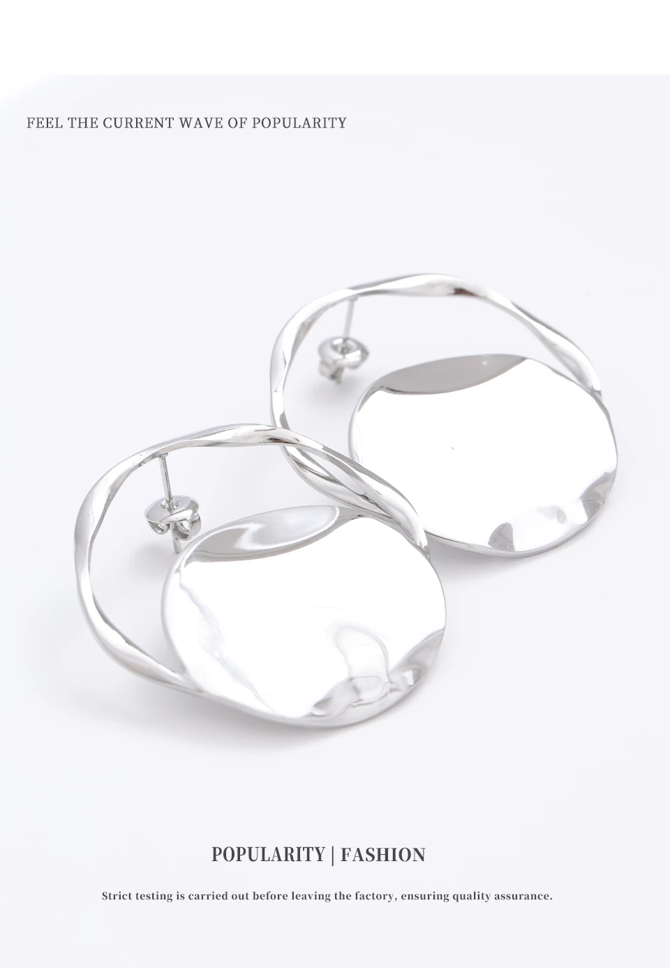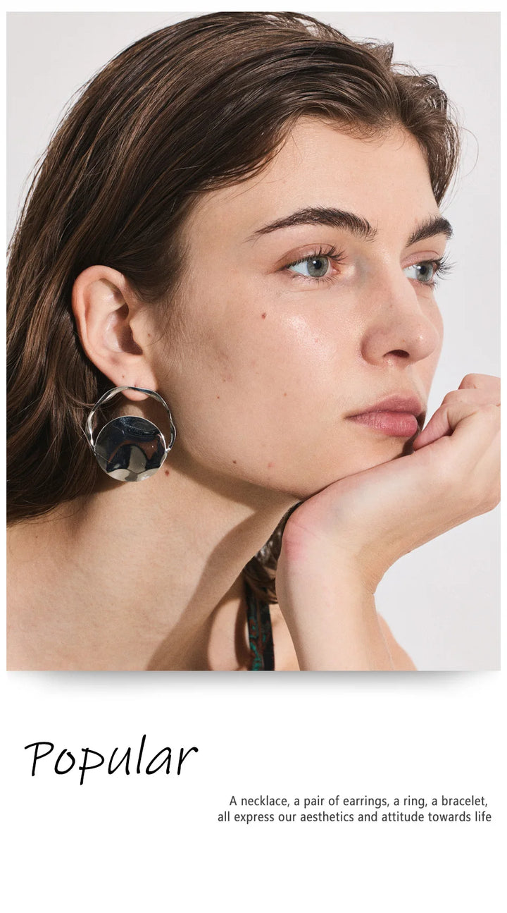 NiNice Earrings Stainless Steel Circular Pendant with Fashionable Design Trendy Exaggerated Suitable for Party Gifts New