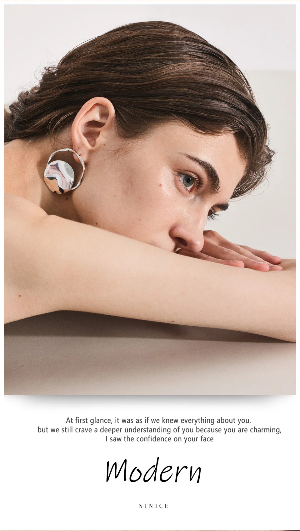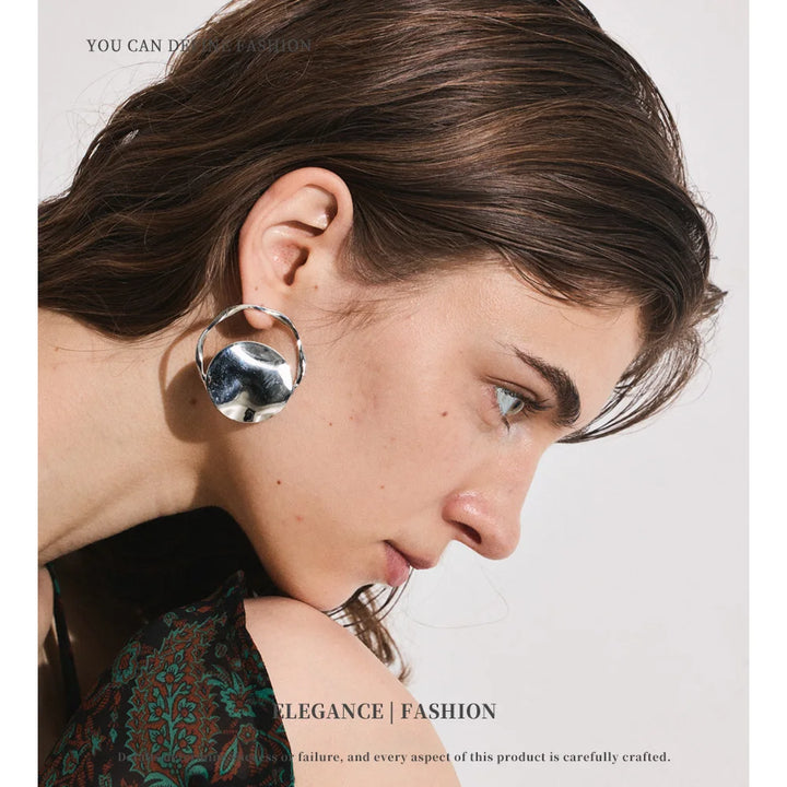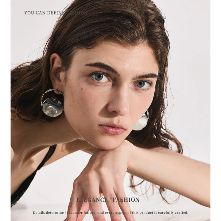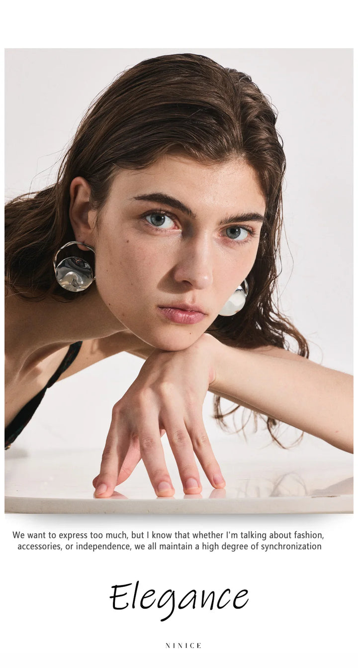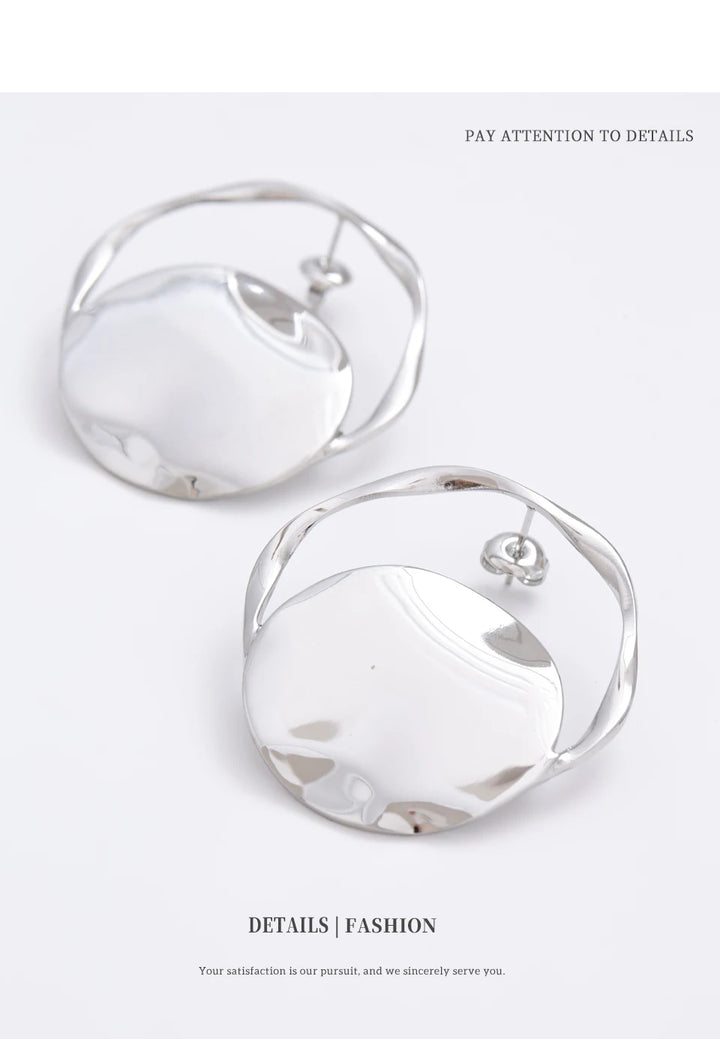 NiNice Earrings Stainless Steel Circular Pendant with Fashionable Design Trendy Exaggerated Suitable for Party Gifts New