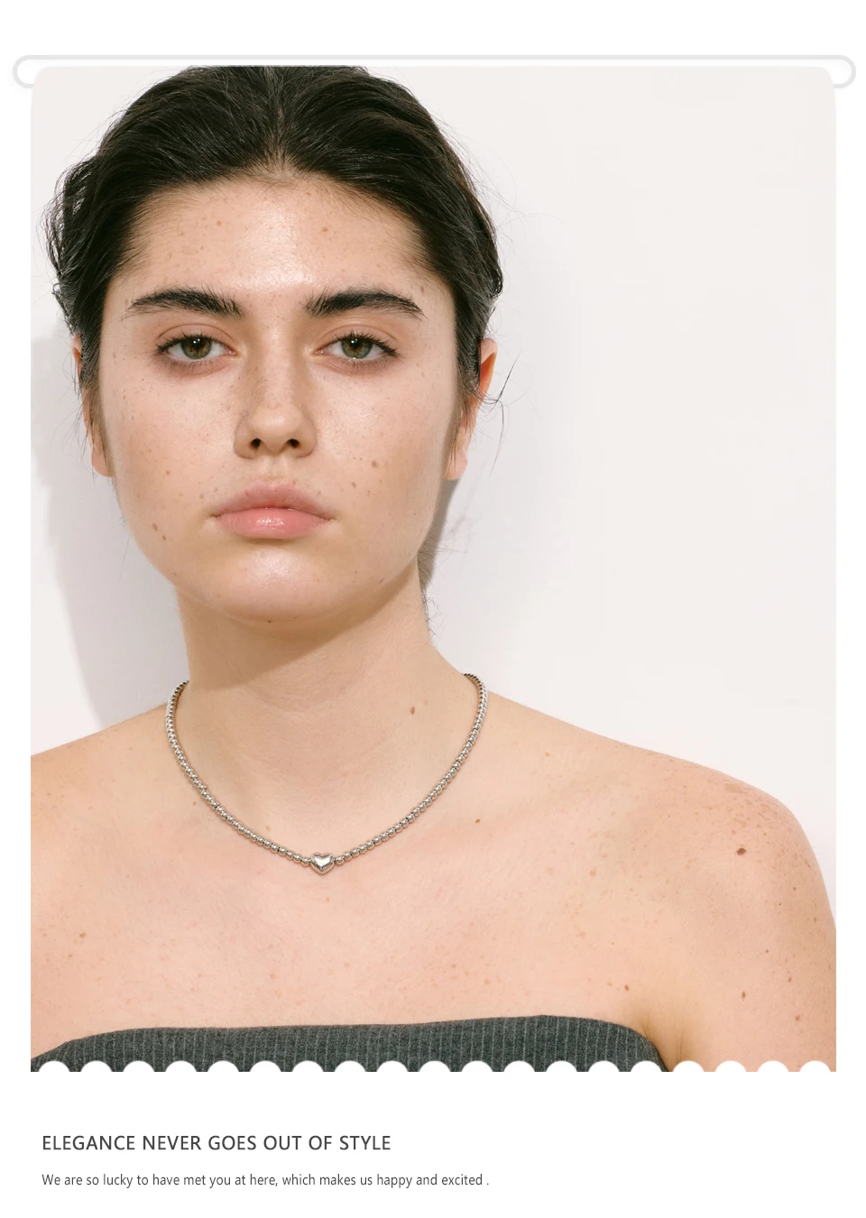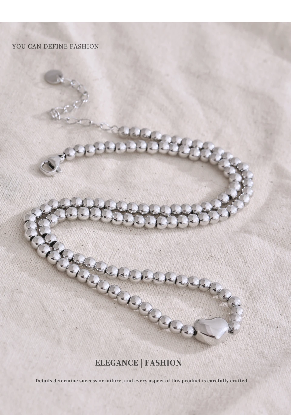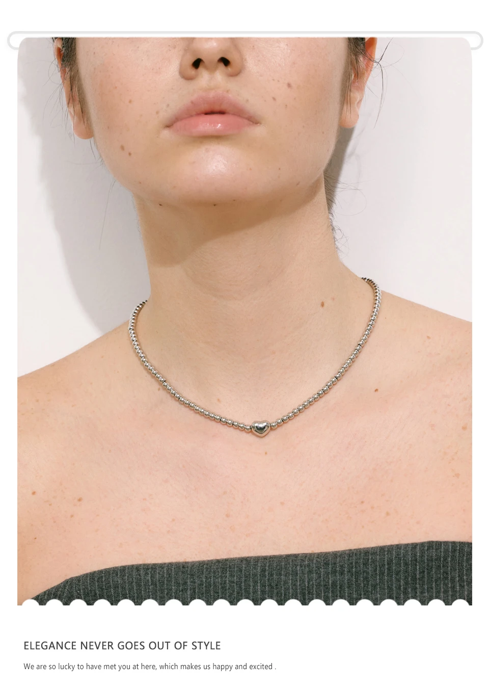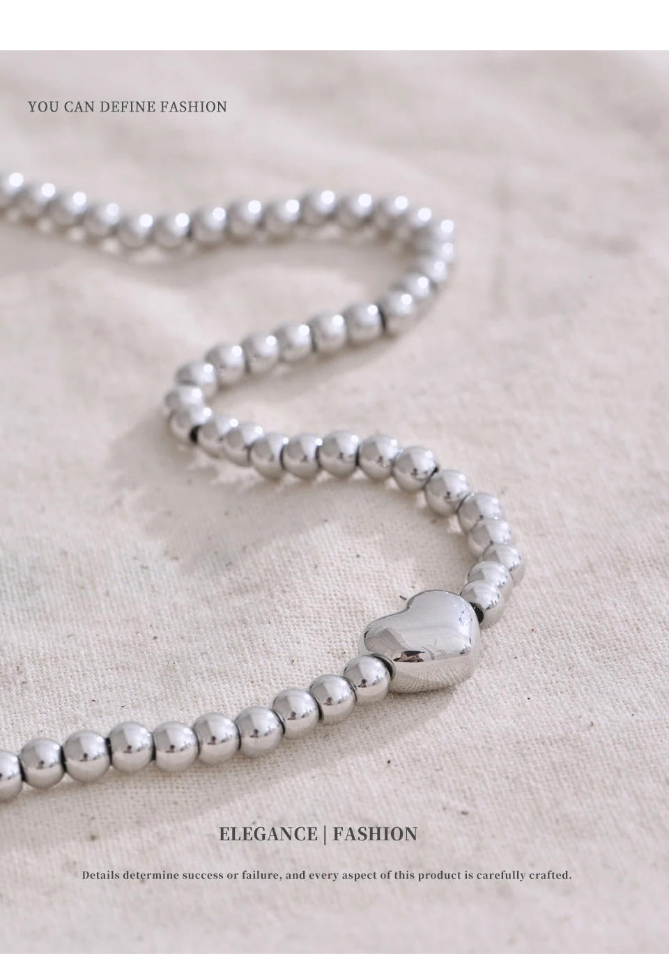 Hot Style Handmade Jewelry for Women Stainless Steel Round Beads Heart Chain Necklace High Quality Charm Jewelry New