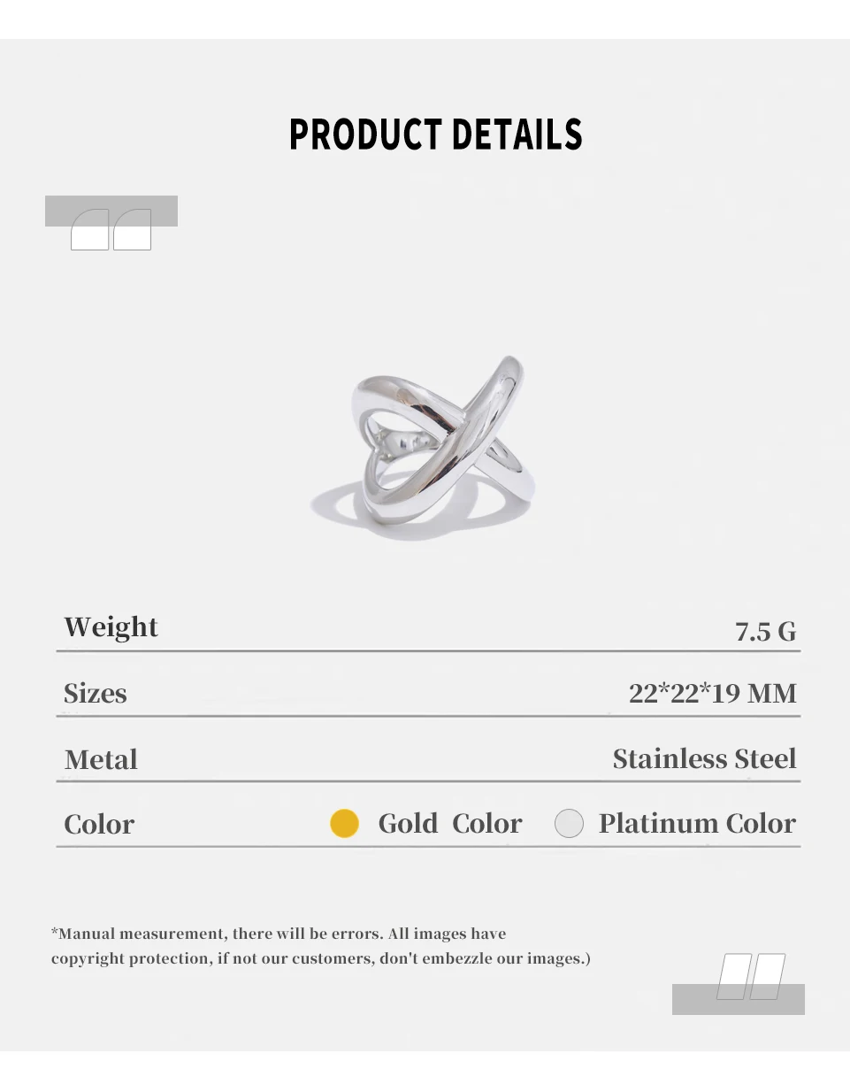 Hot Style Smooth Stainless Steel Metal X-Shape Ring Water Resistant Versatile Unusual Jewelry Accessories 2025