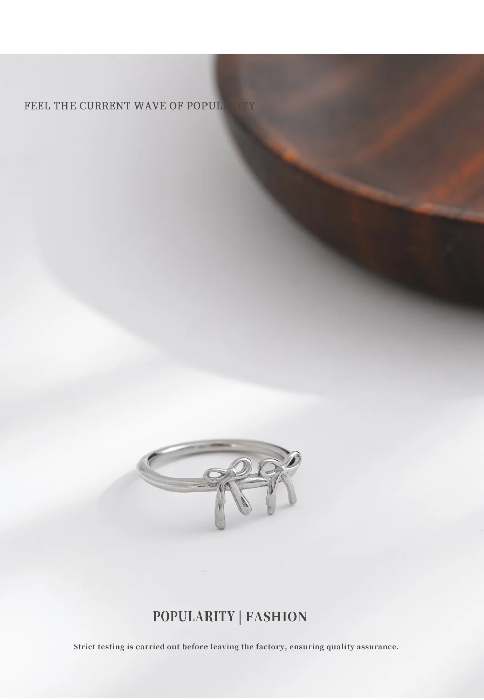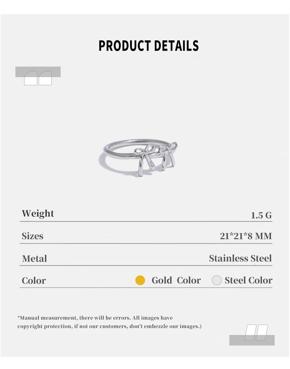 Hot Style Stainless Steel Metal Bow Bowknot Ring 18K PVD Plated Minimalistic Attractive Daily Versatile Jewelry for Wome