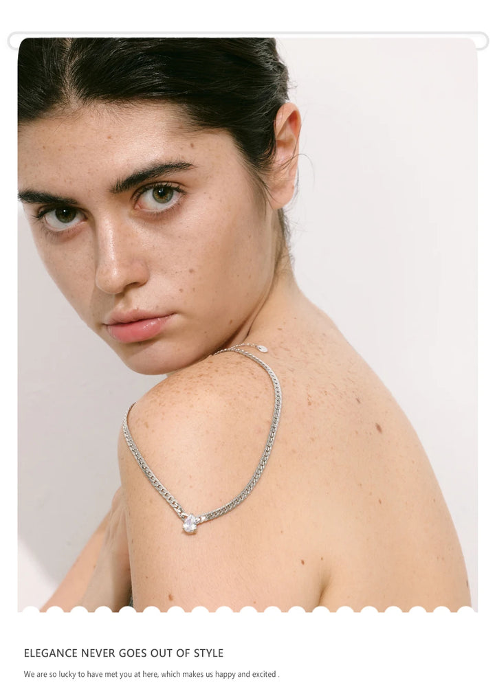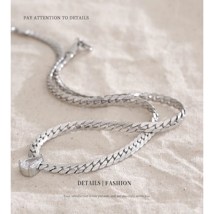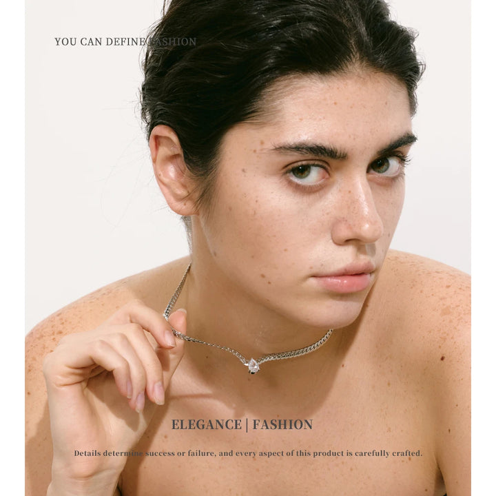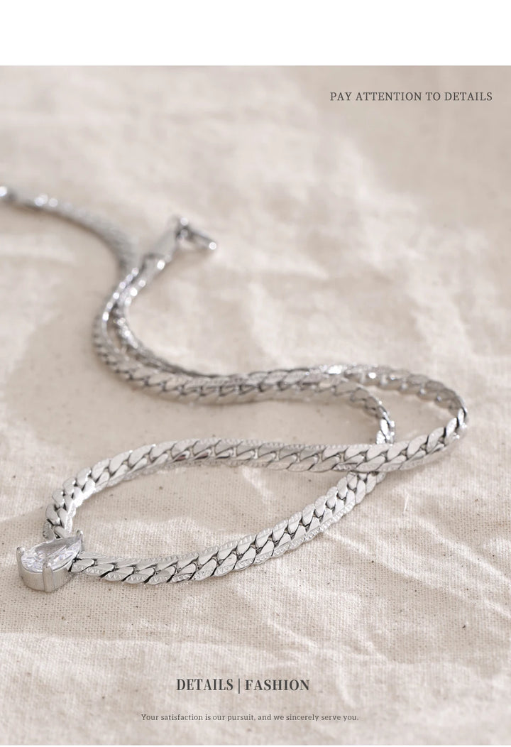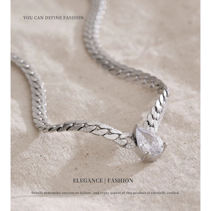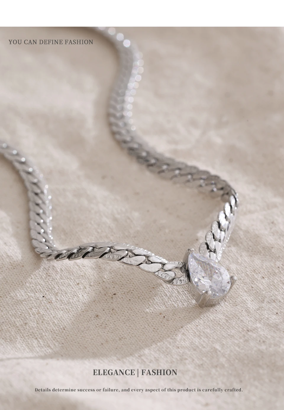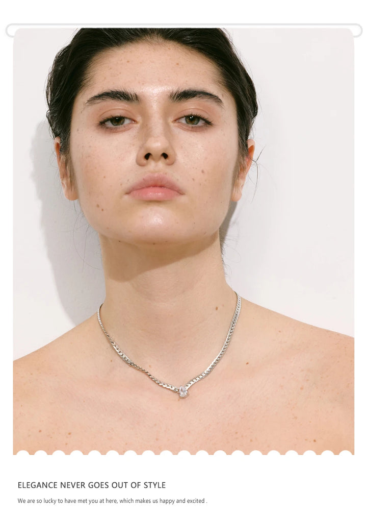 Necklace Stainless Steel Women Collarbone Chain Gemstone Green Exquisite Heavy Industry Elegant Bracelet Jewelry New