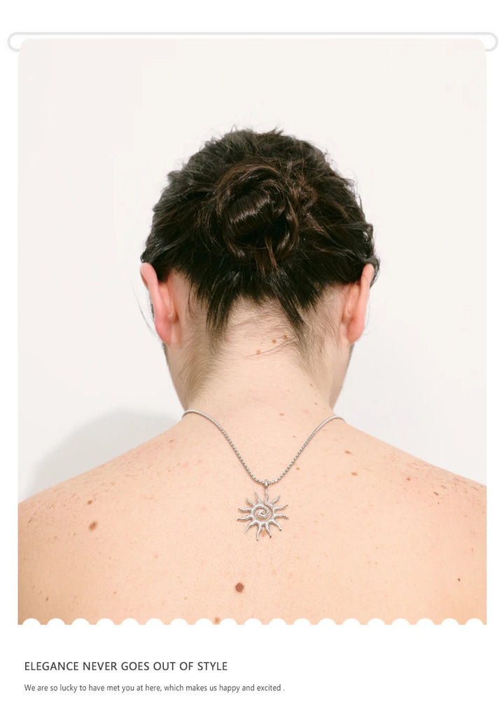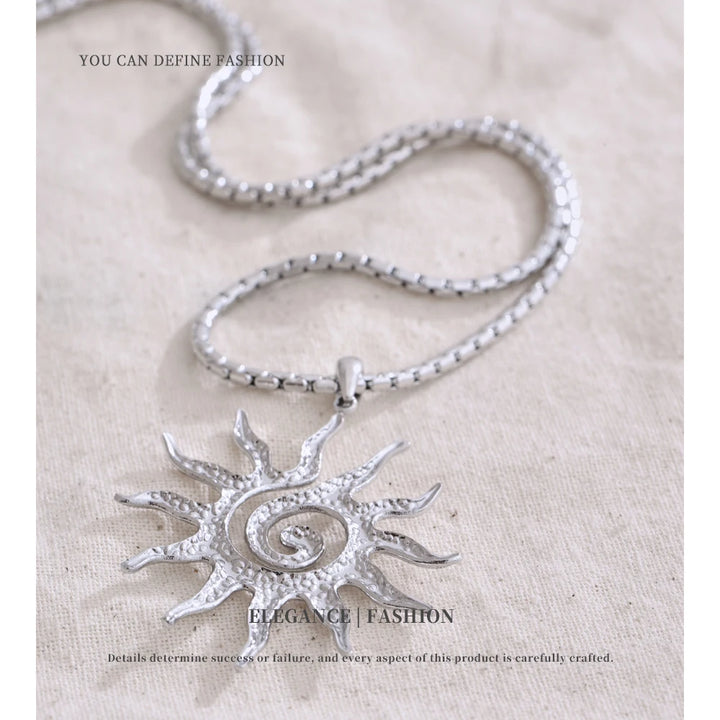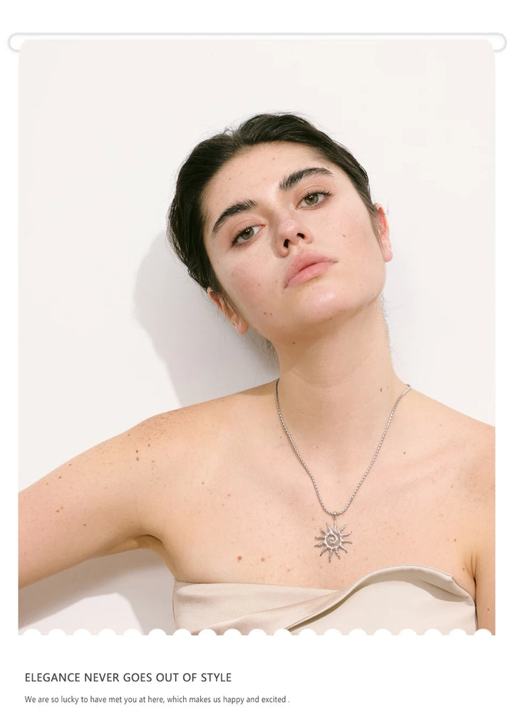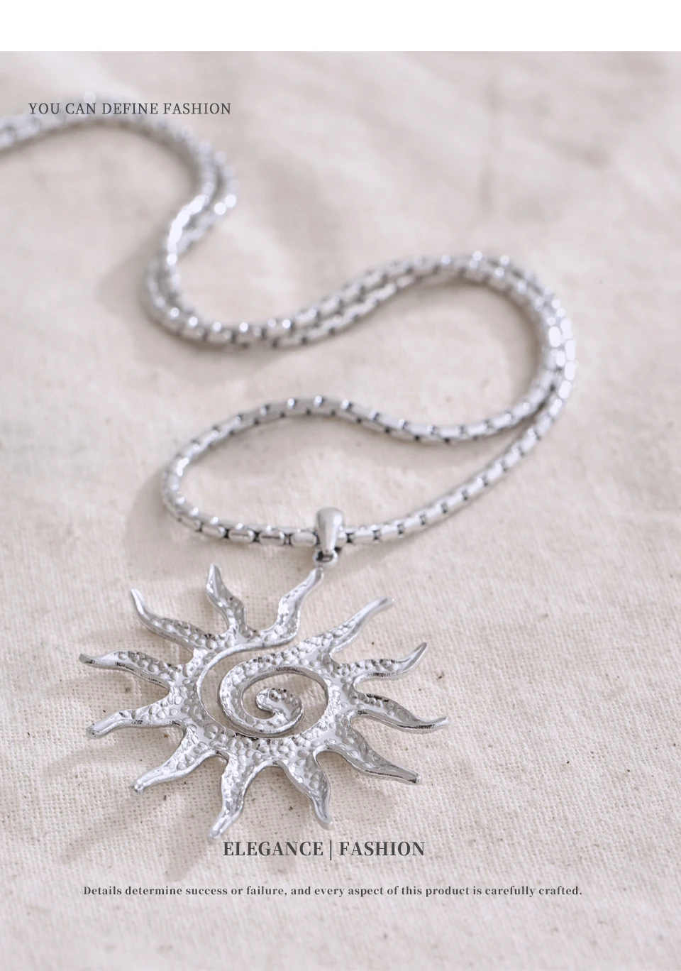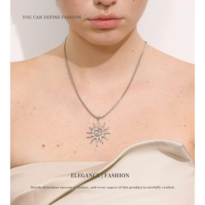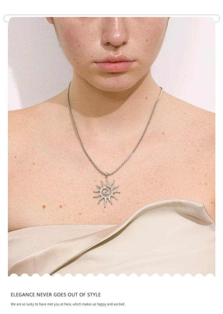 Necklace Weatherproof Jewellery Tarnish Woman Fashion Stainless Steel Pendants Sun Shaped Sweater Chain New Wholesale