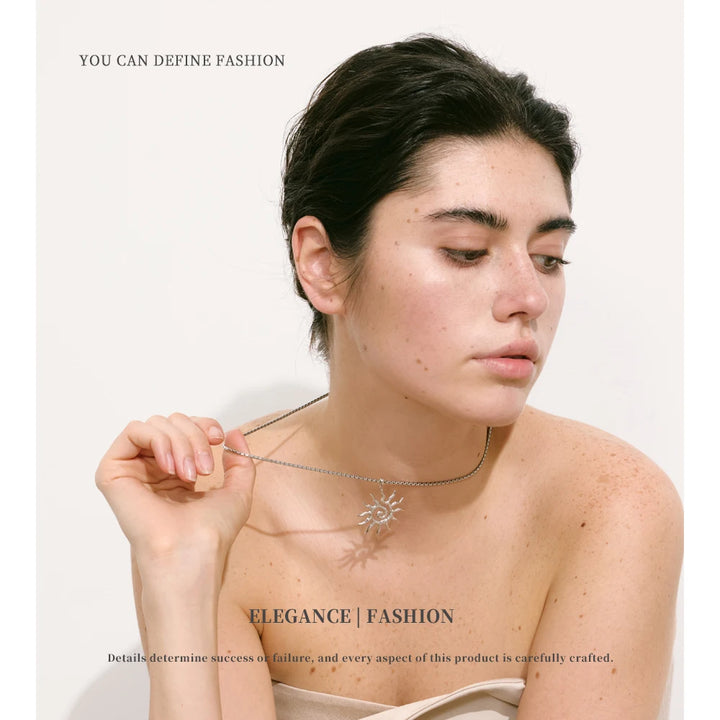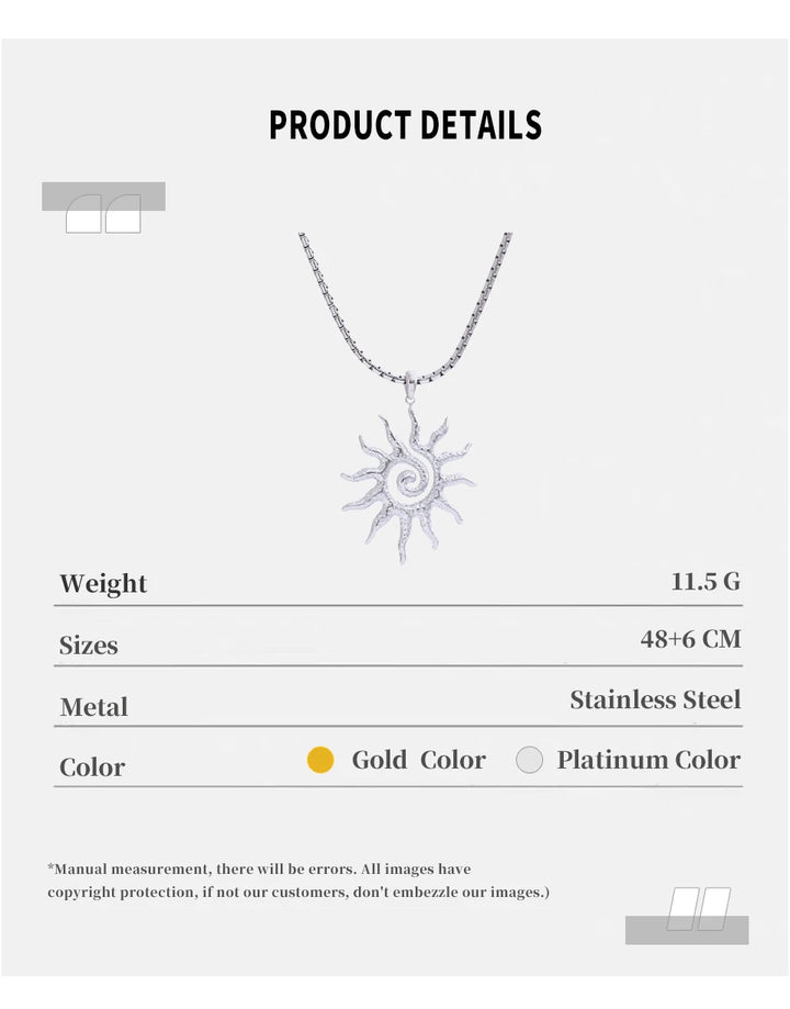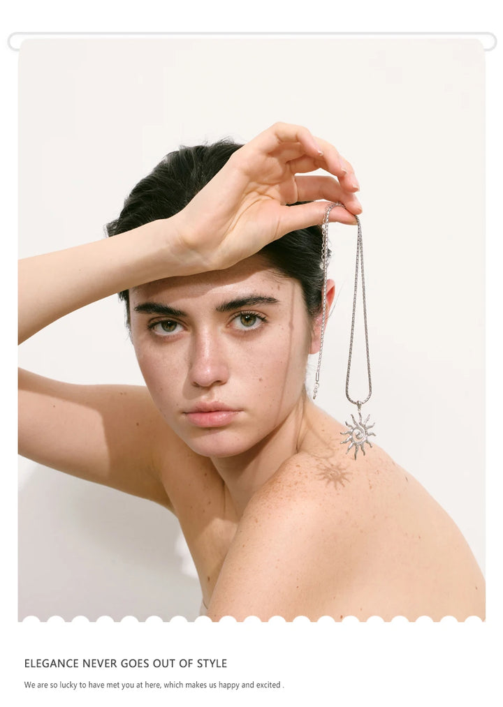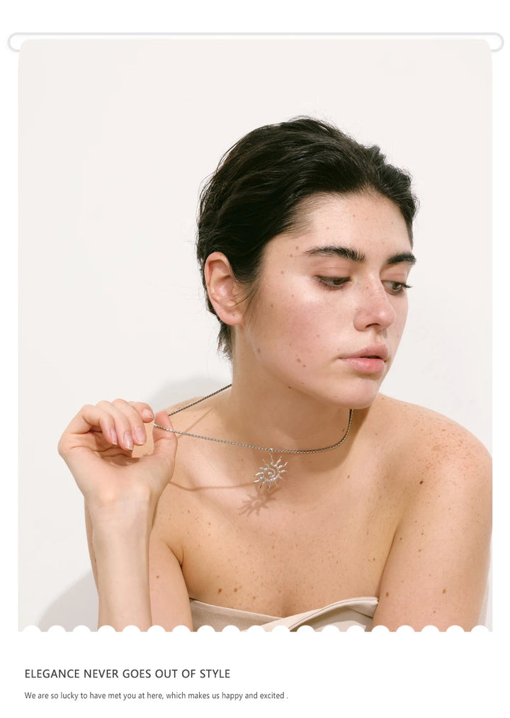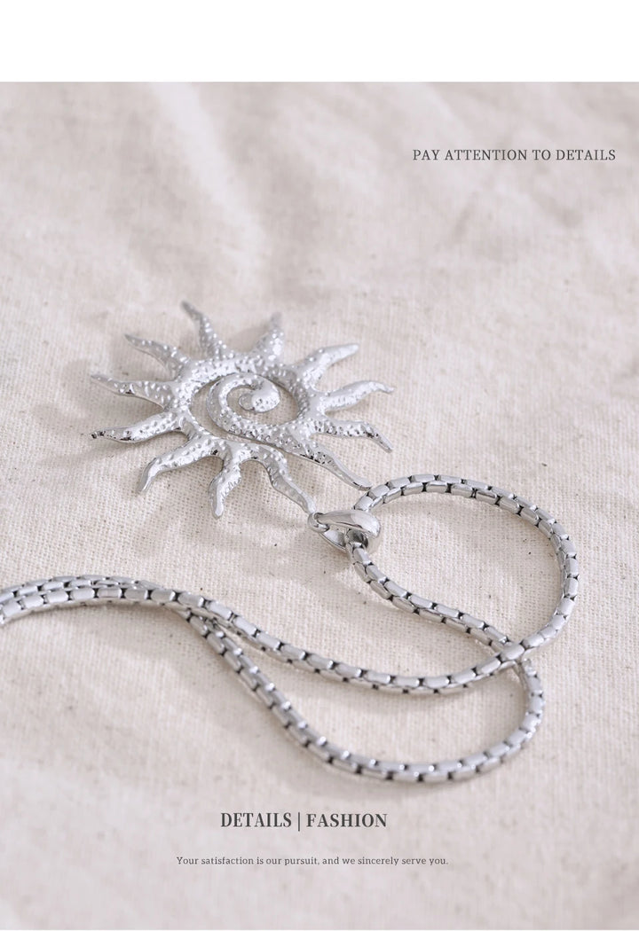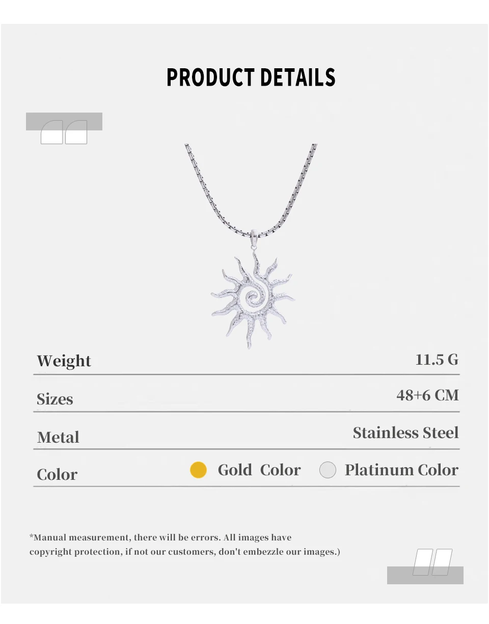 Necklace Weatherproof Jewellery Tarnish Woman Fashion Stainless Steel Pendants Sun Shaped Sweater Chain New Wholesale