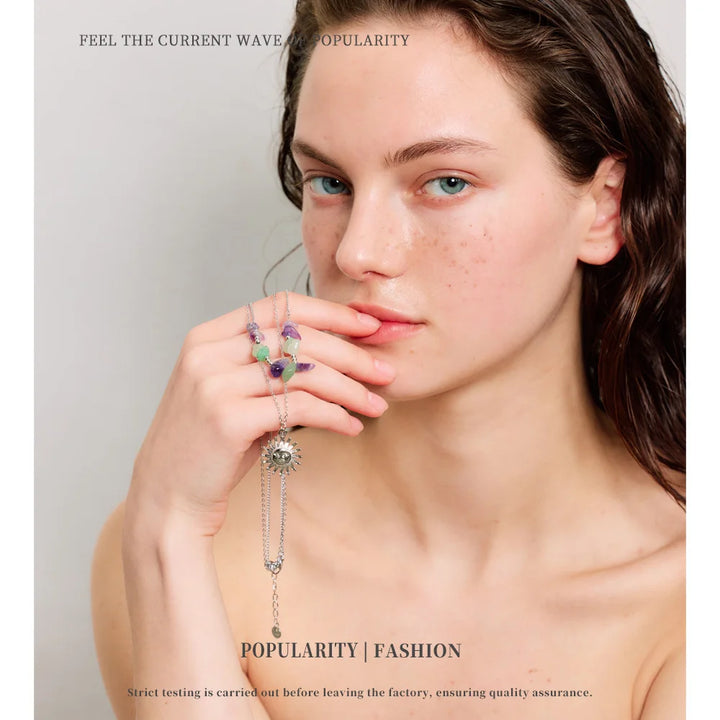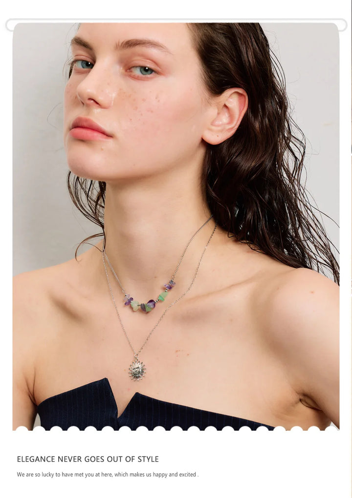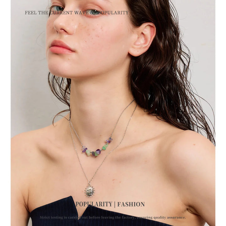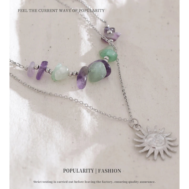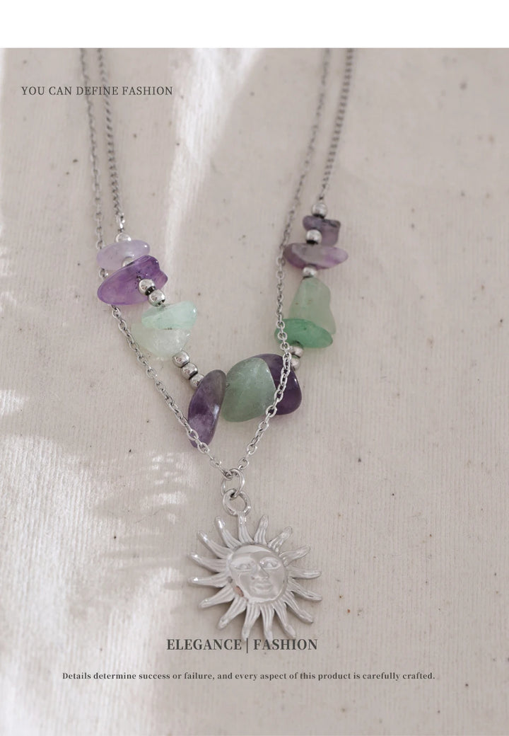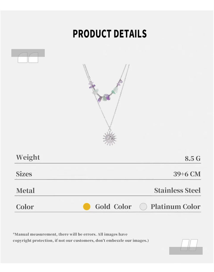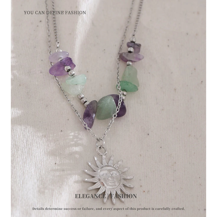 Necklaces for Women Stainless Steel Jewelry Natural Stone Double-Layer Sun Shaped Pendant Fashionable Elegant Gift New