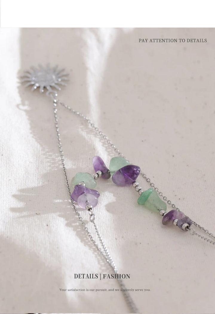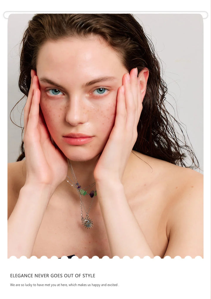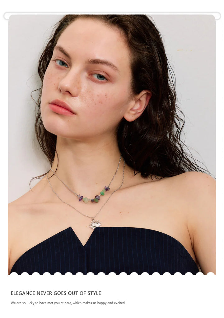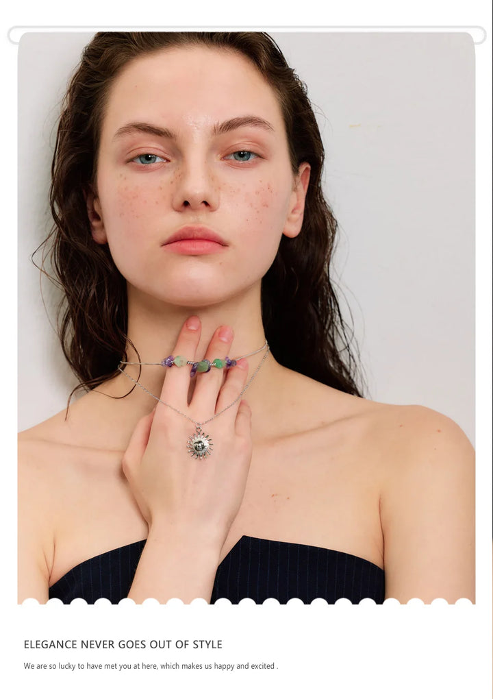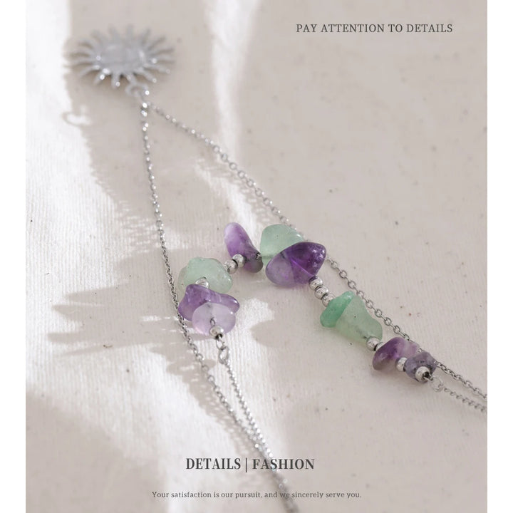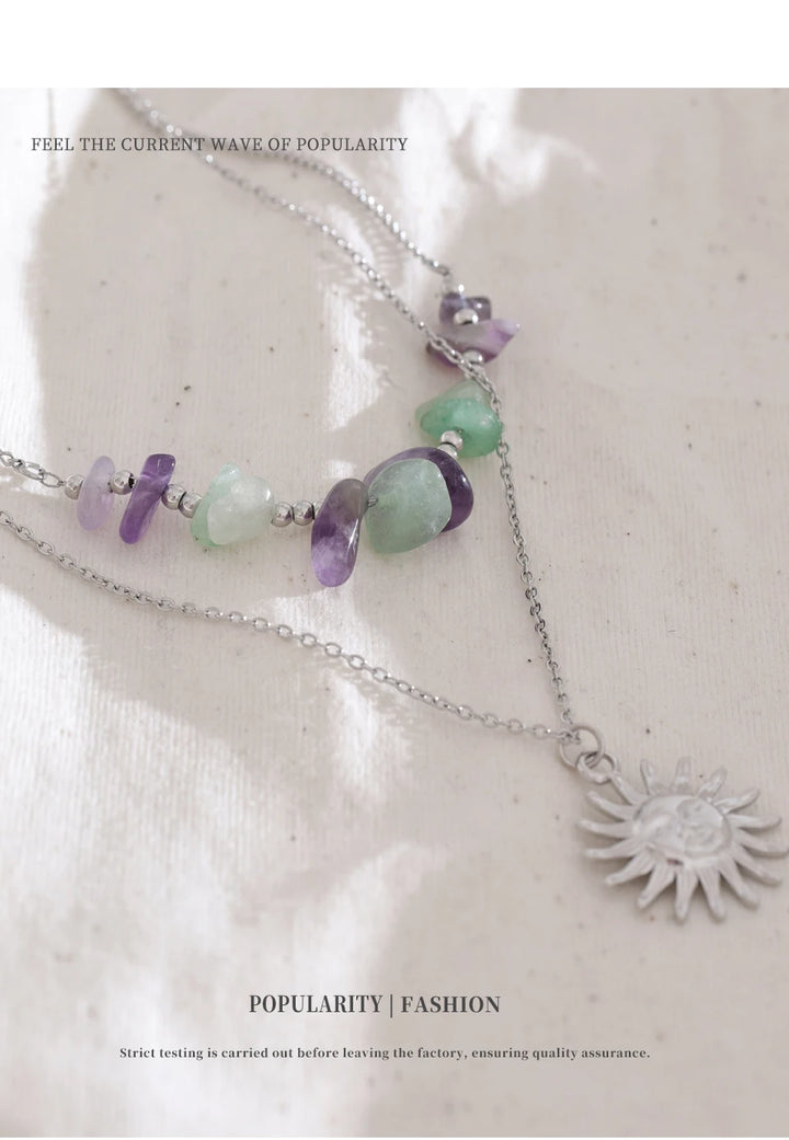 Necklaces for Women Stainless Steel Jewelry Natural Stone Double-Layer Sun Shaped Pendant Fashionable Elegant Gift New