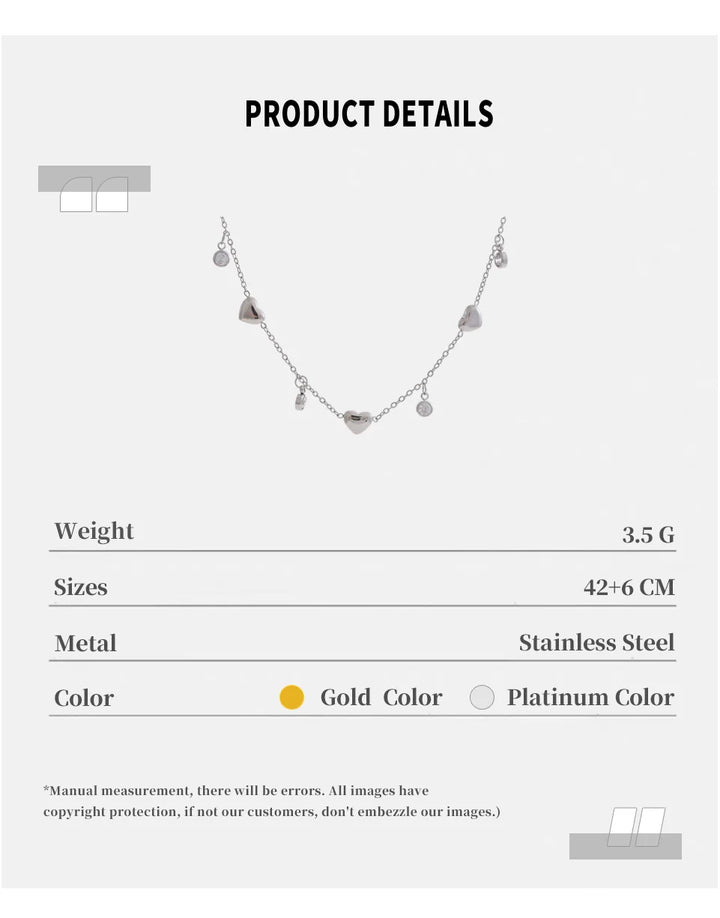 Necklaces for Women Stainless Steel Jewelry Original Heart-Shaped Cubic Zirconia Pendant with Romantic PVD Plated Fashion