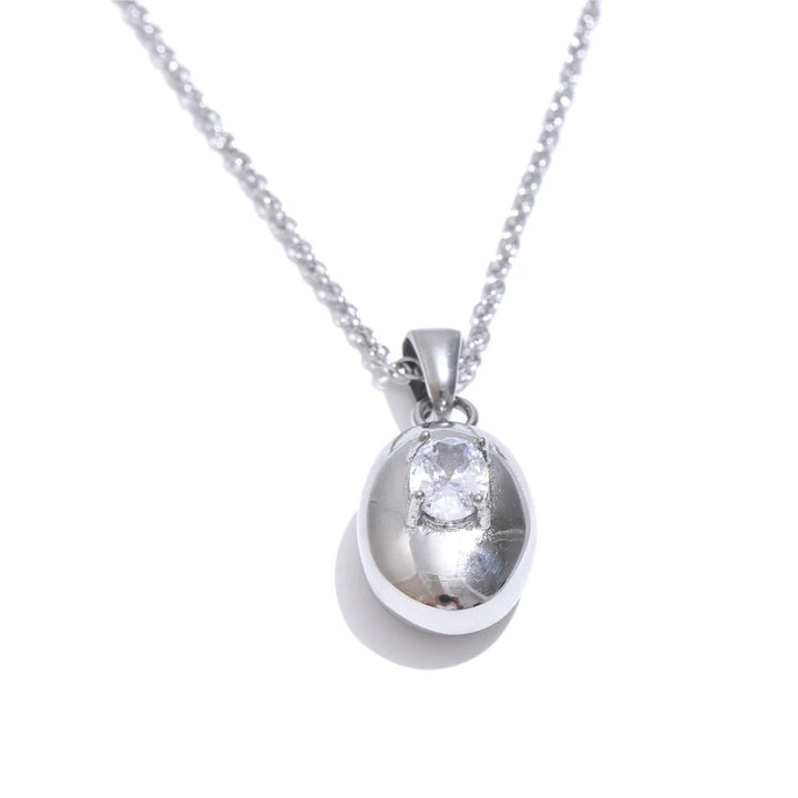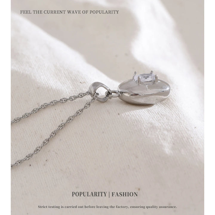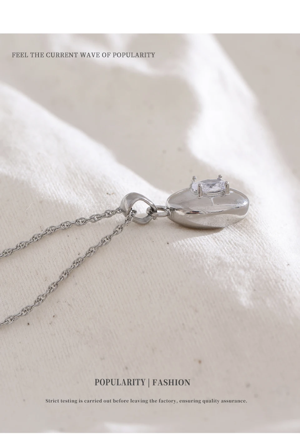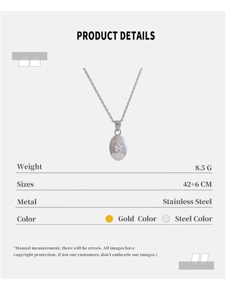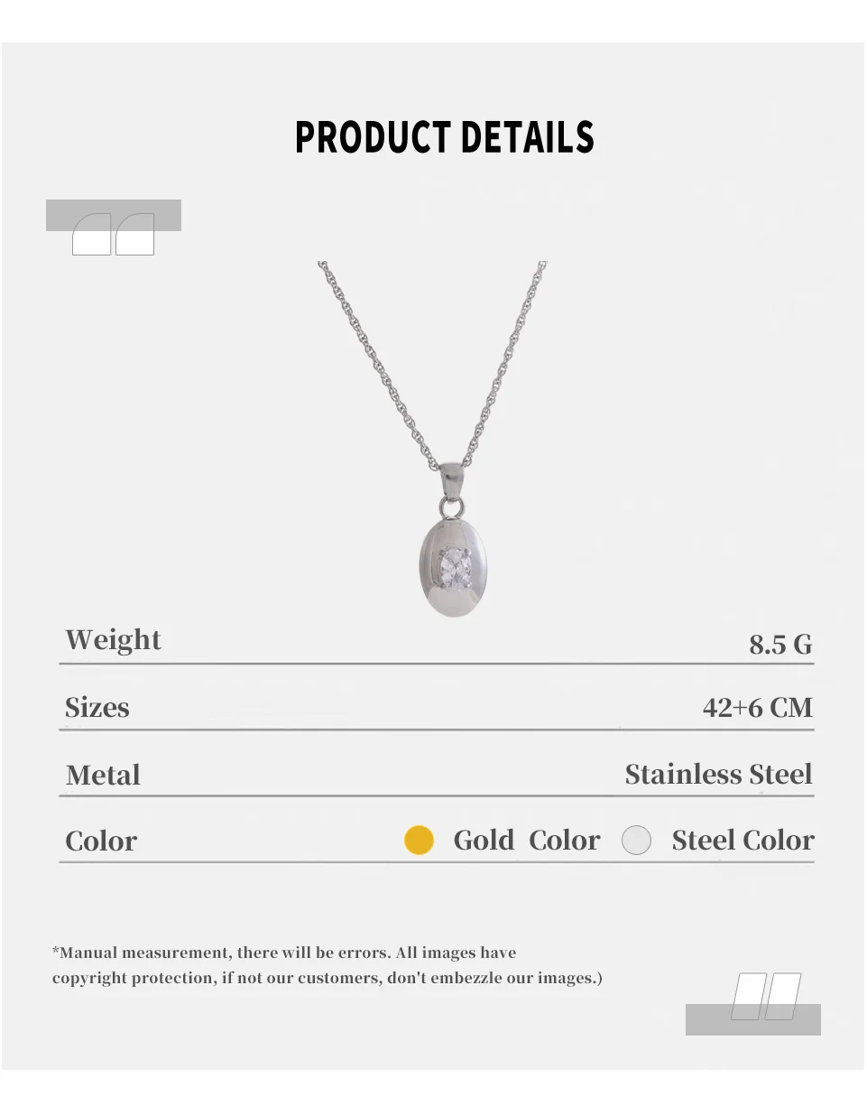 NiNice Necklaces for Women Stainless Steel Jewelry Oval Cubic Zirconia Pendant Decoration Waterproof Fashion Sweater Chain