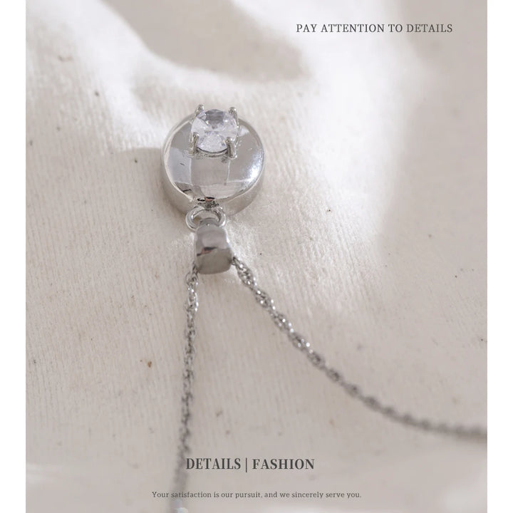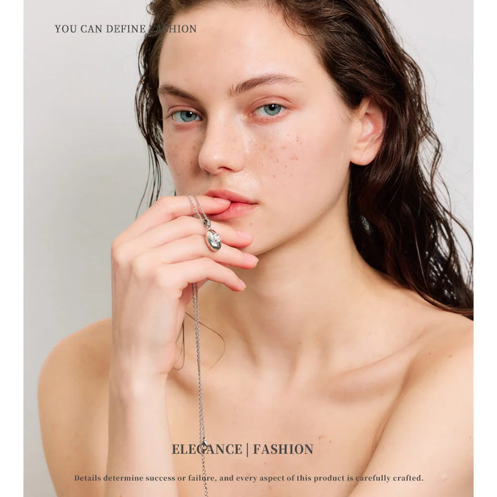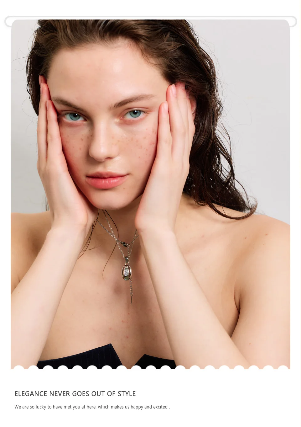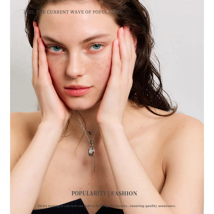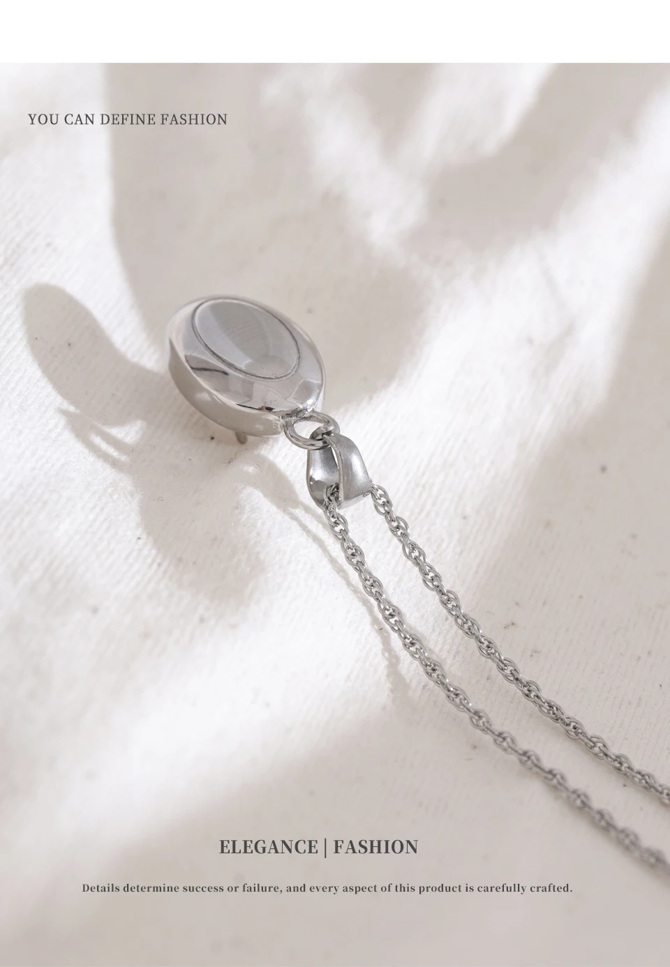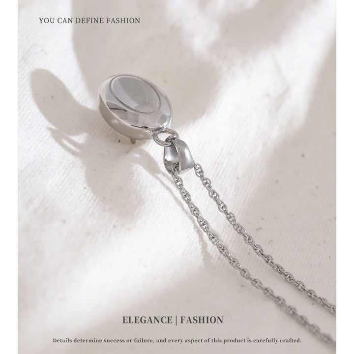 NiNice Necklaces for Women Stainless Steel Jewelry Oval Cubic Zirconia Pendant Decoration Waterproof Fashion Sweater Chain