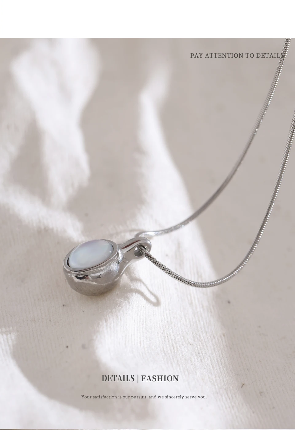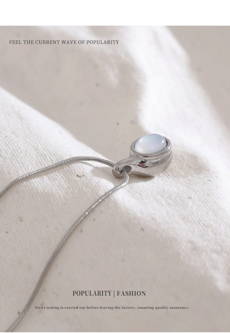 NiNice Necklaces for Women Stainless Steel Natural Stone Shell Pendant Waterproof Fashionable Simple Gift New Wholesale