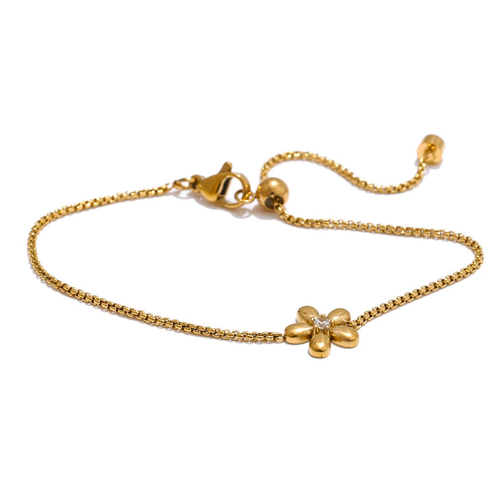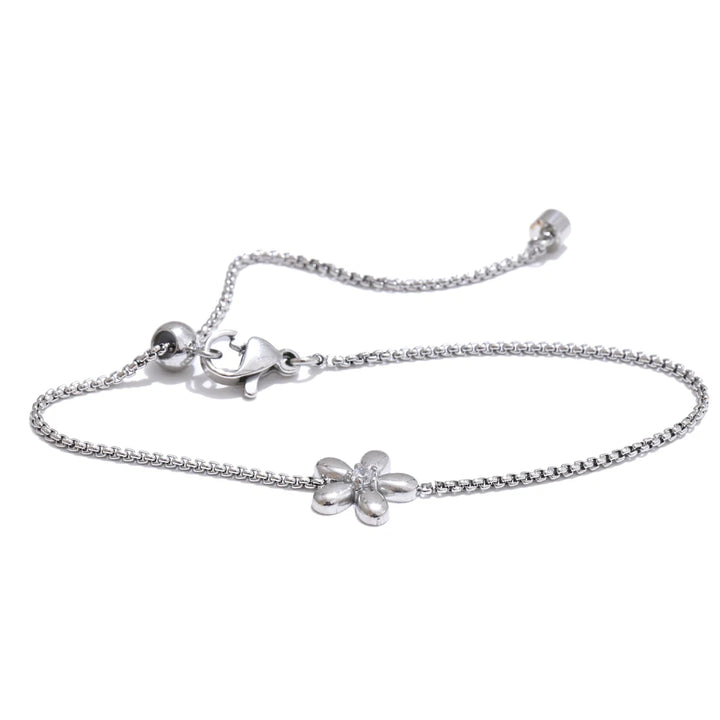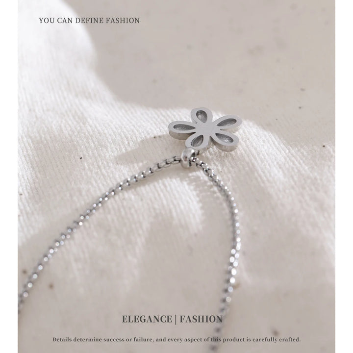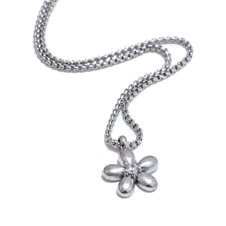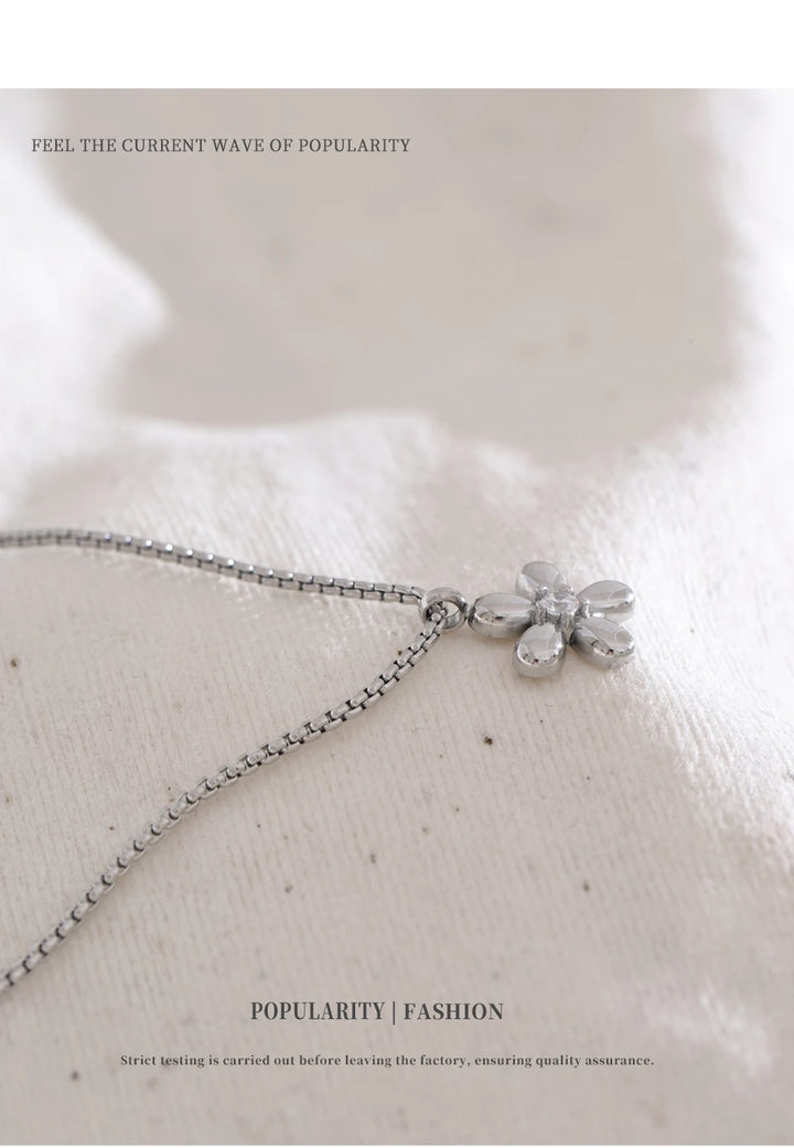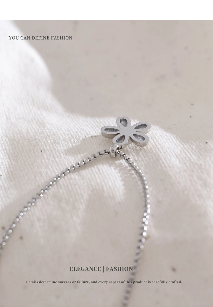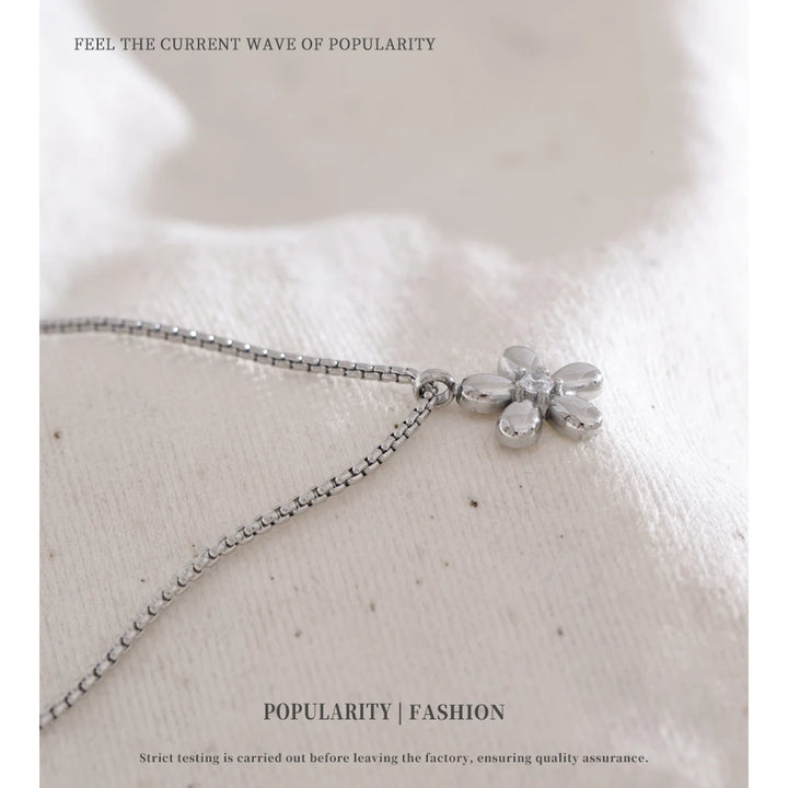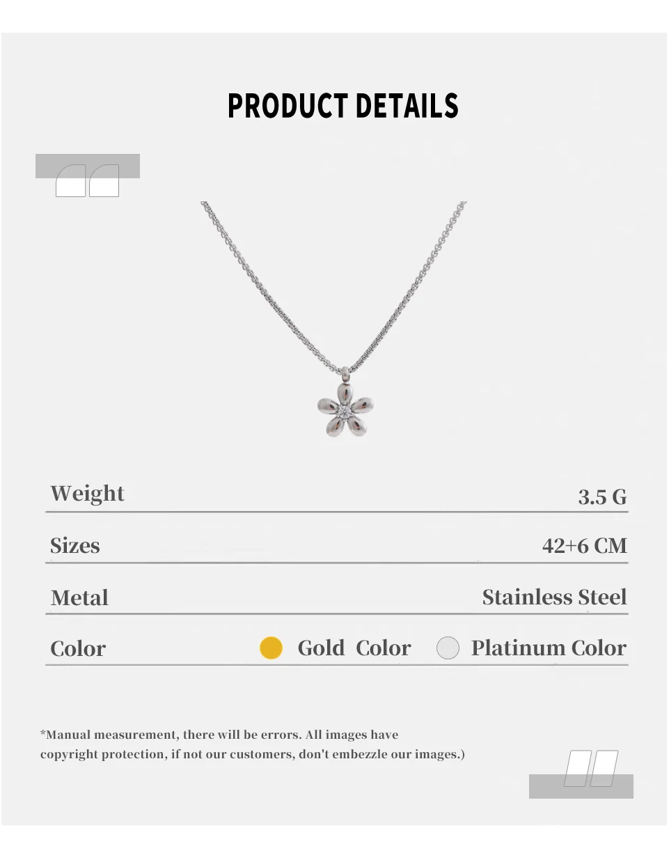 Necklaces for Women Stainless Steel Original Zirconia Flower Shaped Pendant Bracelet Earring Set Fashionable Simple Gift