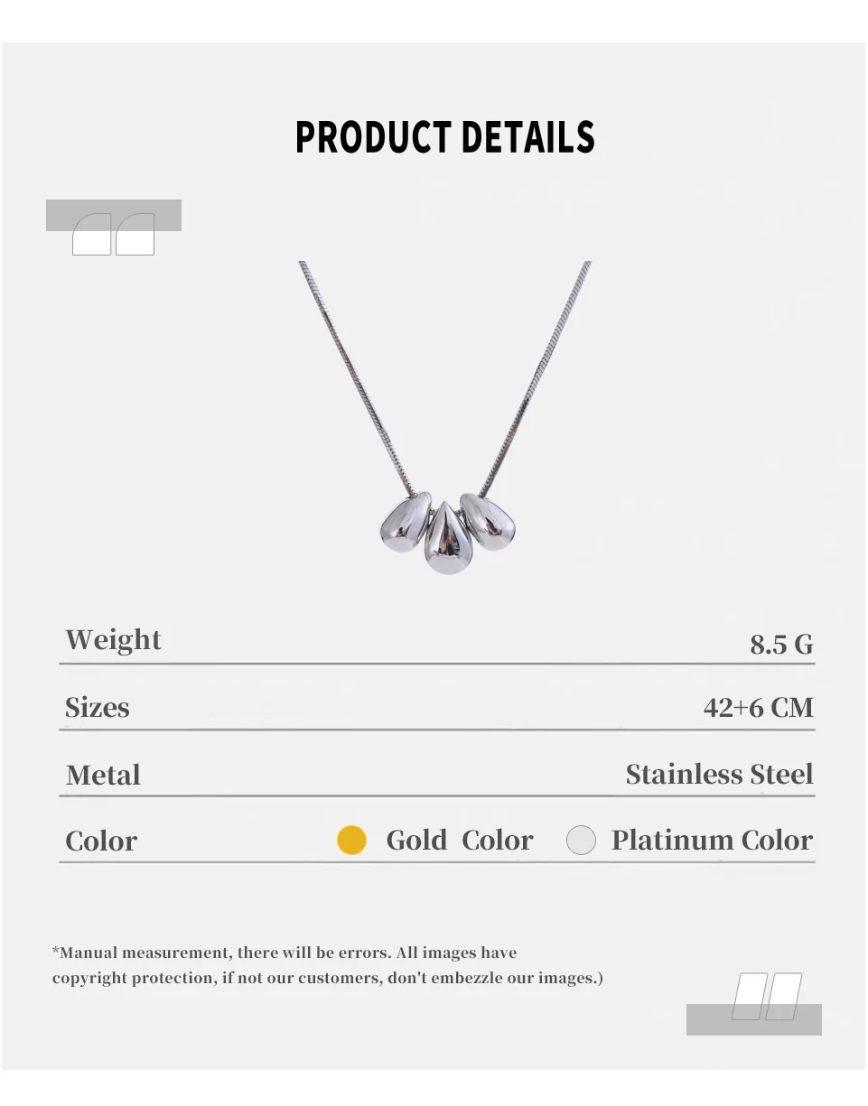 Necklaces Stainless Steel Women Three Water Droplet Pendant Fashionable Waterproof Sweater Chain New Gifts Wholesale