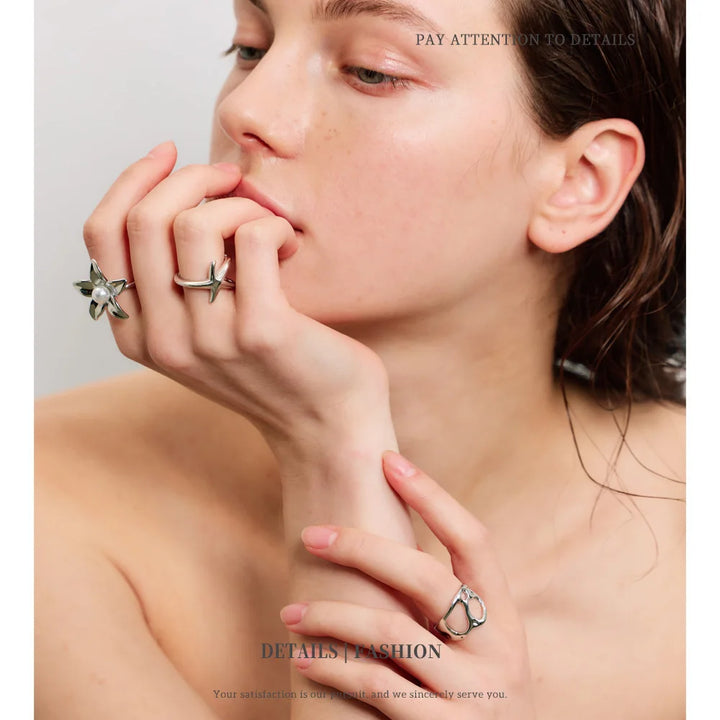 Rings Stainless Steel Jewelry Woman Geometric Hollow Opening Waterproof Popular Design Sense Accessory Gift New