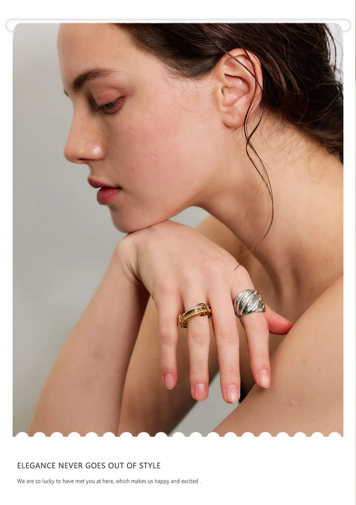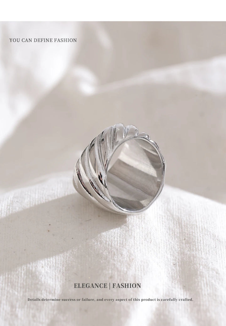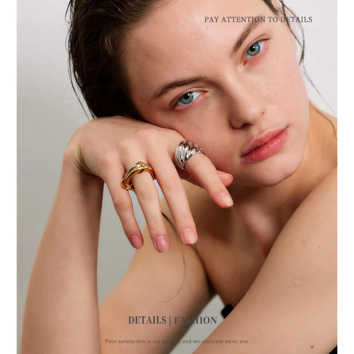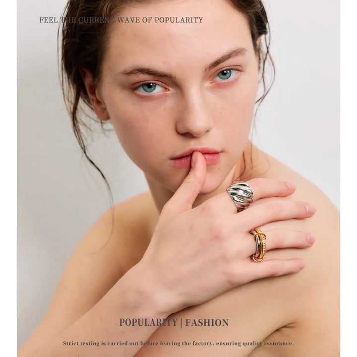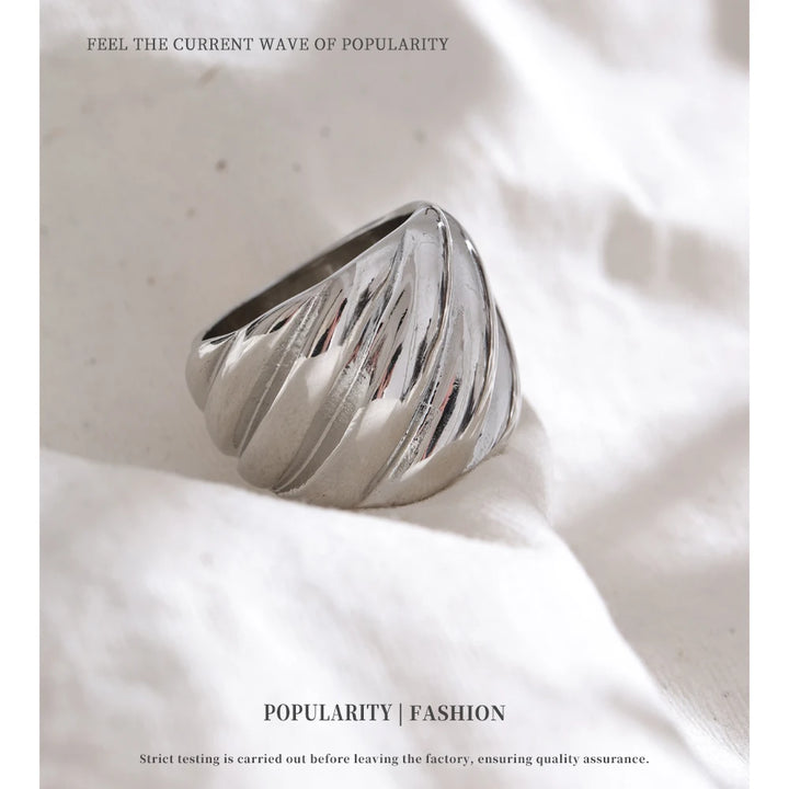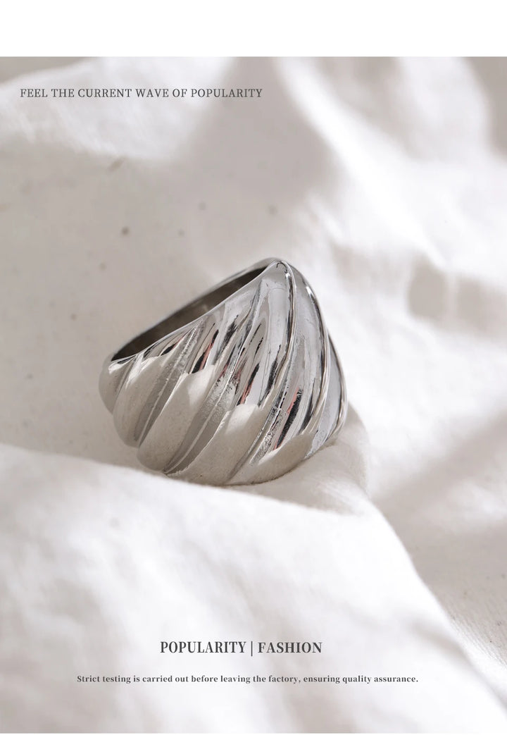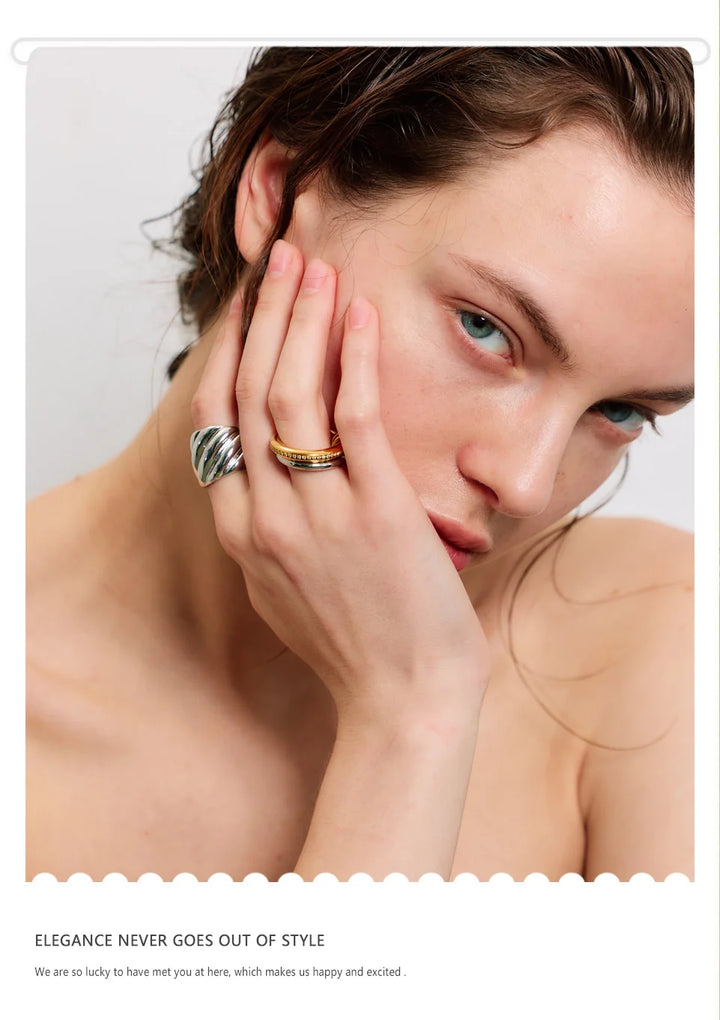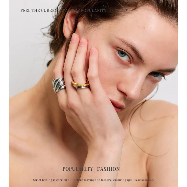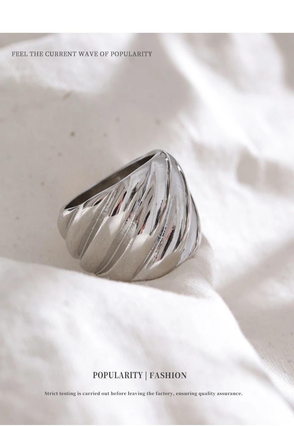 Rings Stainless Steel Jewelry Woman Metal Stripe Wide PVD Plated Fashionable Personalized Couple Heavy Industry New