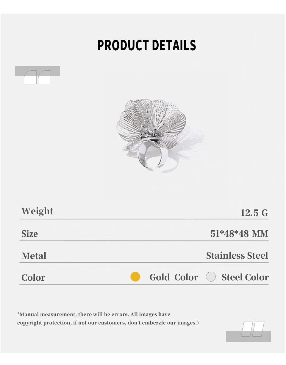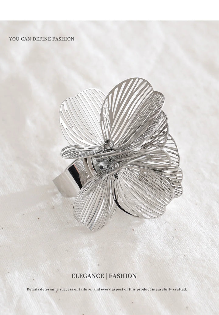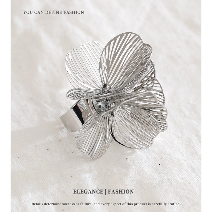Stainless Steel Adjustable Ring Pattern Fashionable Jewelry Design Romantic Exaggerated Party Gift