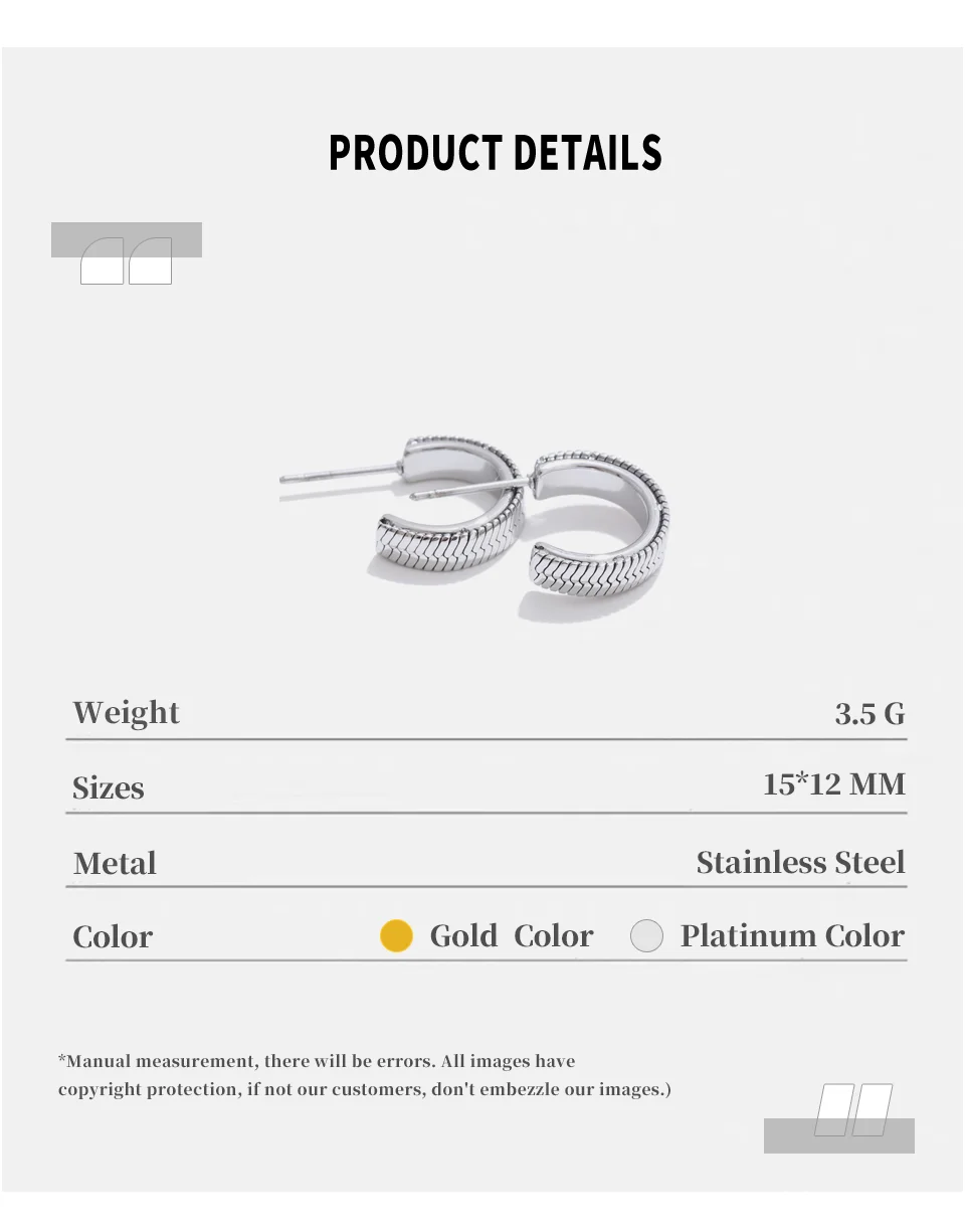 Stainless Steel Earrings Choice Jewelry C-shaped Fashion Design Classic Exquisite PVD Plated Personalized Gift New 15mm