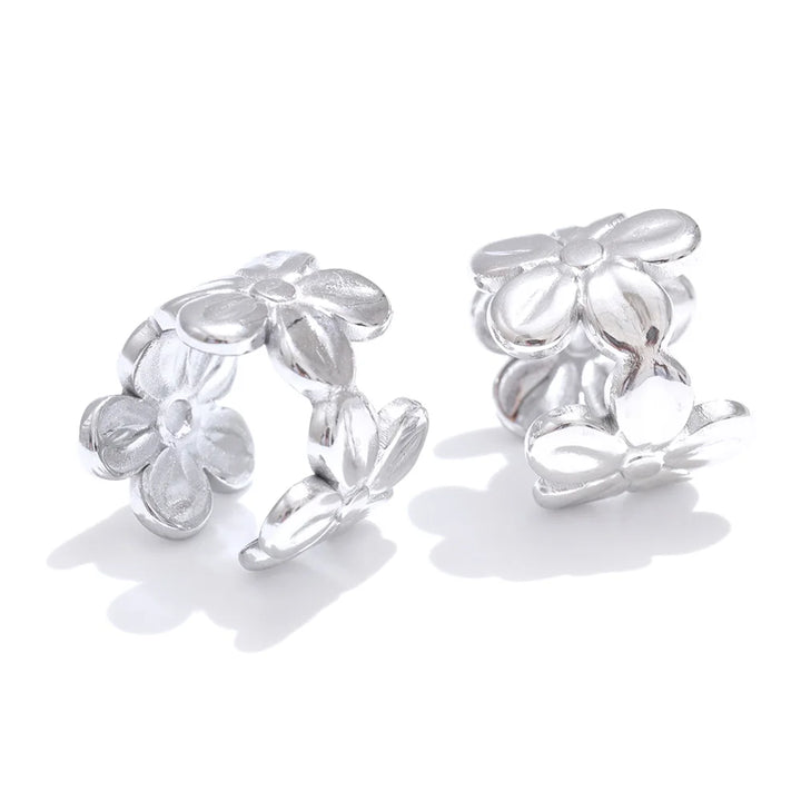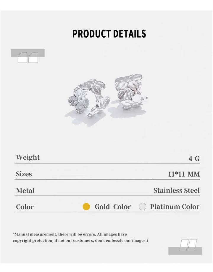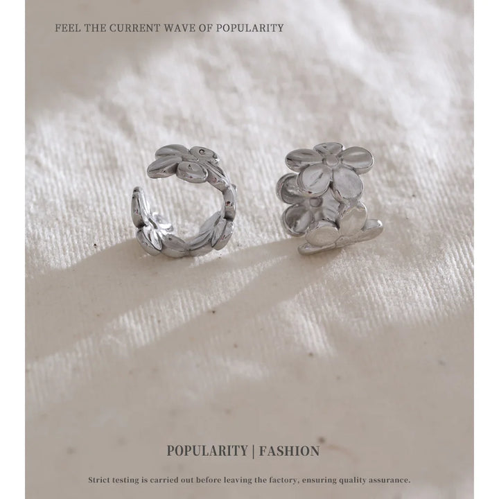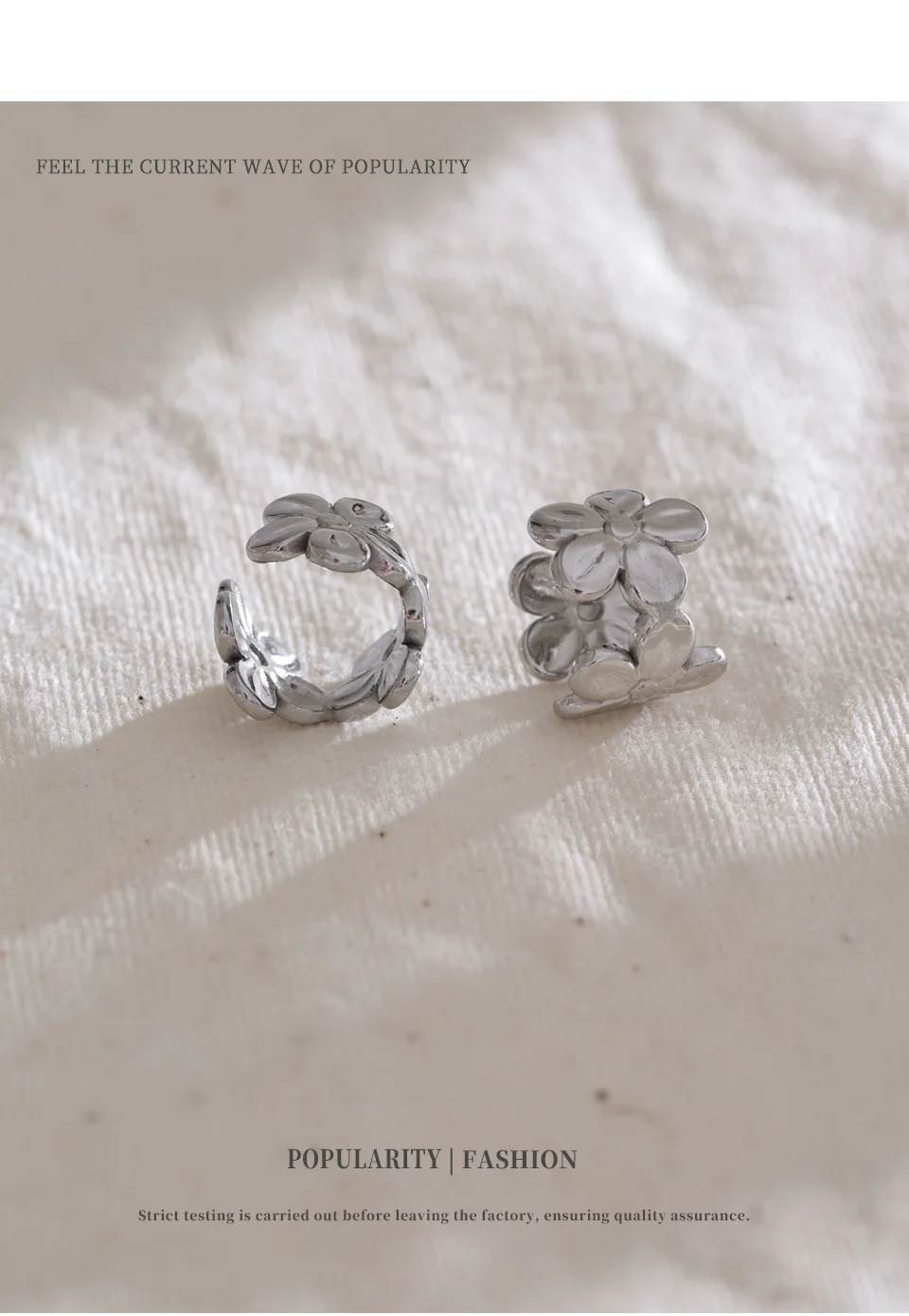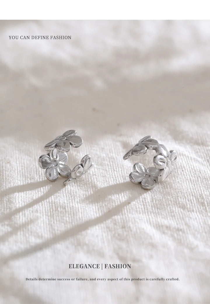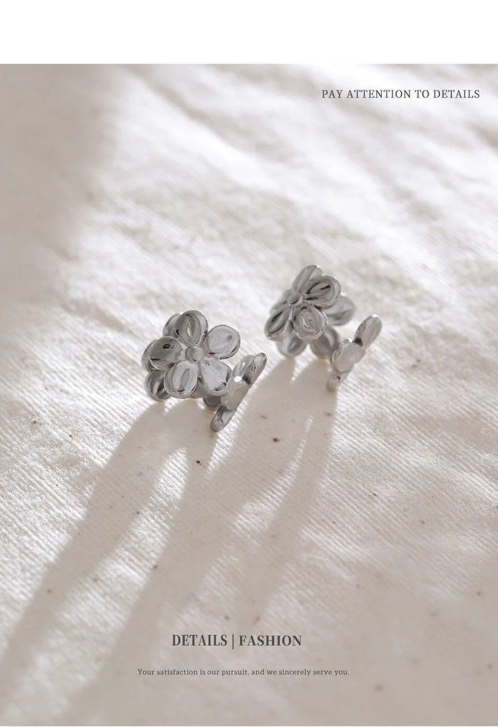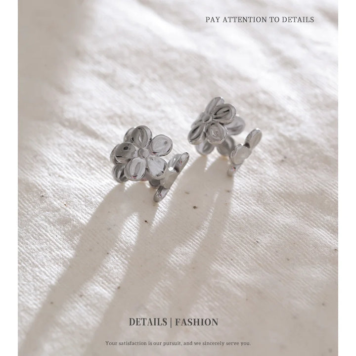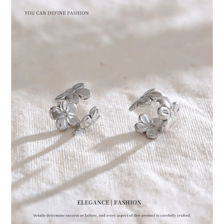 Stainless Steel Earrings Flower Shaped Connection Ear Bone Clip Design Fashionable Trendy Waterproof Exquisite Gift New