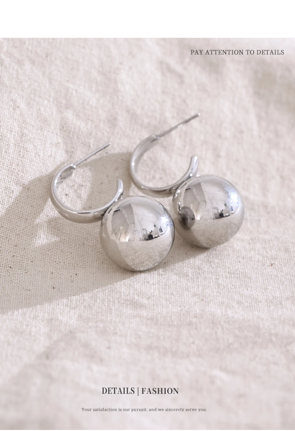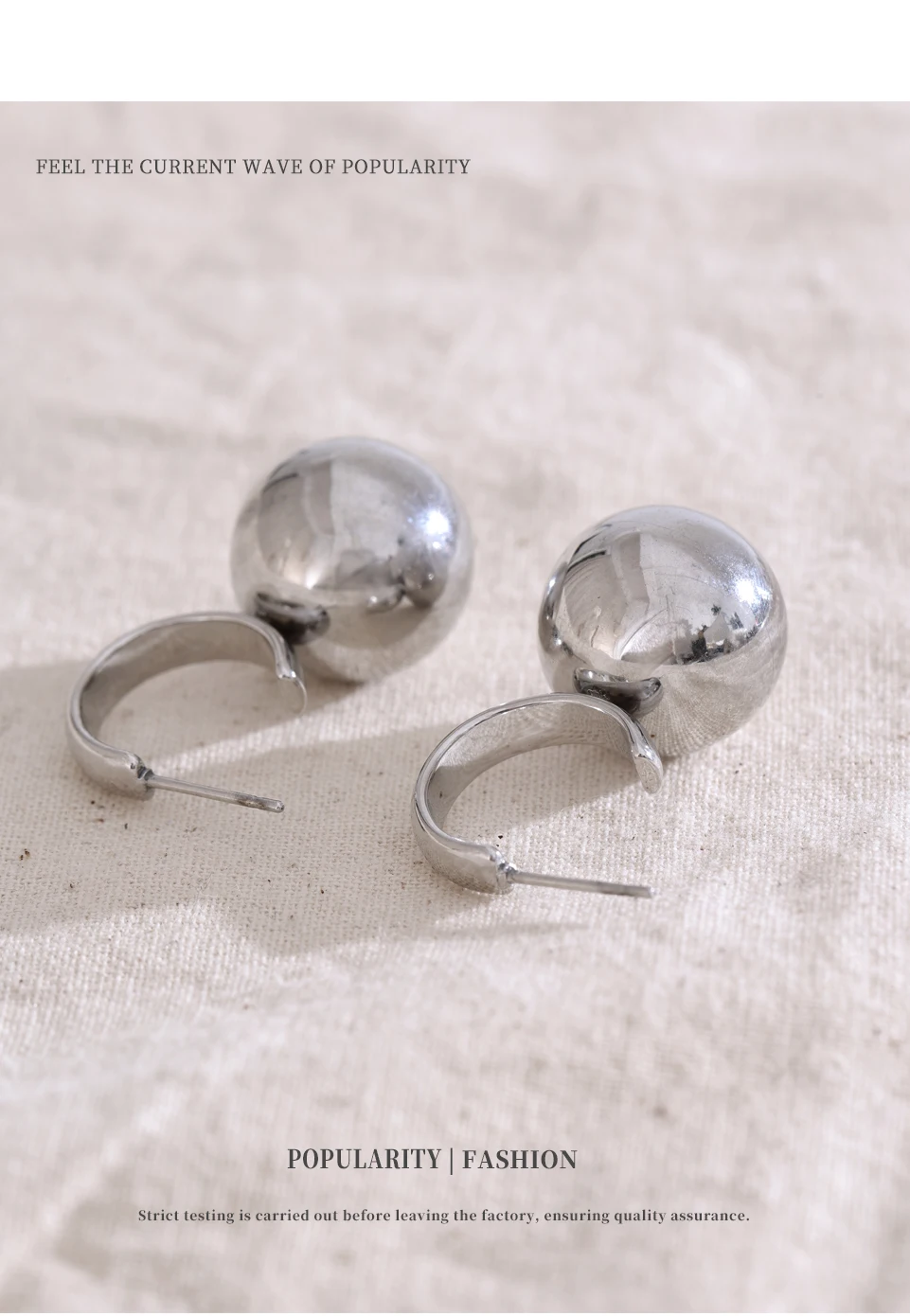 Stainless Steel Earrings Round Bead Spherical Pendant Fashionable Design Anti Allergic Selection Jewelry Gifts Wholesale