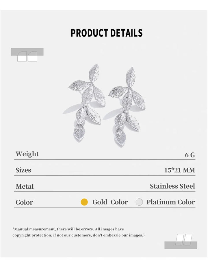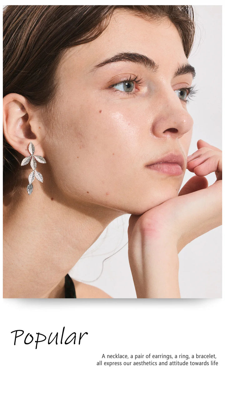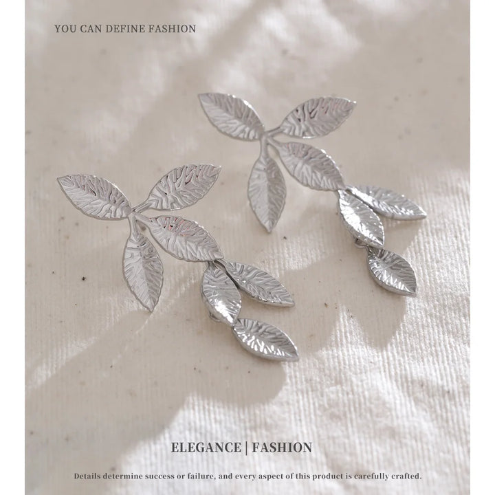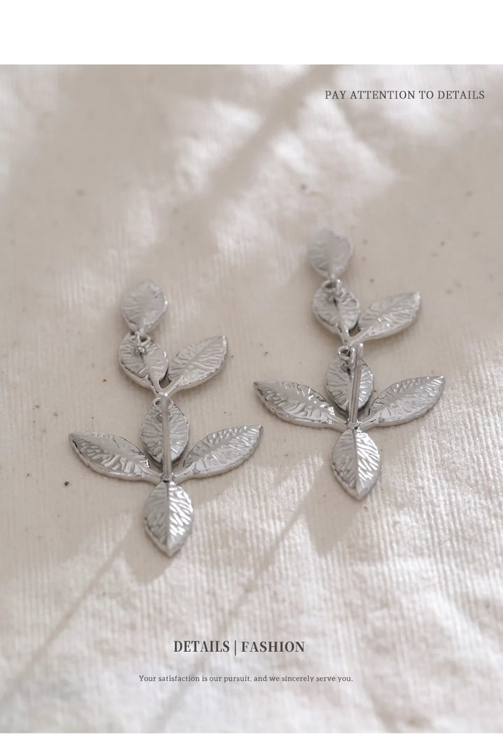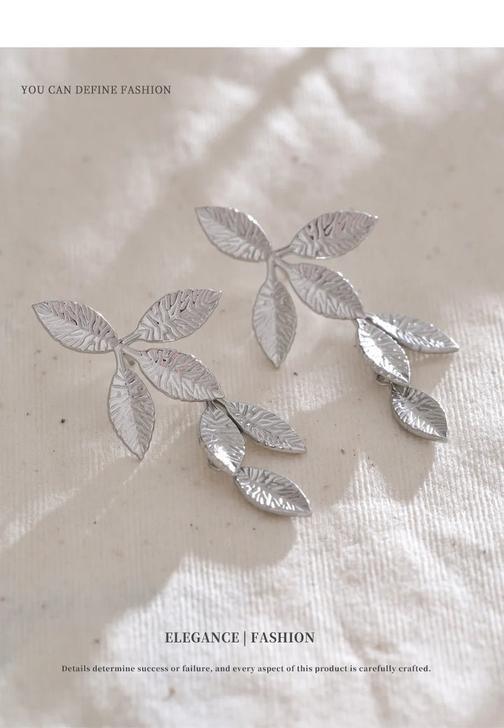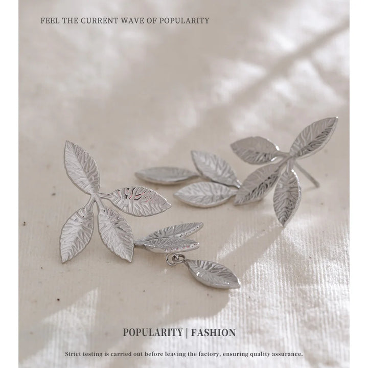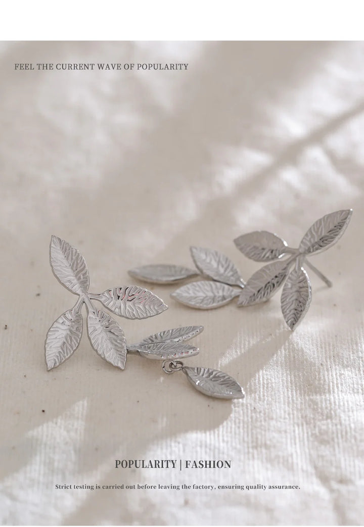 Stainless Steel Earrings with Leaf Pendant Design Fashionable Trendy Personalized Gift New