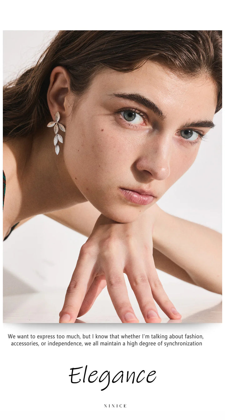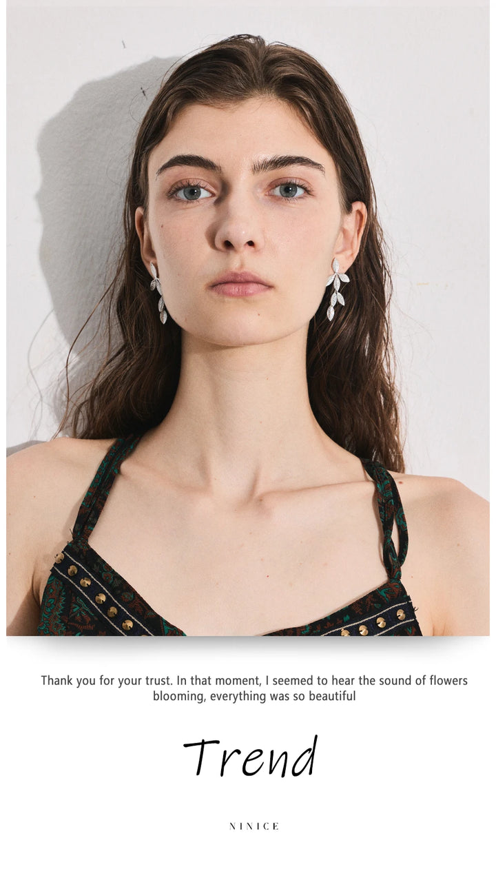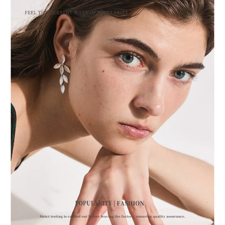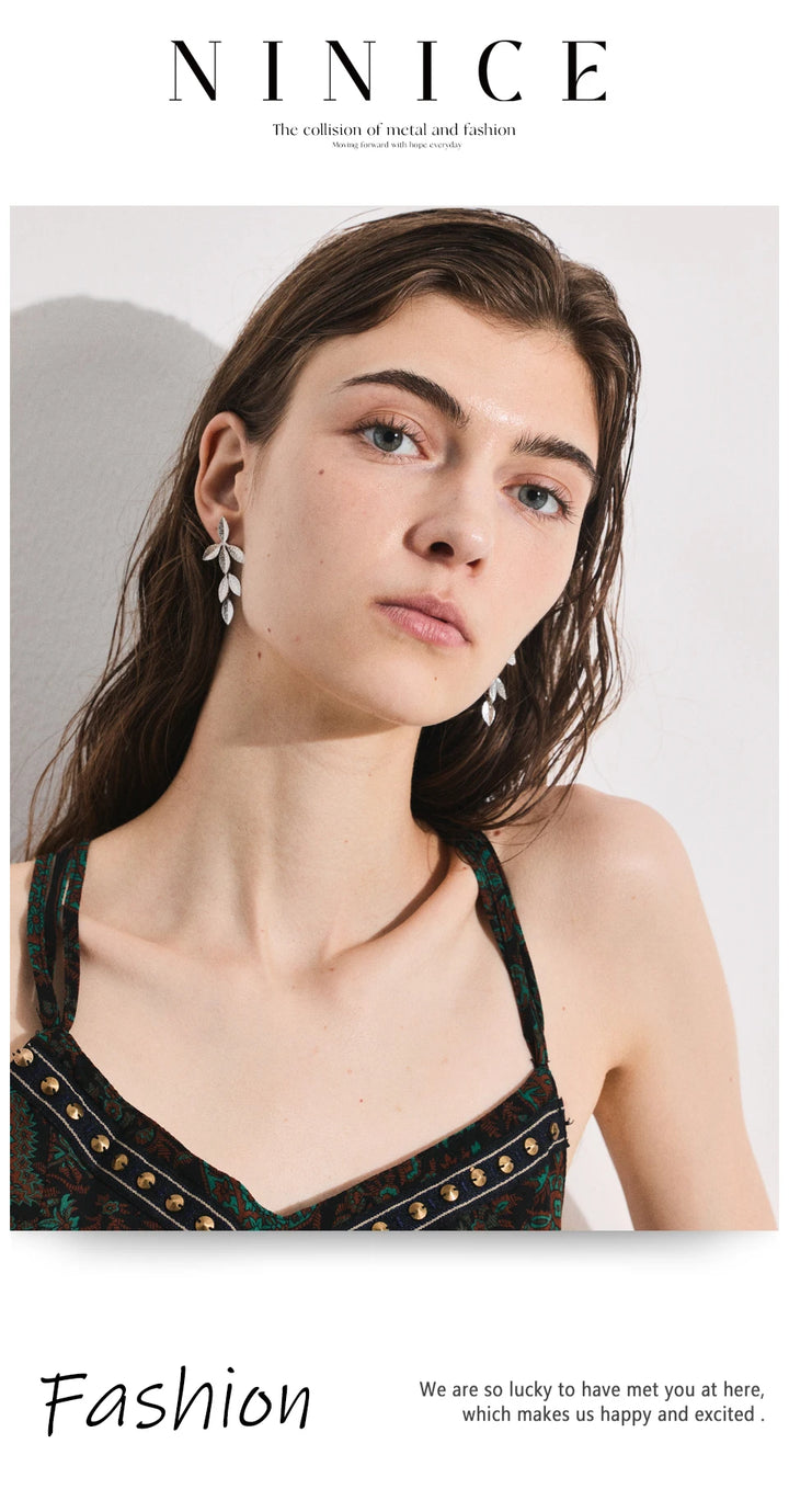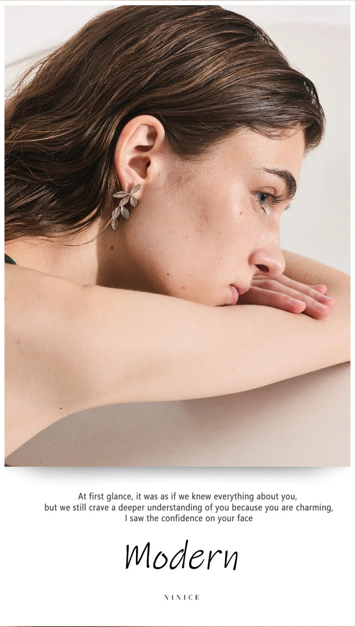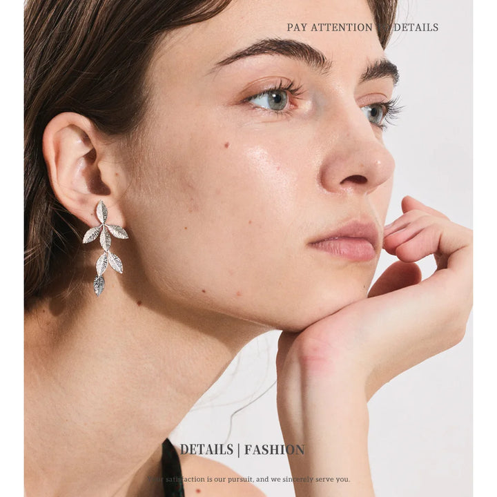 Stainless Steel Earrings with Leaf Pendant Design Fashionable Trendy Personalized Gift New