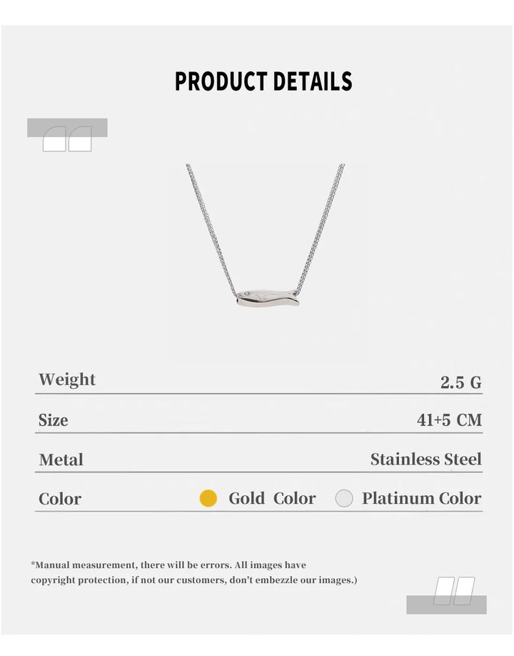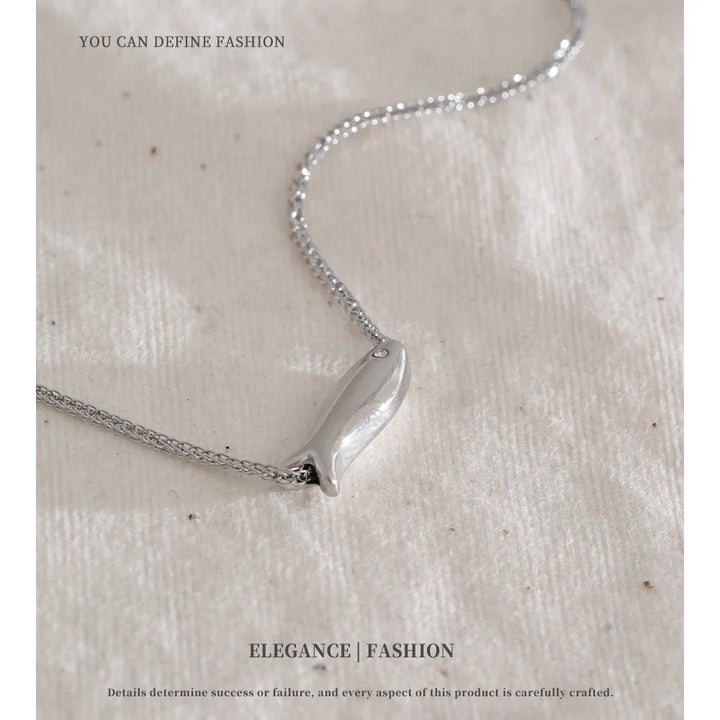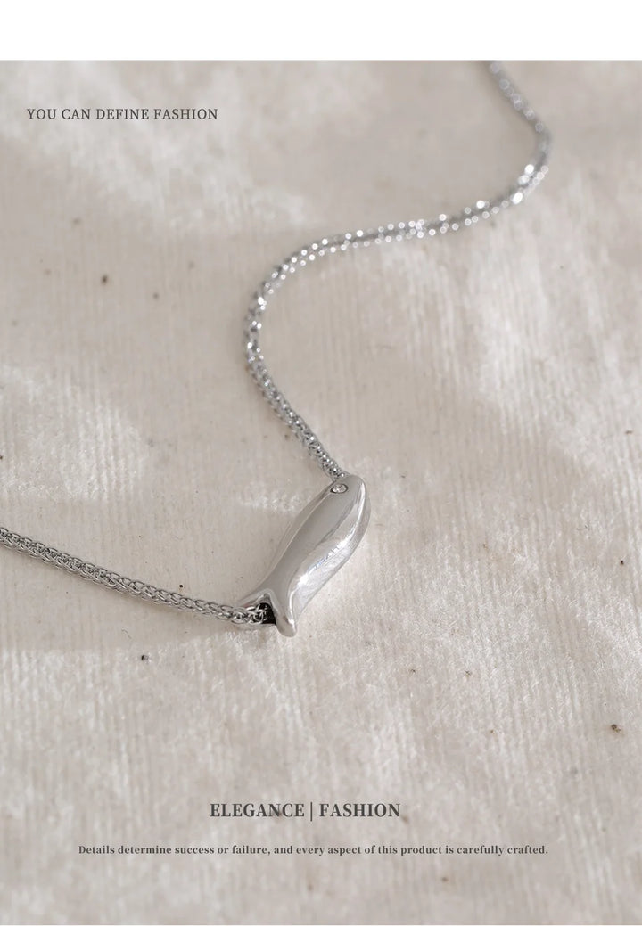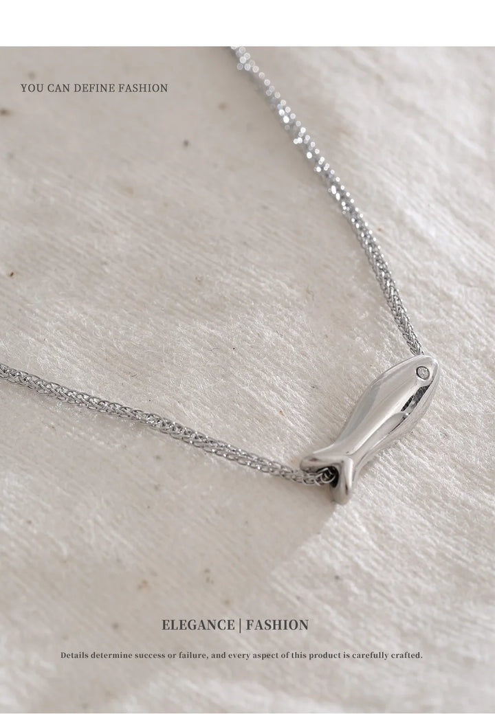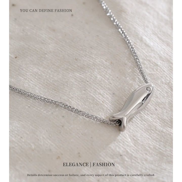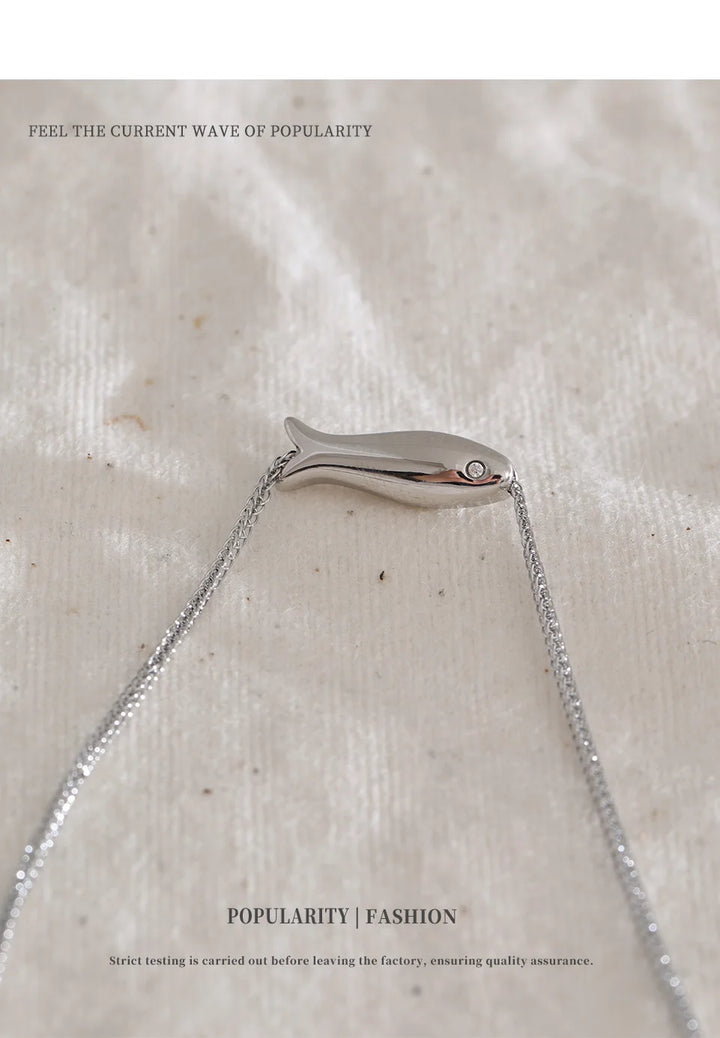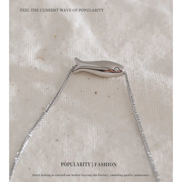 Stainless Steel Fish Shaped Pendant Zirconia Necklace with Fashionable Design Cute Exquisite Waterproof PVD Coating