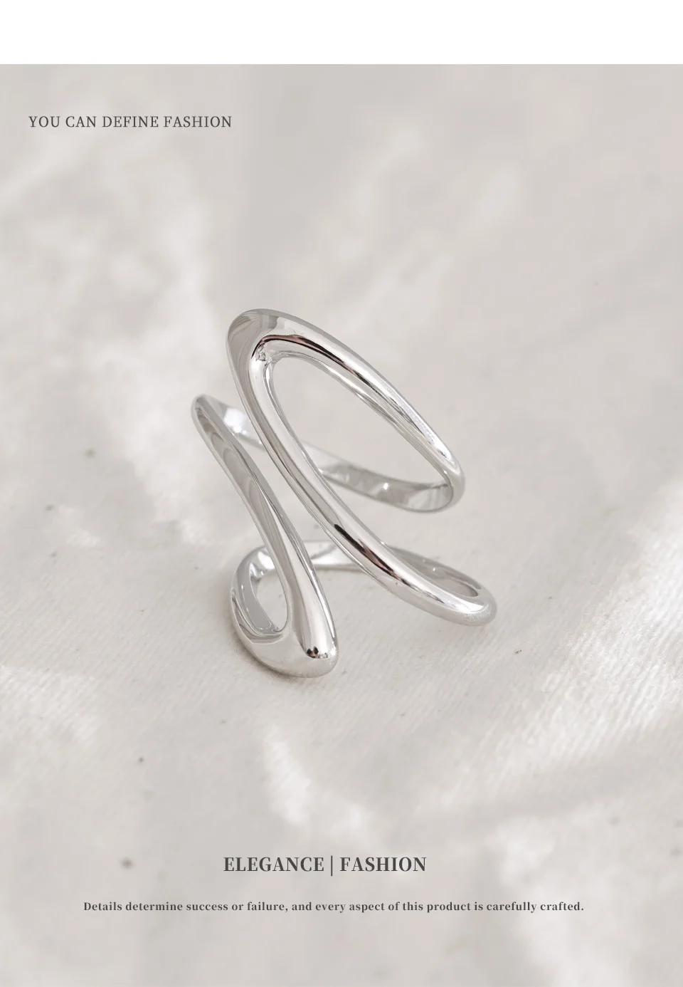 Ninice Stainless Steel Geometry Adjustable Ring Smooth High Quality Stylish Unique Design Daily Trendy Finger Jewelry Rust Proof