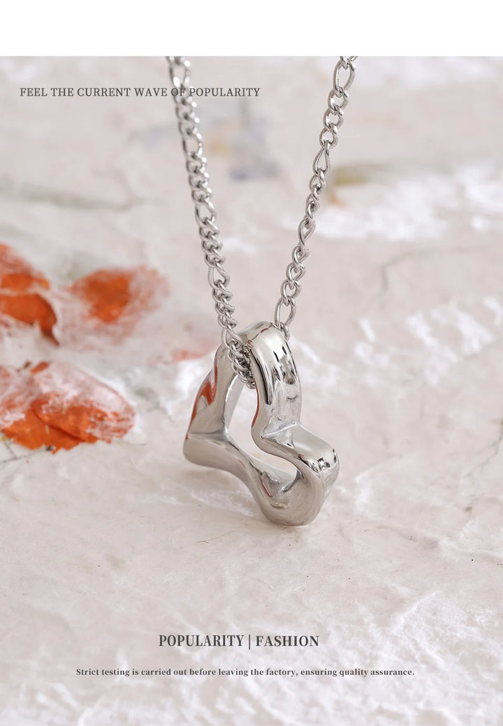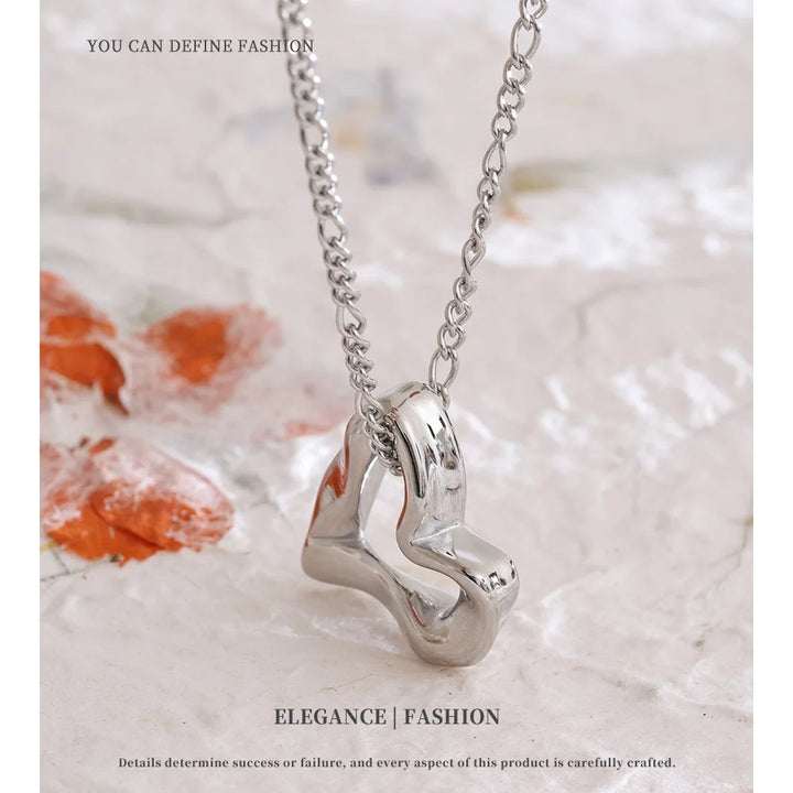 Stainless Steel Heart-shaped Hollow Pendant Necklace with Fashionable Design Simple Gift Selection Jewelry Wholesale