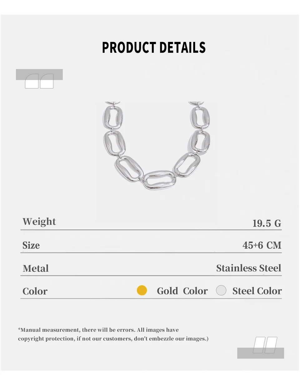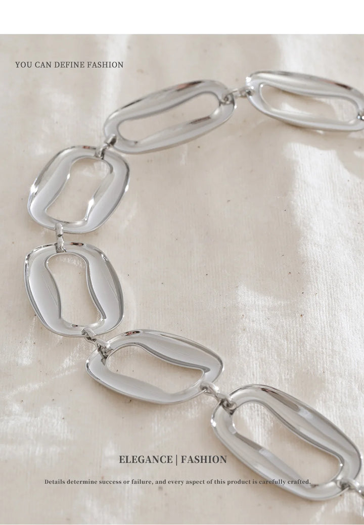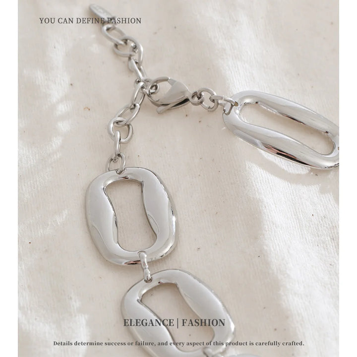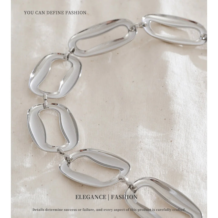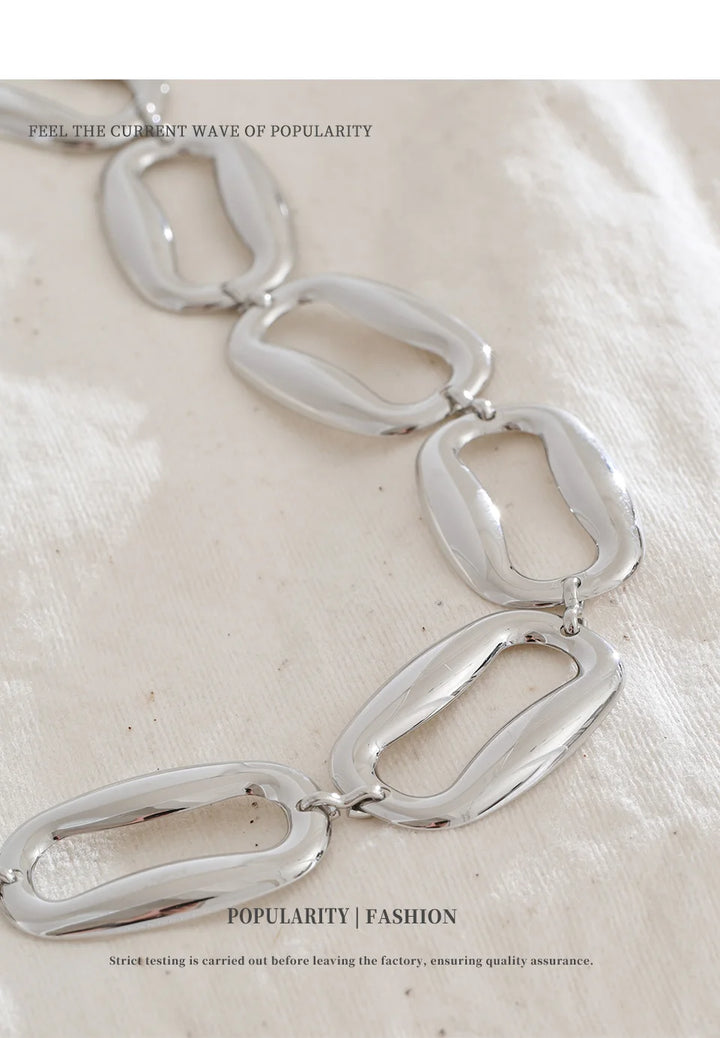 Stainless Steel Irregular Rectangular Necklace Bracelet Set Selected Jewelry Personality Fashionable Design Gift