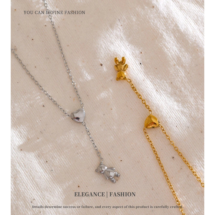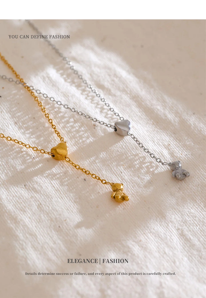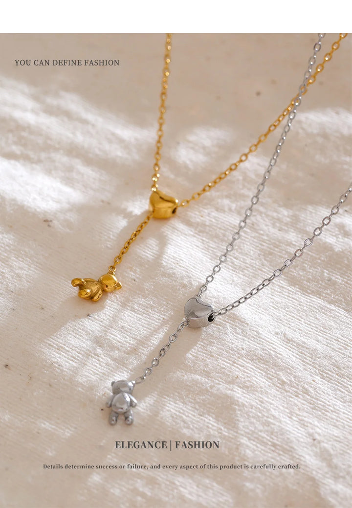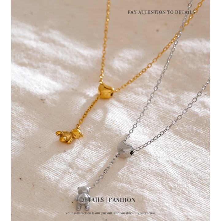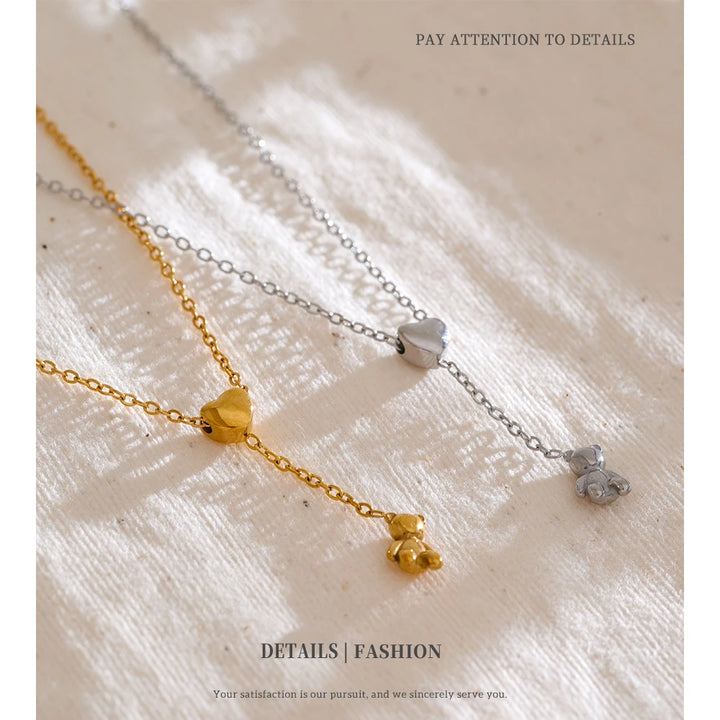 Stainless Steel Necklace Bear Pendant Heart-shaped Adjustable Fashionable Personalized Jewelry Gift New Wholesale