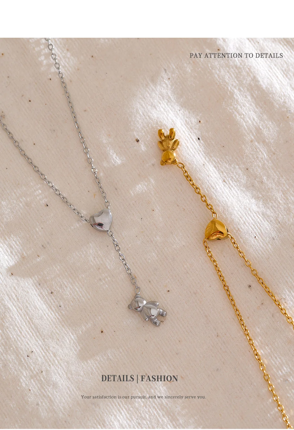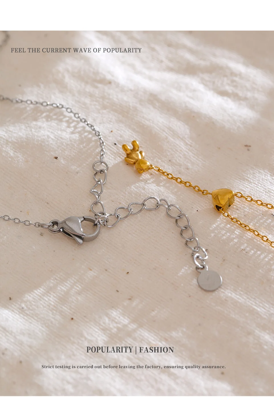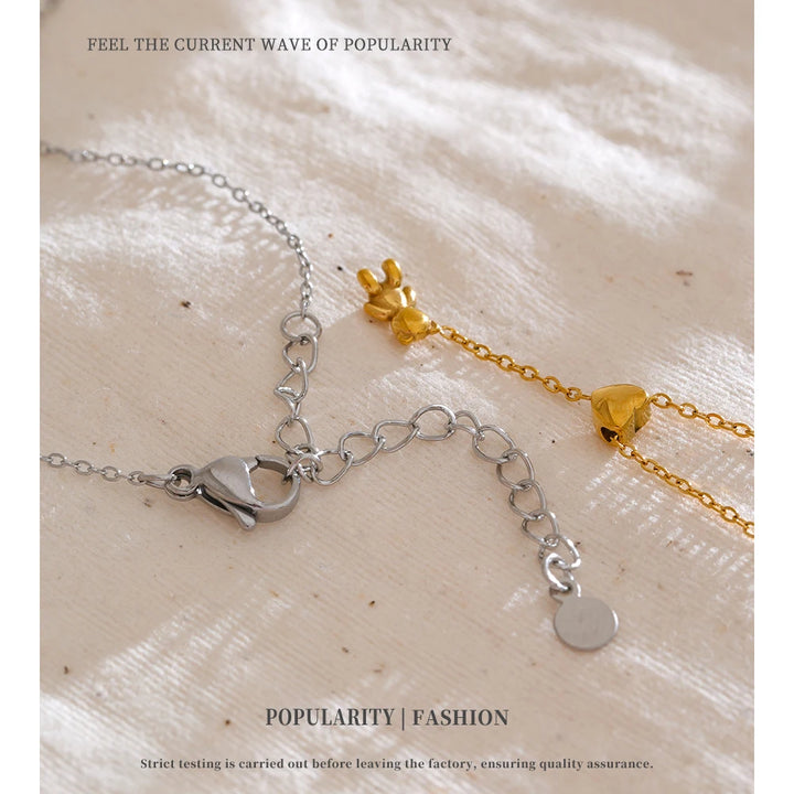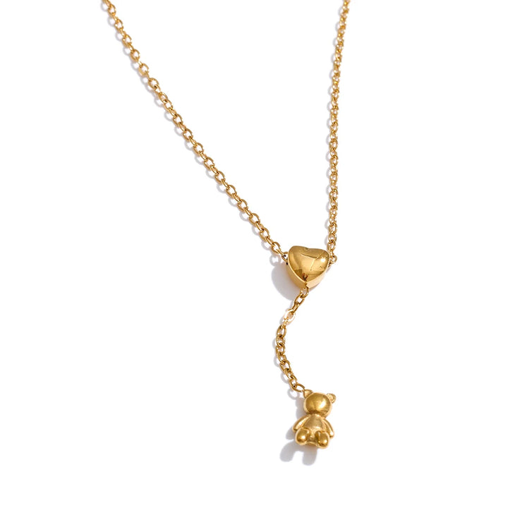 Stainless Steel Necklace Bear Pendant Heart-shaped Adjustable Fashionable Personalized Jewelry Gift New Wholesale