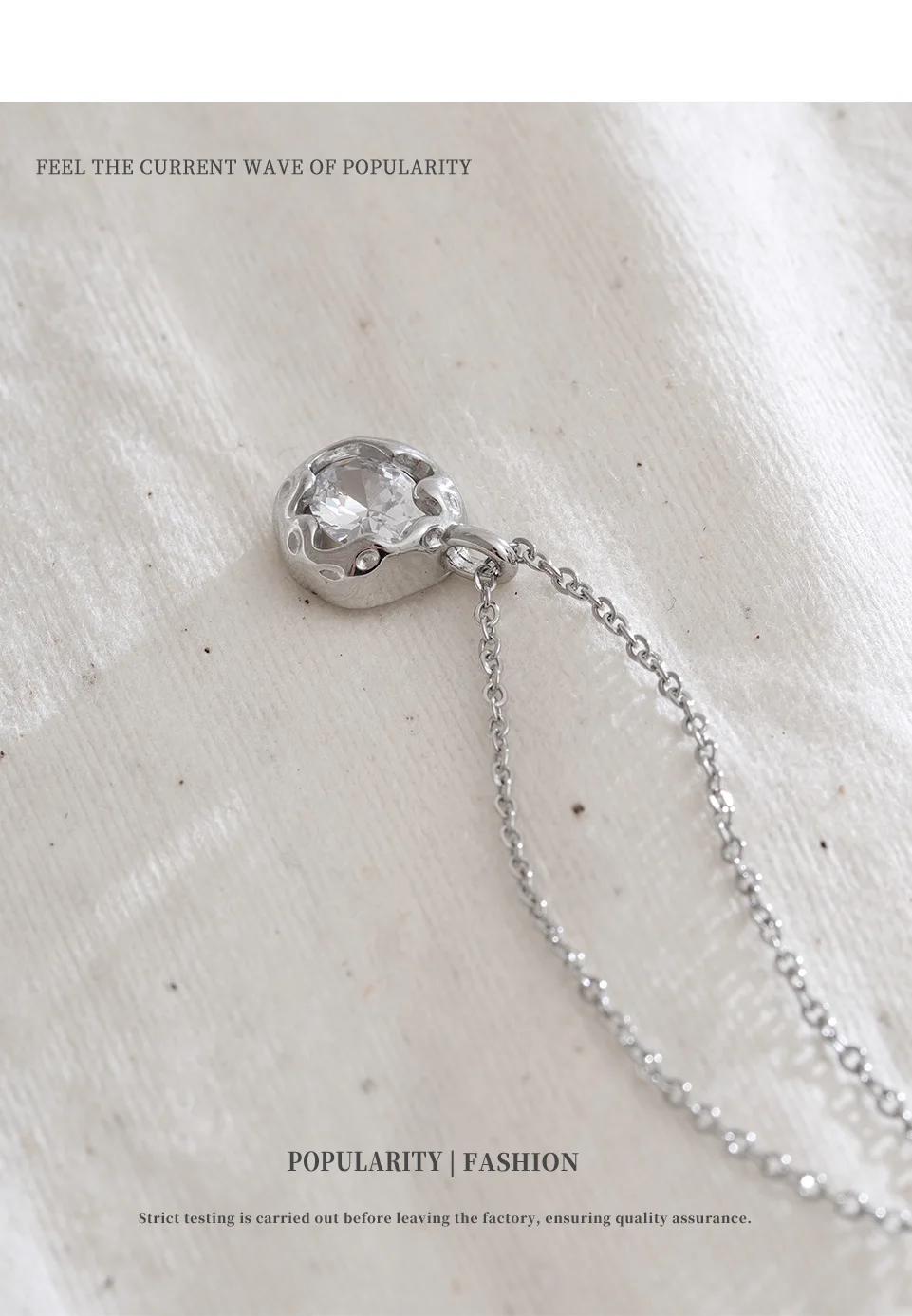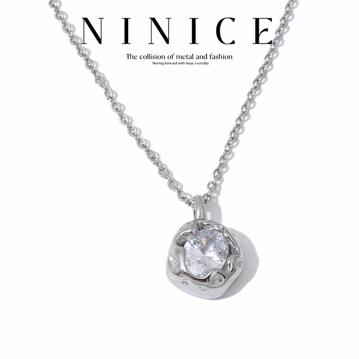 NiNice Stainless Steel Necklace Cubic Zirconia Personalized Jewelry Temperament Fashionable Design Exquisite Sparkling Accessori