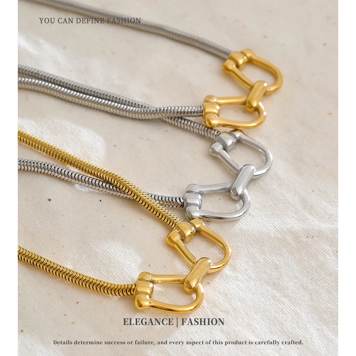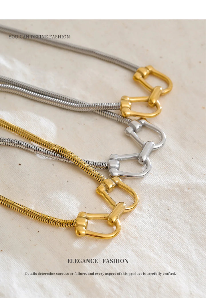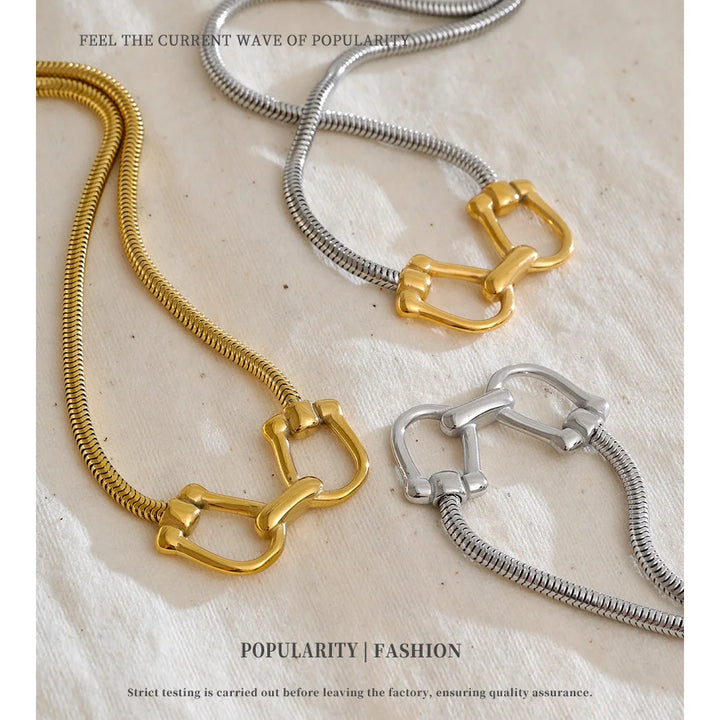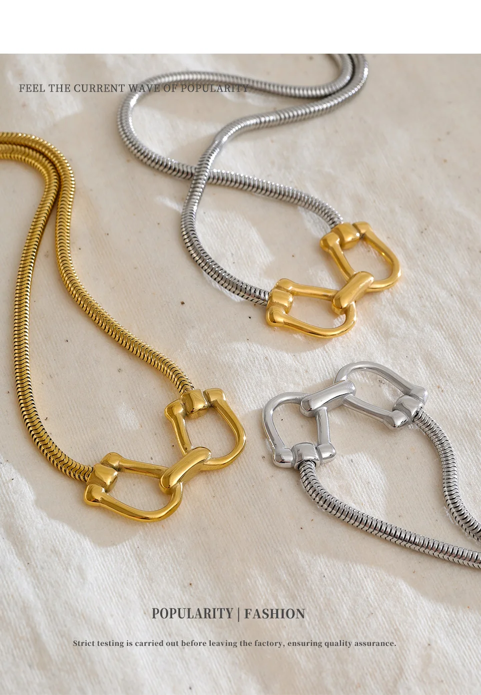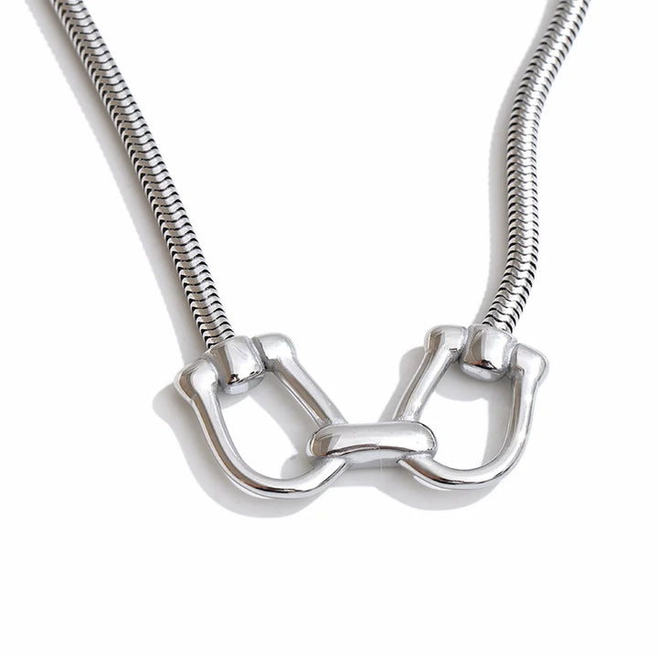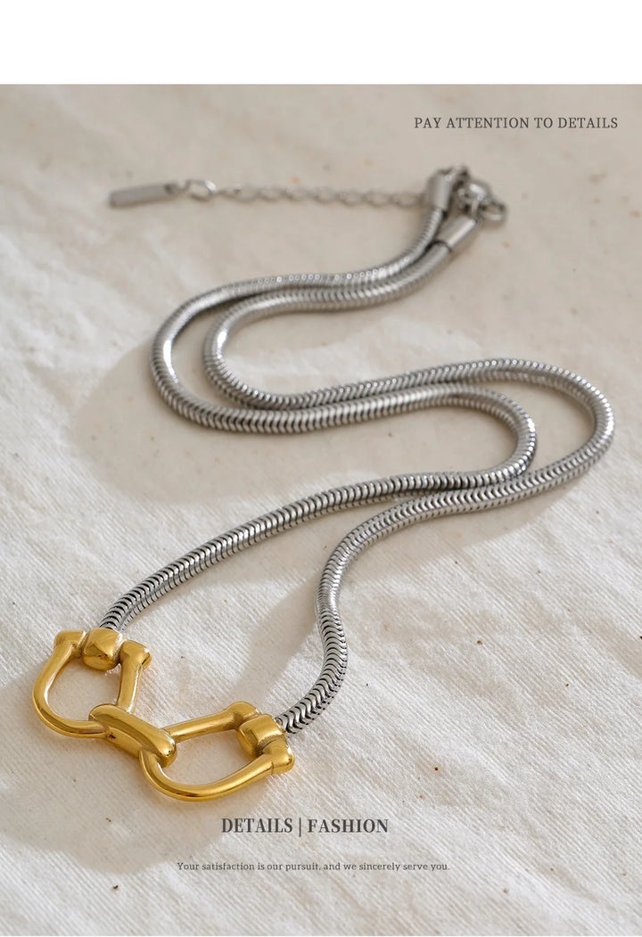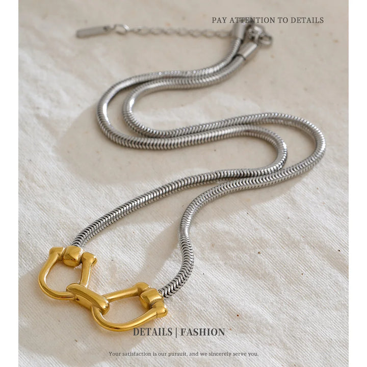 Stainless Steel Necklace Double Lock Pendant Knot Heavy Industry Fashion Design Personalized Jewelry New Style