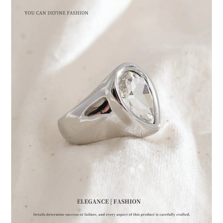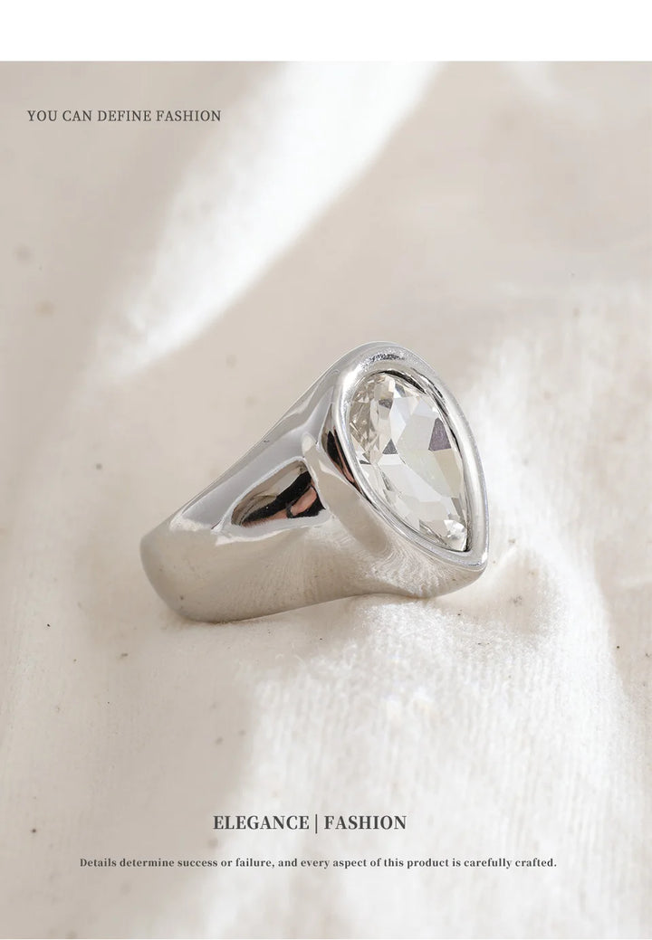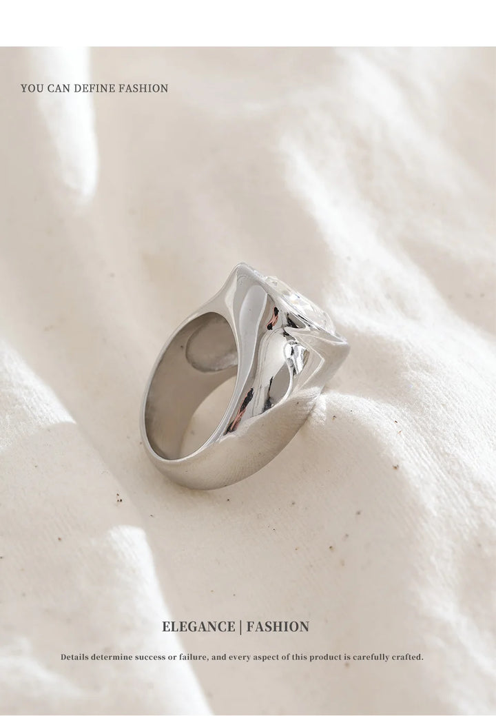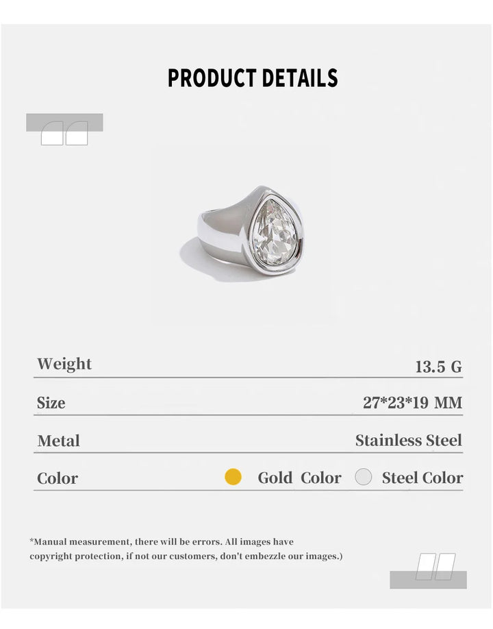 Stainless Steel Ring Inlaid Zircon Heart-shaped Fashion Personalized Selection of Jewelry Light Luxury High-Quality Gift