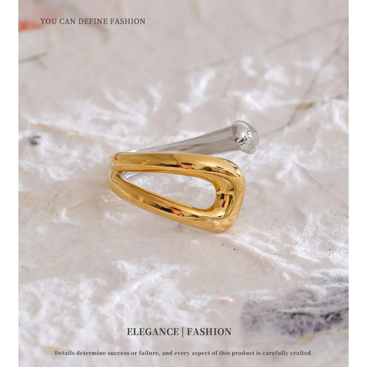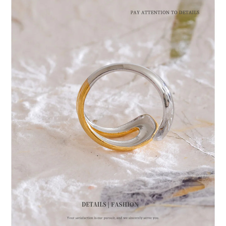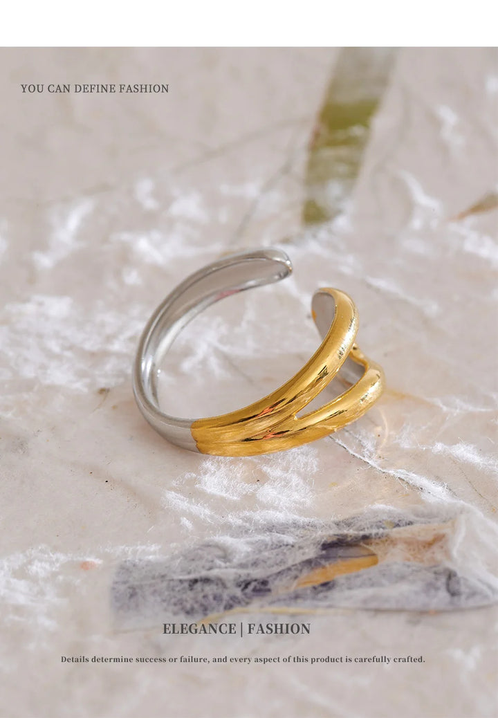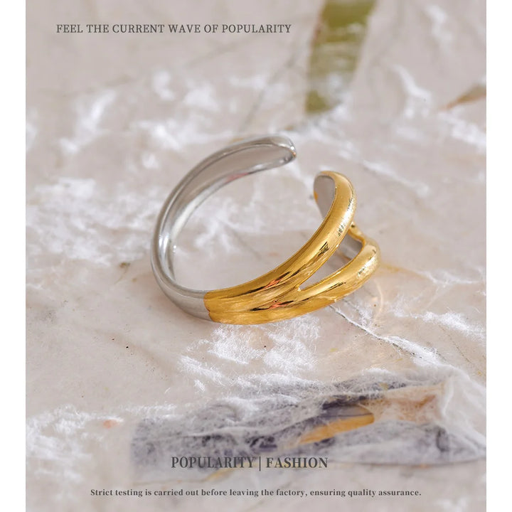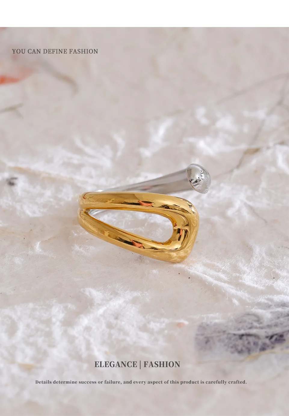 Stainless Steel Rings Adjustable Geometric Hollow Out Dual Color Simple Waterproof Personalized Gift