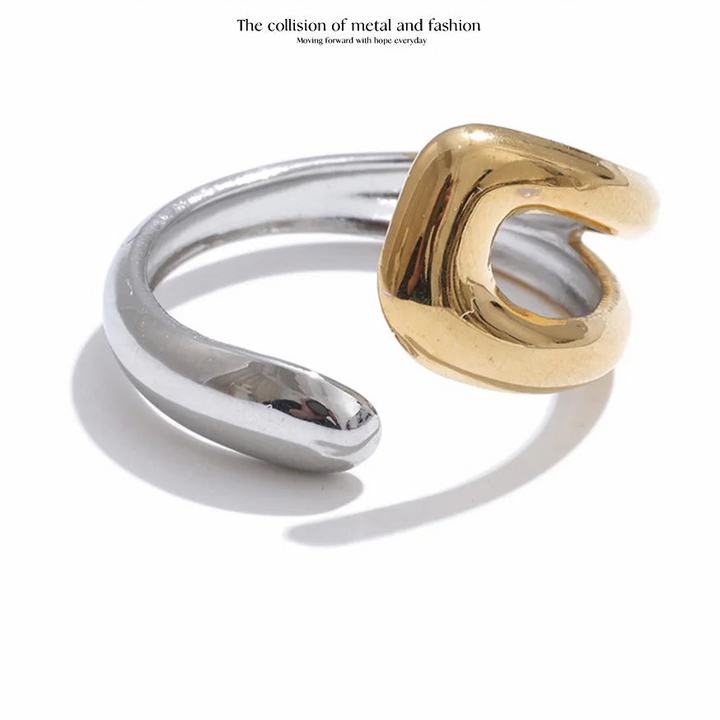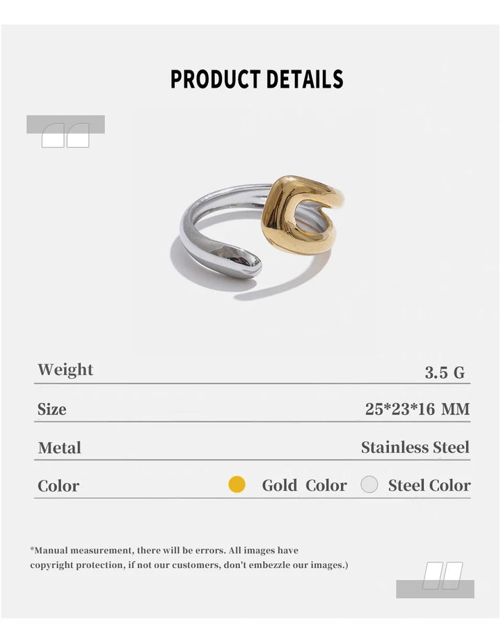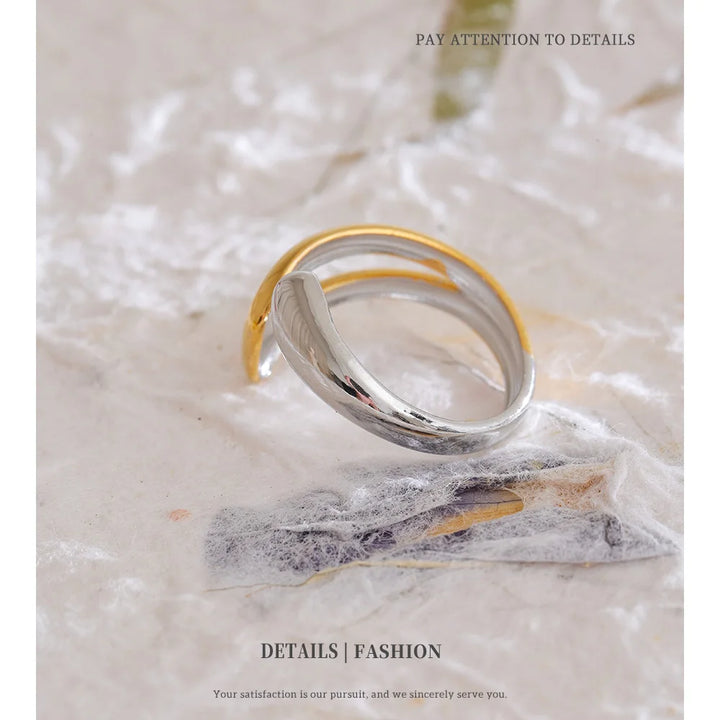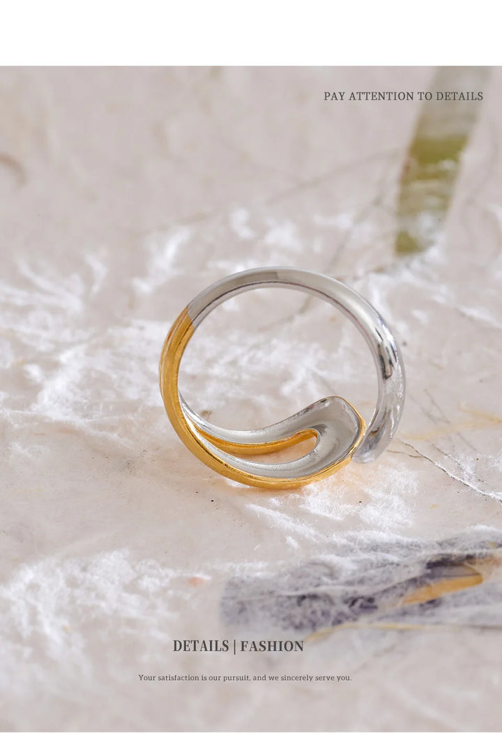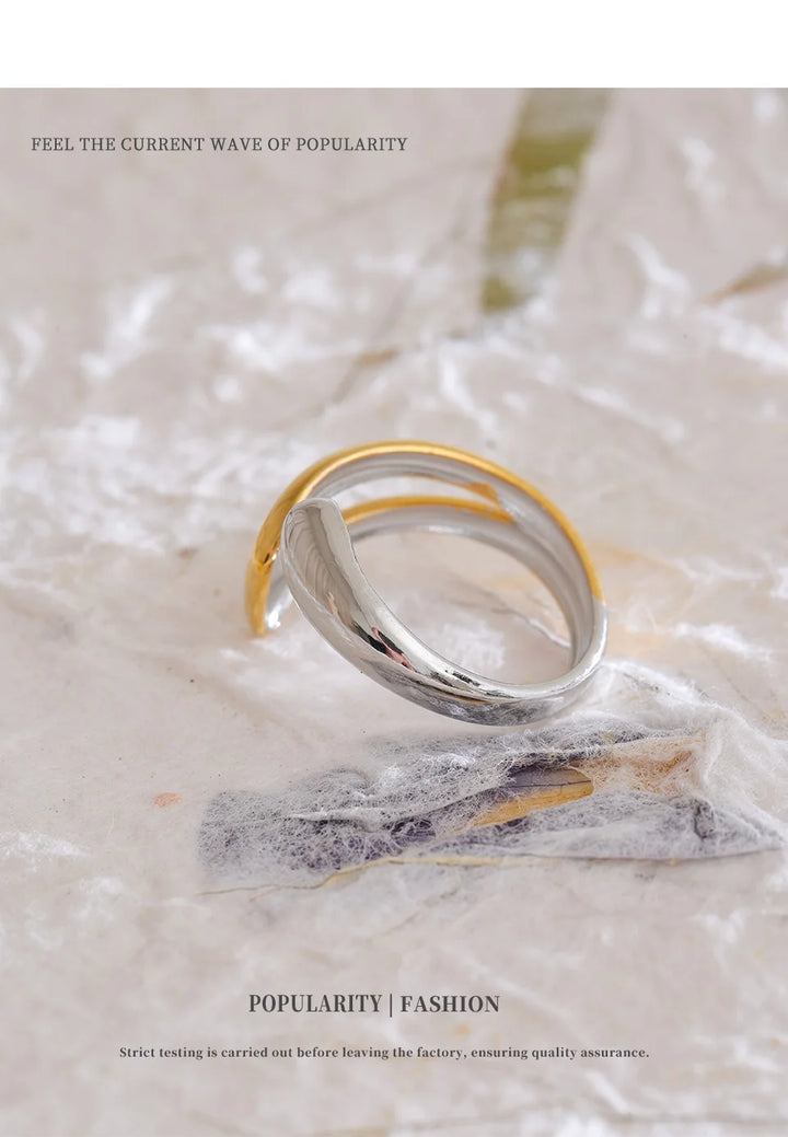 Stainless Steel Rings Adjustable Geometric Hollow Out Dual Color Simple Waterproof Personalized Gift