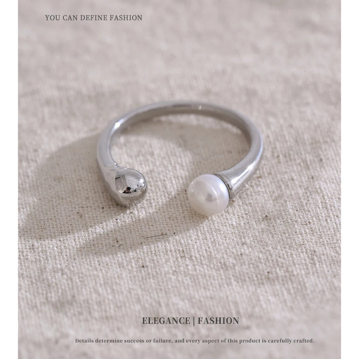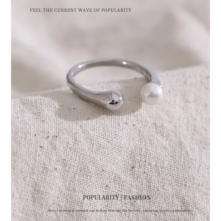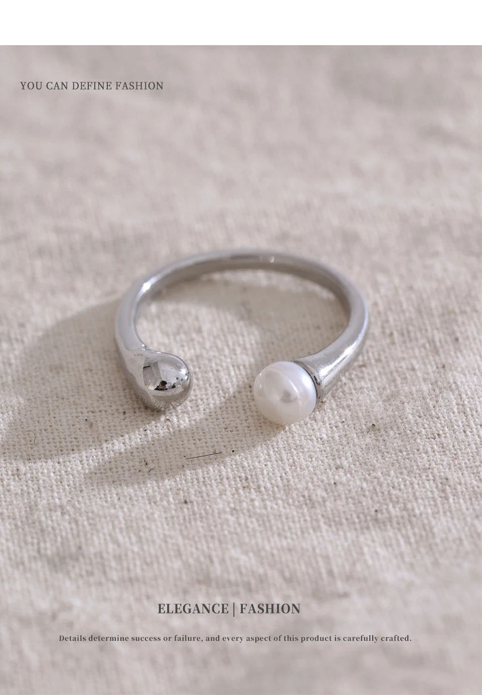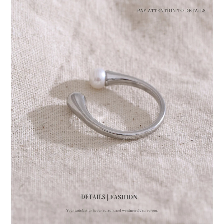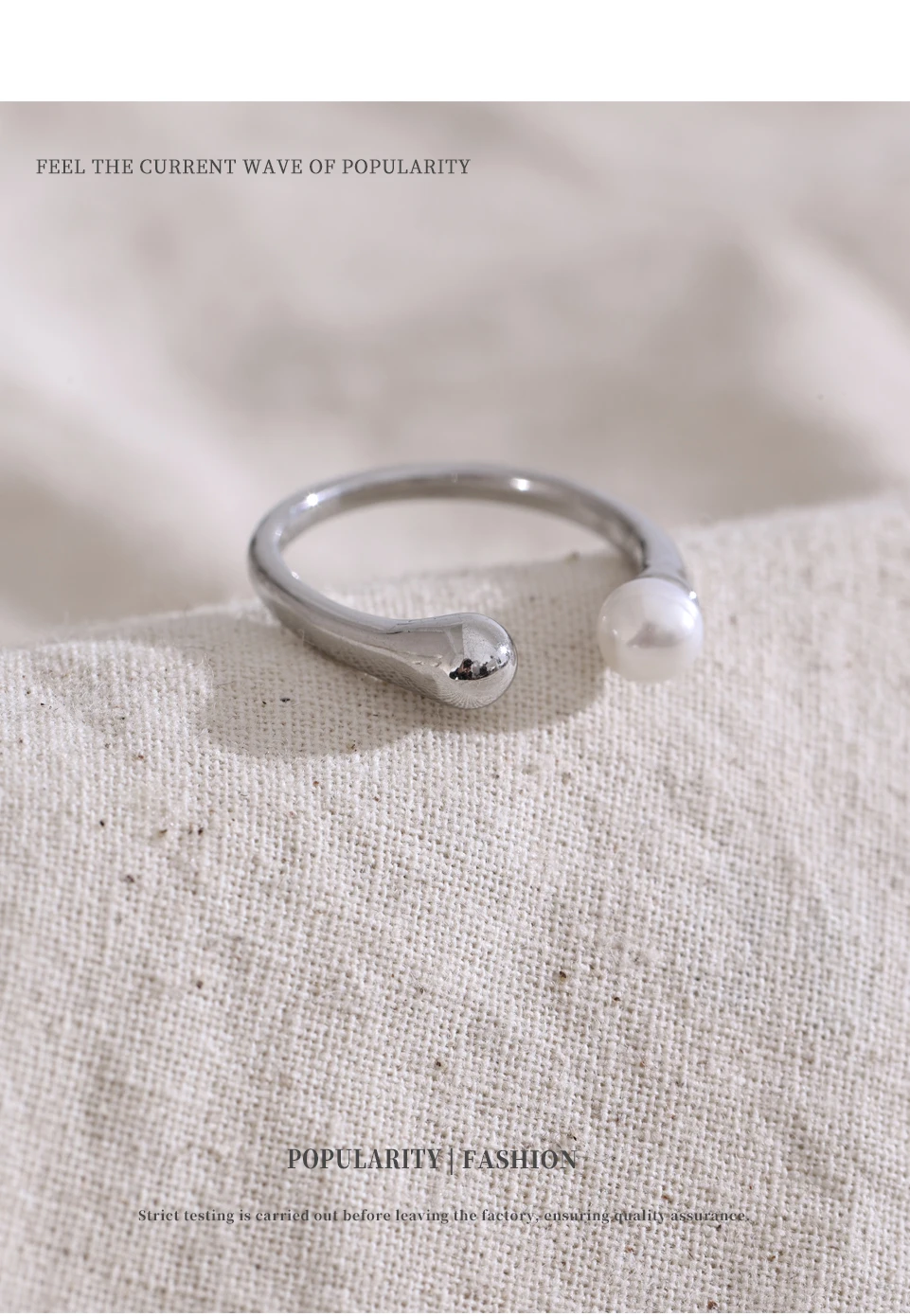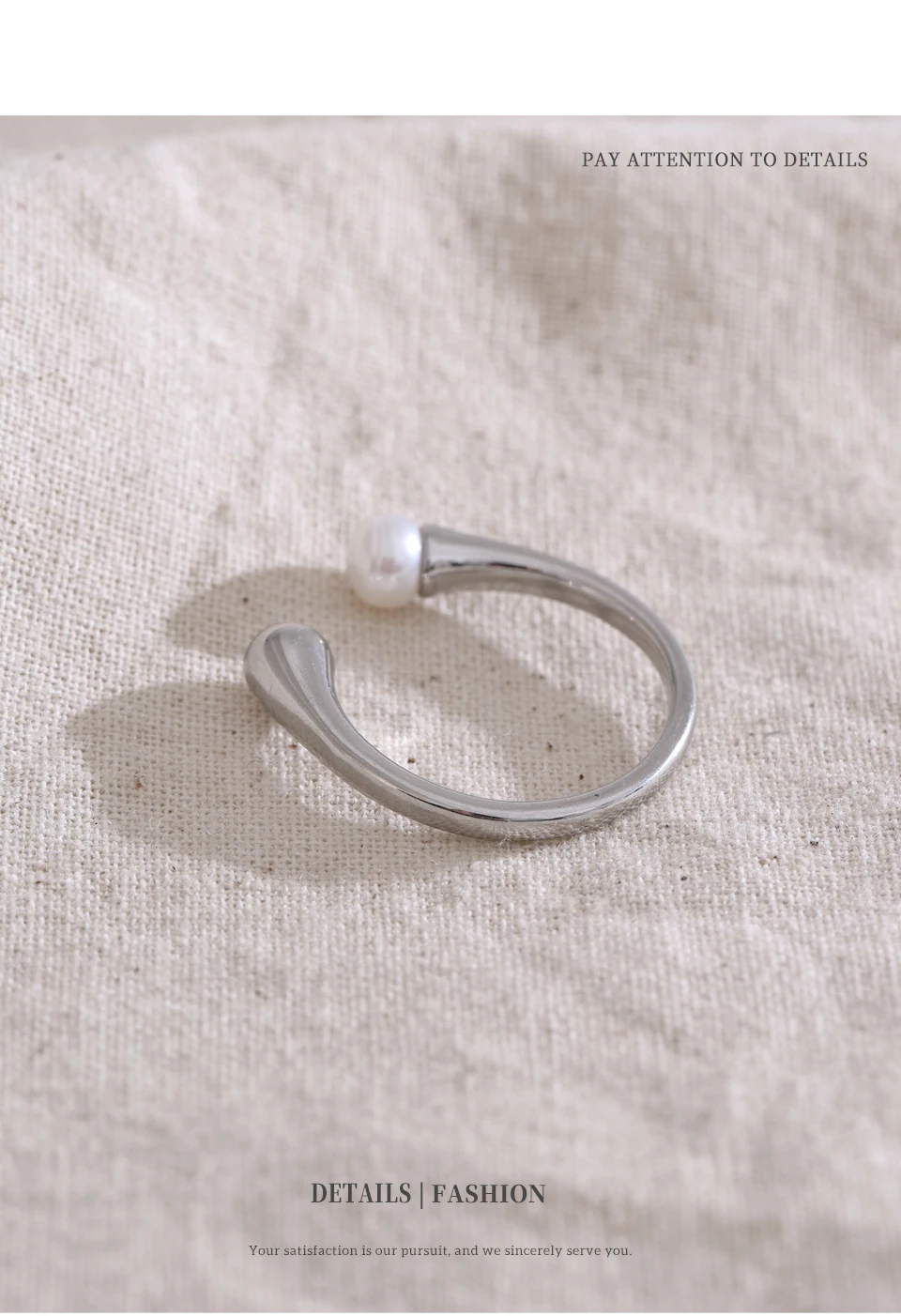 Stainless Steel Rings Original Jewelry Natural Pearl Opening Style Luxury Fashion Trendy Design Party New
