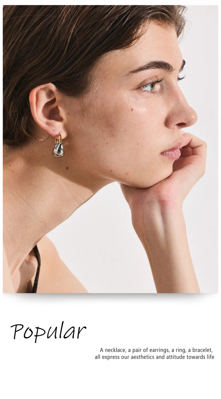 Women's Earrings Stainless Steel Metal Geometric Bag Shaped Waterproof Fashion Design Sense Personalized Gift New
