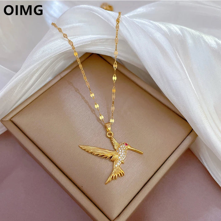 OIMG 316L Stainless Steel Gold Plated Hummingbird Bird Pendant Necklace For Women Fashion Girls Woodpecker Clavicle Chain Sexy