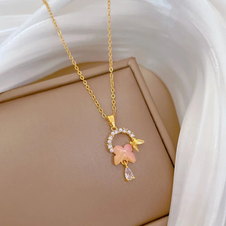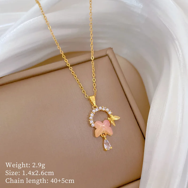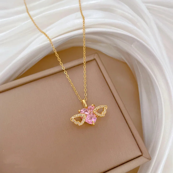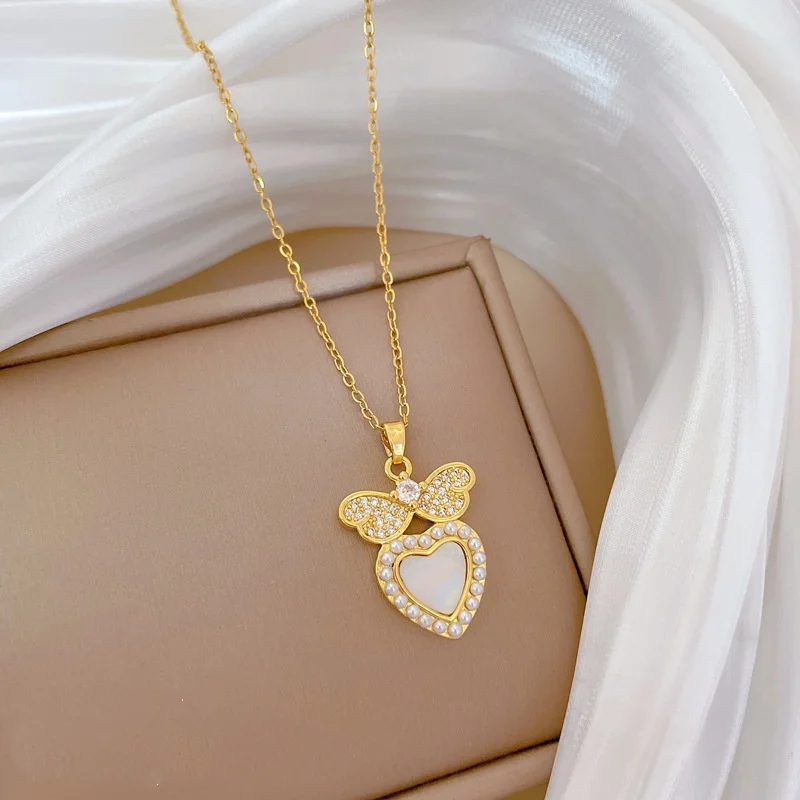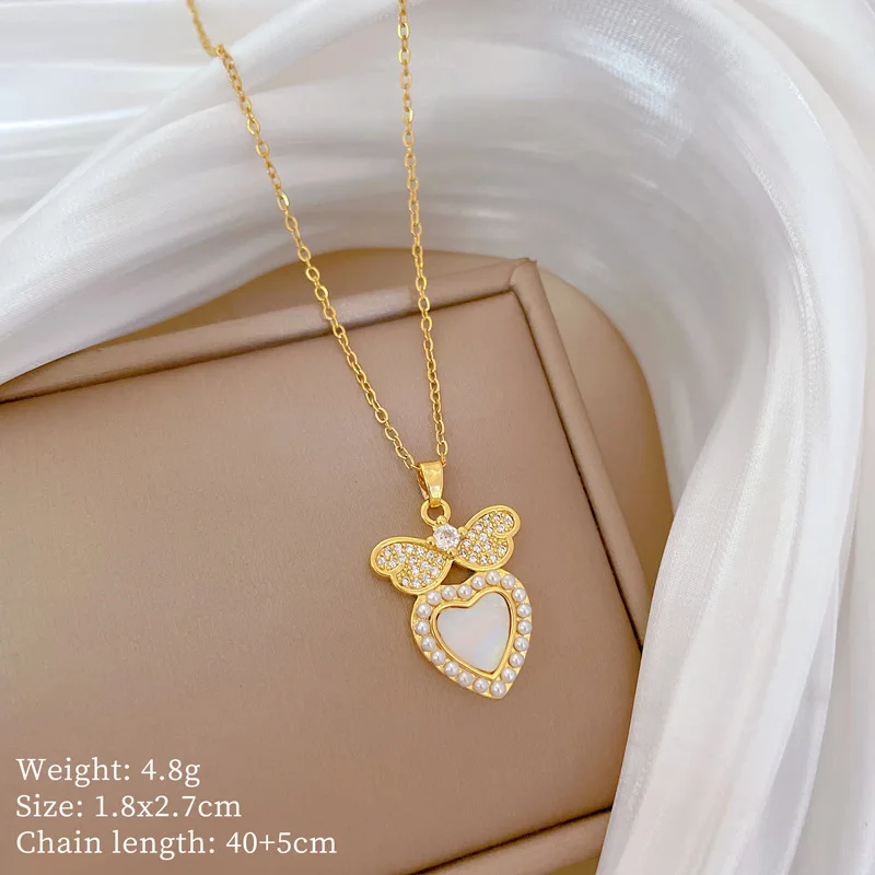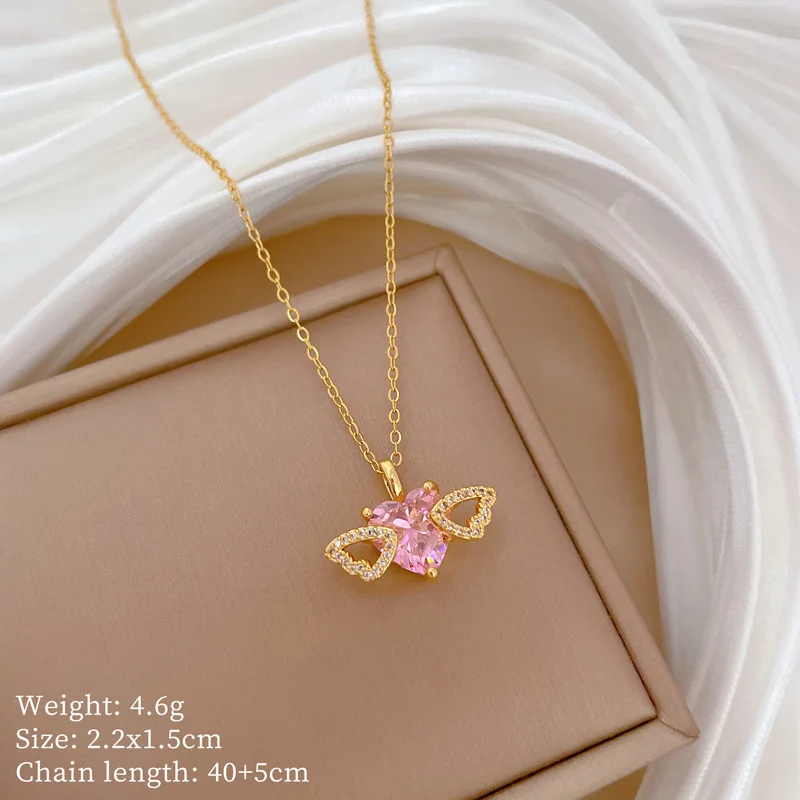 OIMG Multiplestyles Simple Heart Butterfly Wings Pendant Necklaces for Women Girls Flower Charm Choker Stainless Steel Jewelry