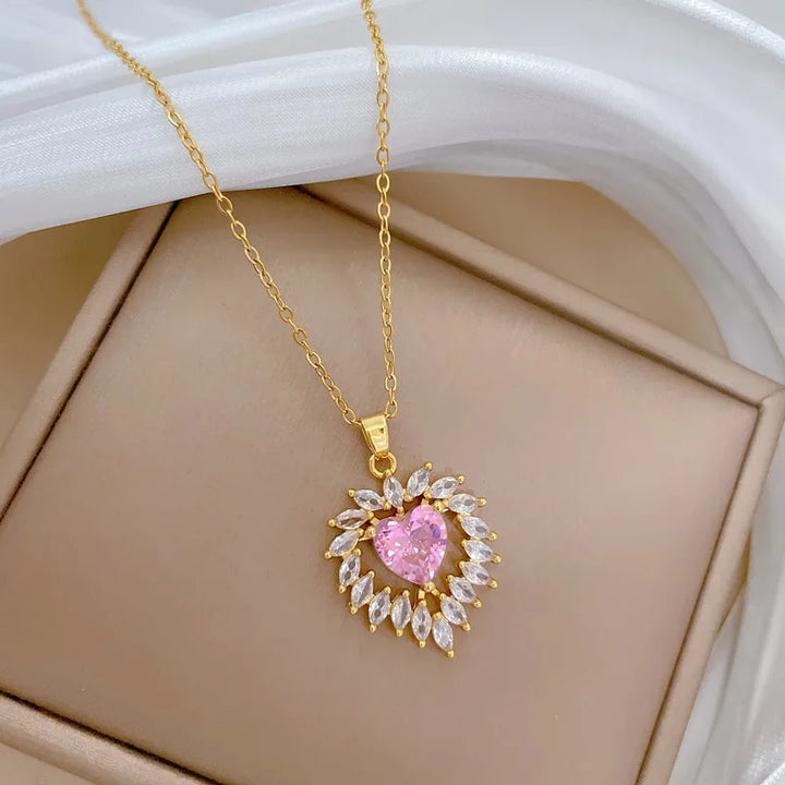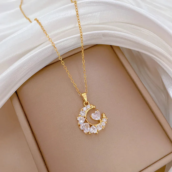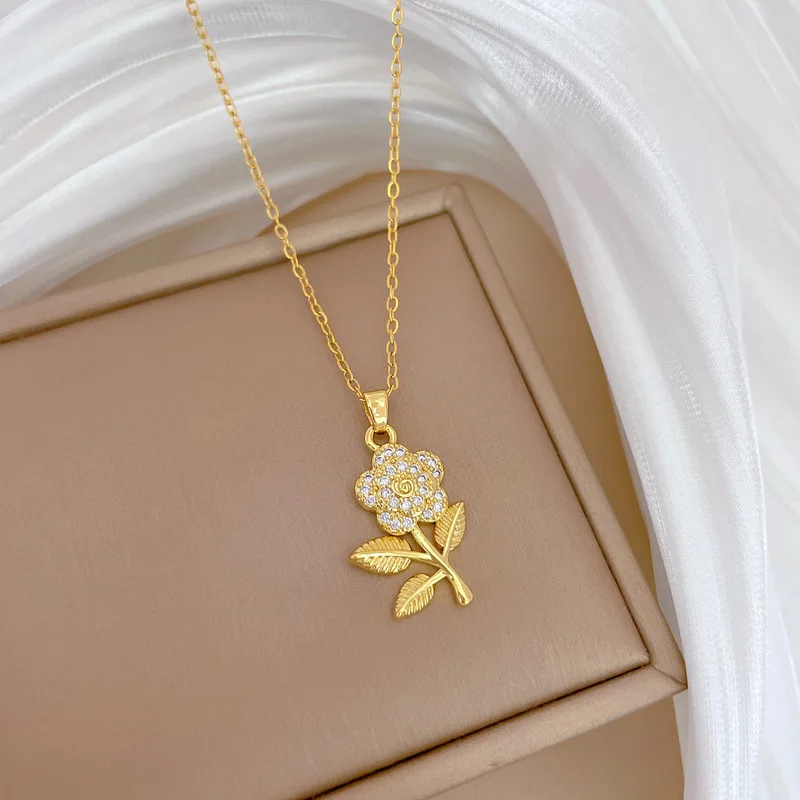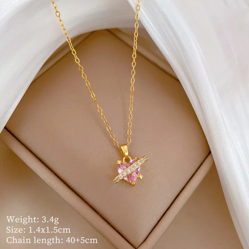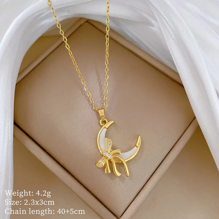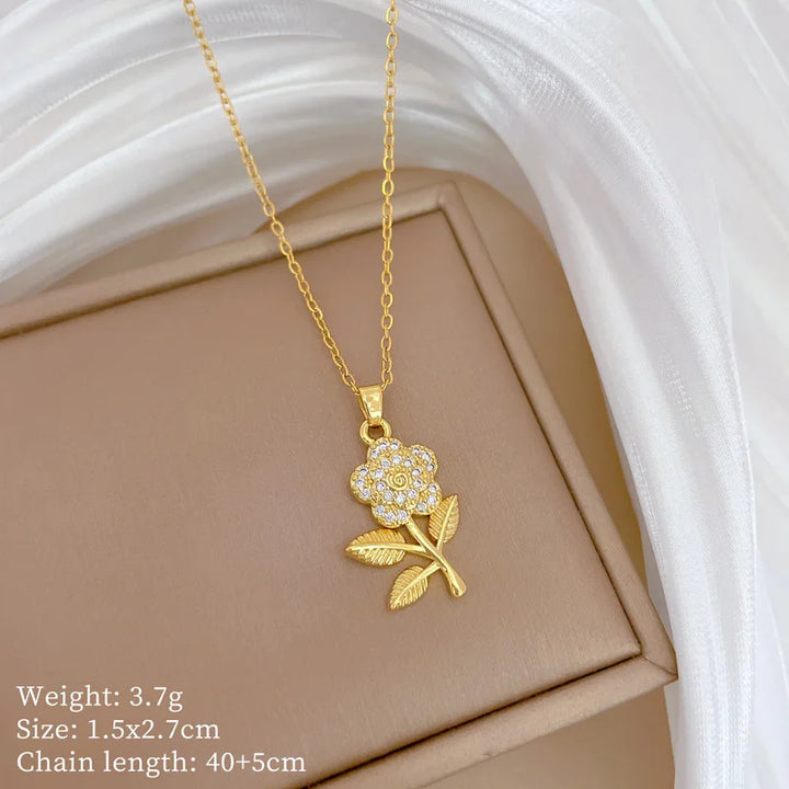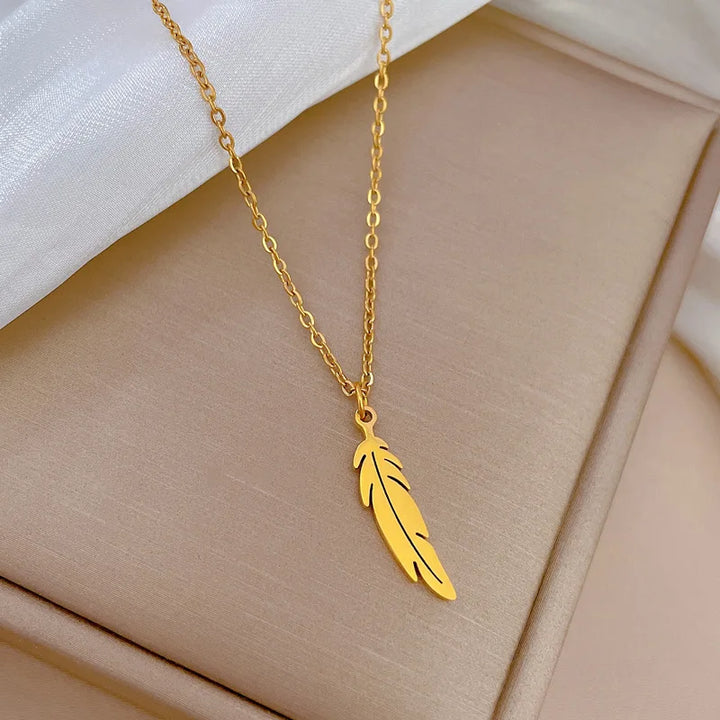 OIMG Multiplestyles Simple Heart Butterfly Wings Pendant Necklaces for Women Girls Flower Charm Choker Stainless Steel Jewelry