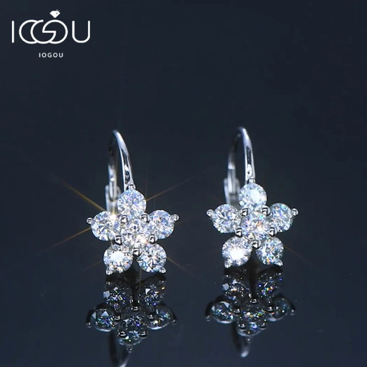 IOGOU Full D Color Moissanite Diamond Earrings for Women Real Silver 925 Flowers Clip Earrings Women's Wedding Accessories Fine Jewelry with Certificate