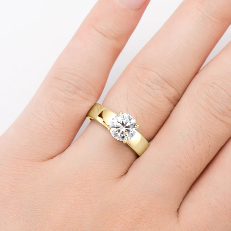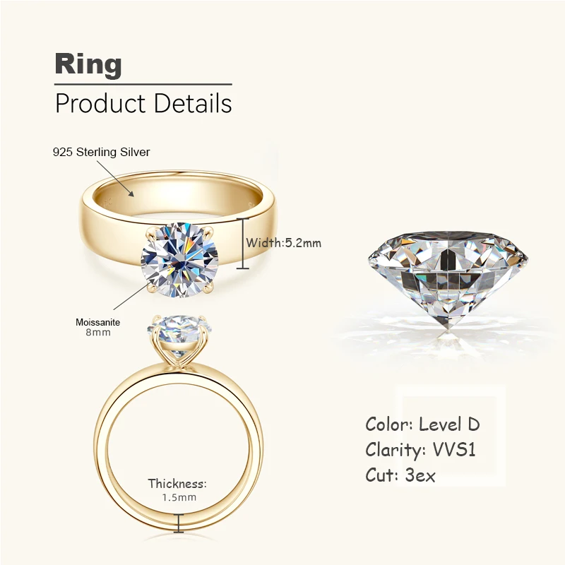 OXTAO 14K Yellow Plated Moissanite 2CT Engagement Wedding Ring for Women Men Solitaire Ring Jewelry Gifts 925 Sterling Sliver