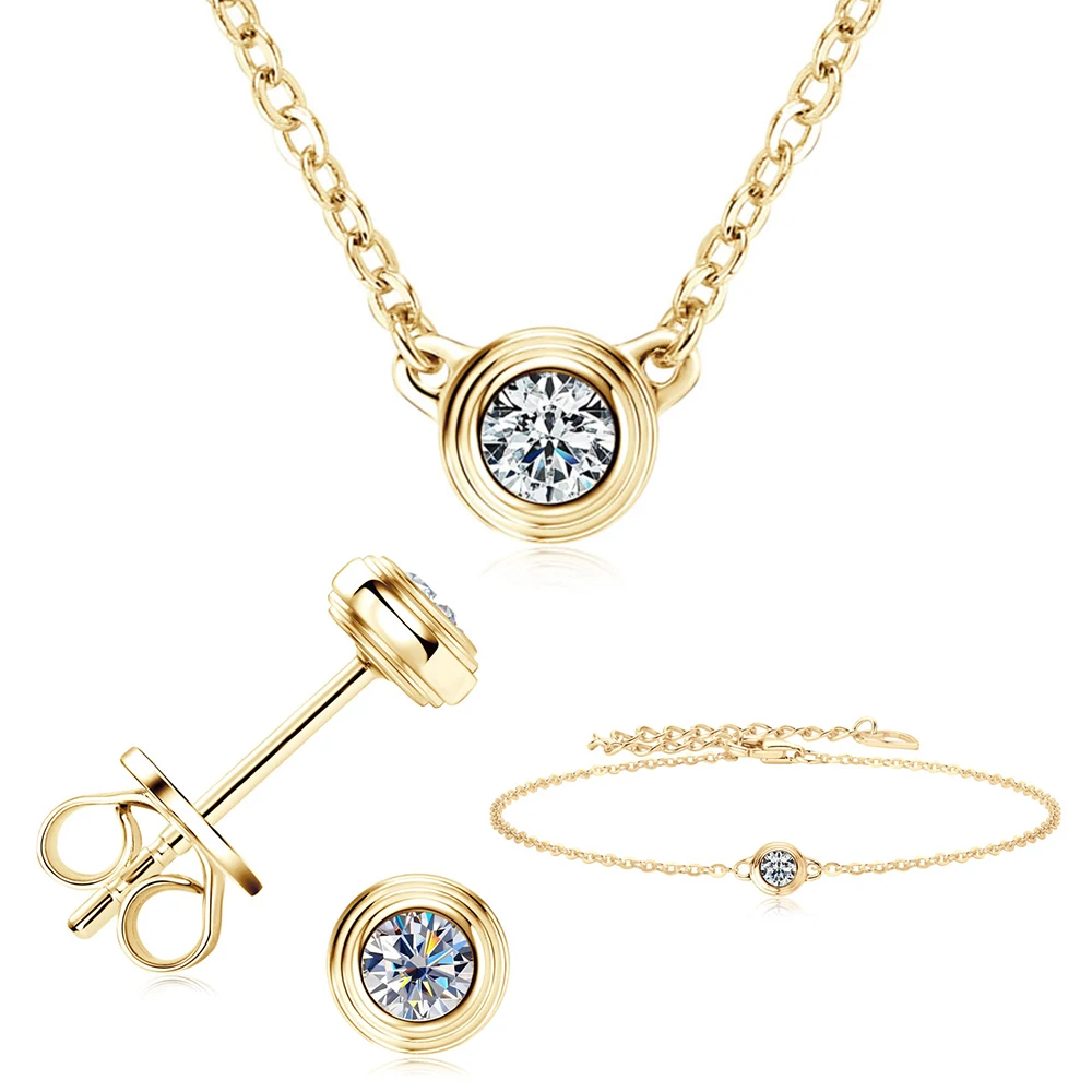 Classic Moissanite Fashion Single Stone Bracelet Necklace Earring Three-piece Set 925 Sterling Silver Jewelry Gift Certified