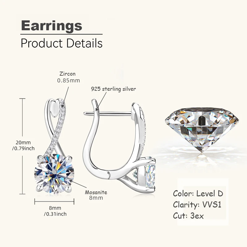 8mm 2.0CT Moissanite Huggie Hoop Infinite Loop Earrings for Women 925 Sterling Silver Unique Fine Jewelry Certificate