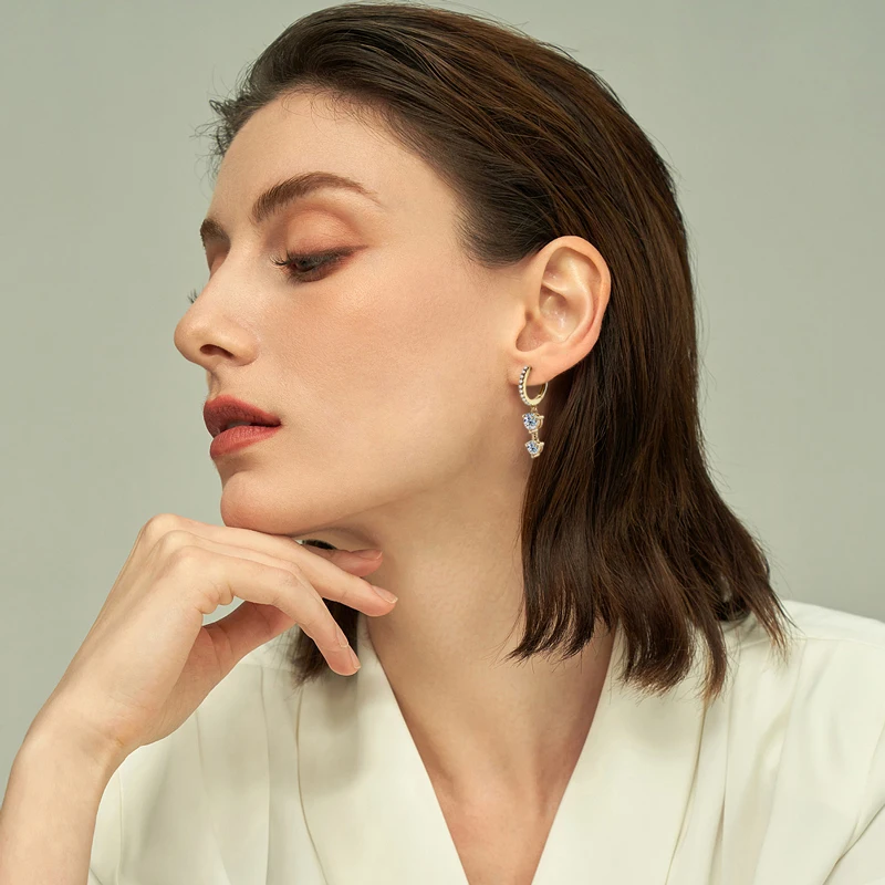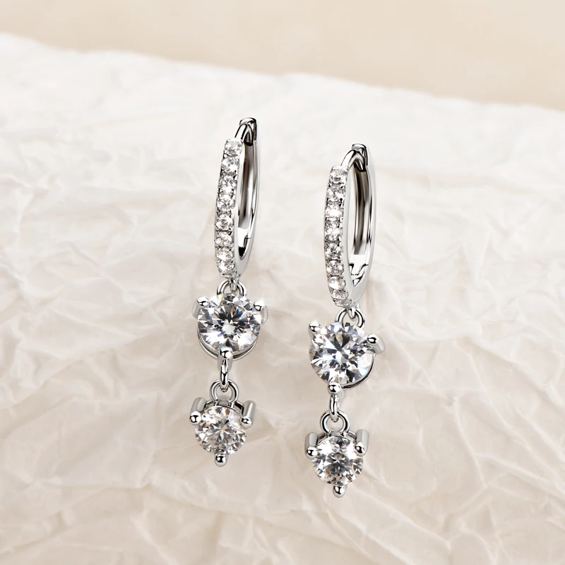 OXTAO 925 Sterling Silver Classic Moissanite Tassel Hoop Earrings Women'S Wedding Jewelry Fashion Jewelry Gift Certificate