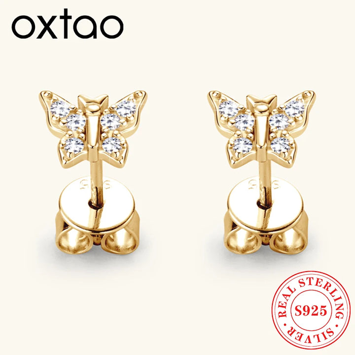 OXTAO 925 Sterling Silver Moissanite Butterfly Earrings Female Jewelry Sparkling Lab Diamond Piercing Earring Gift withCertified